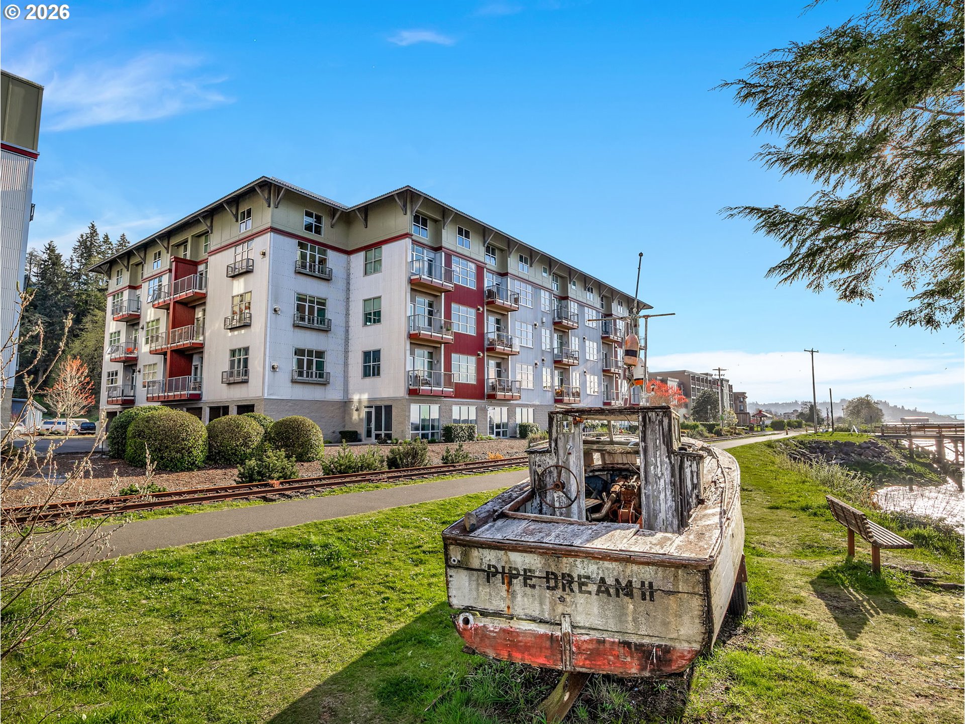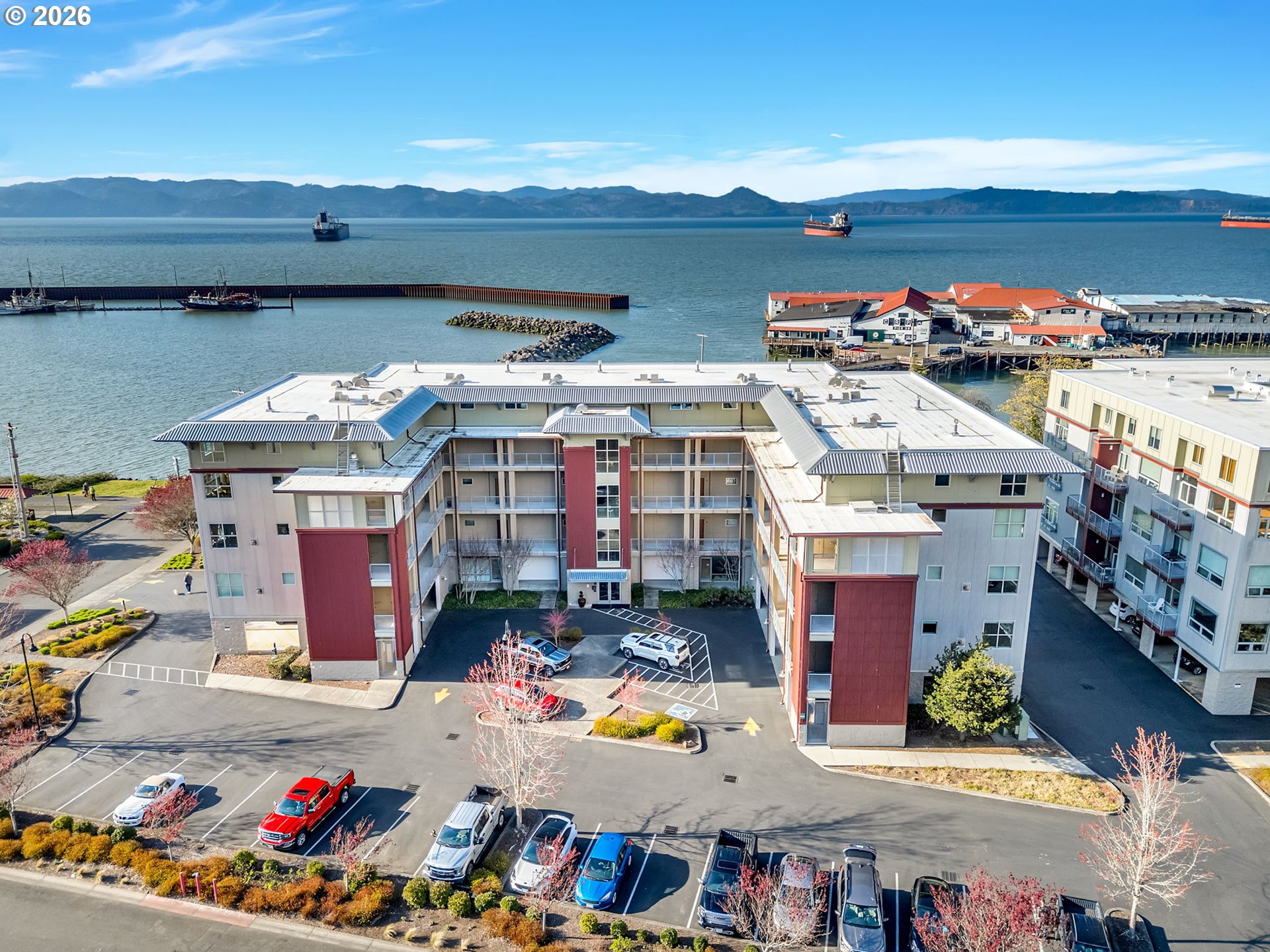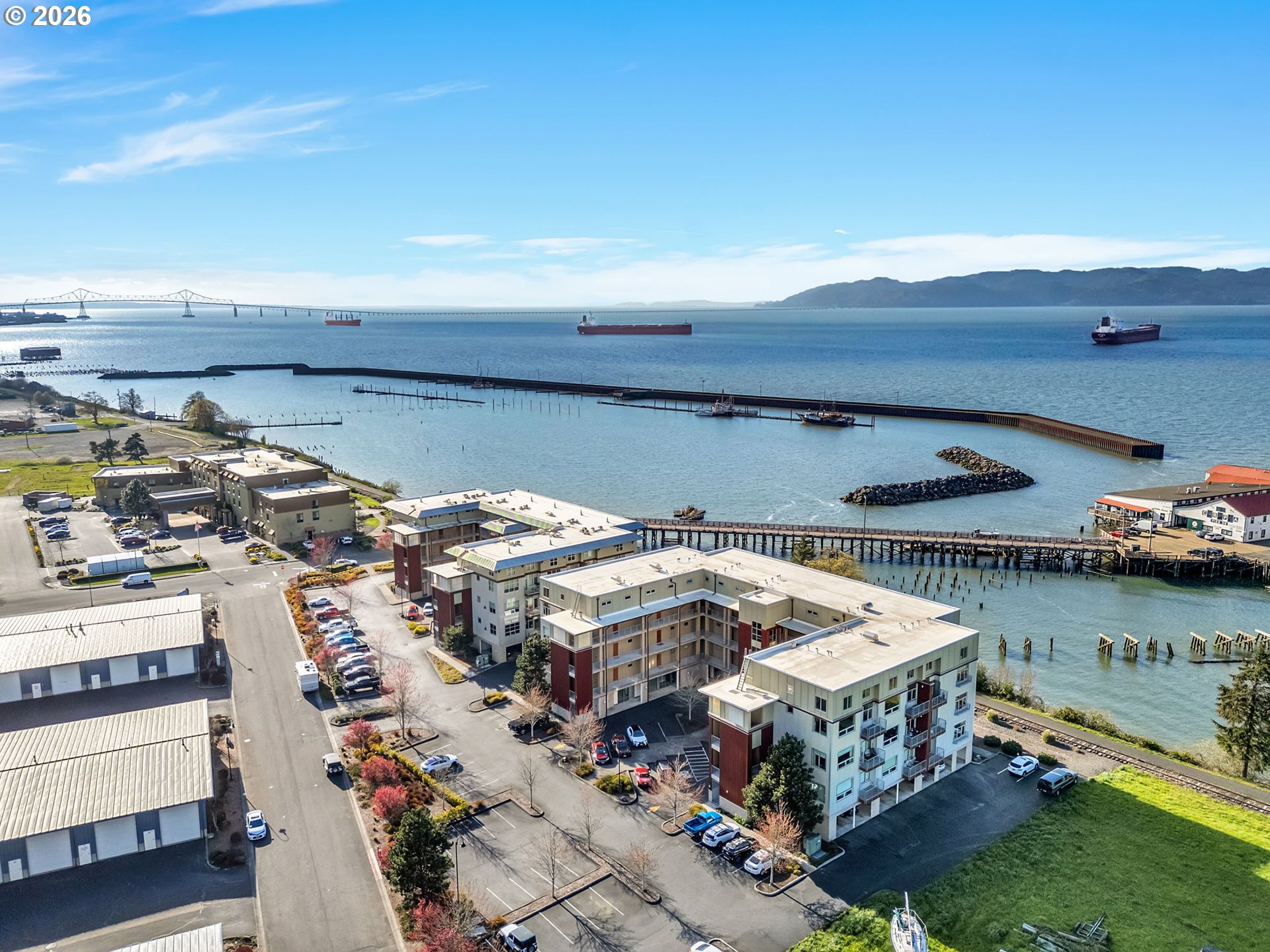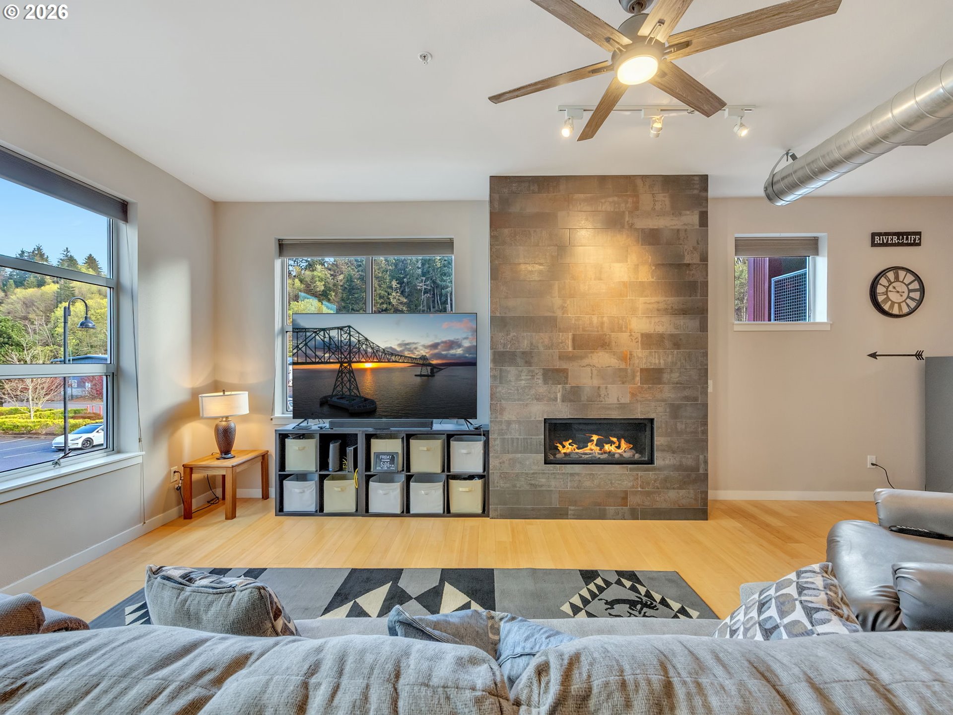 Discover effortless coastal living at The Cannery Loft Condominium's. Flooded with natural light from clerestory windows with southern exposure, this second-floor unit features a chef-inspired kitchen with granite countertops and stainless steel appliances, a custom gas fireplace for cozy evenings, and a brand-new stackable washer and dryer. It comes partially furnished with thoughtful finishes and high ceilings, plus elevator access and off-street parking. Enjoy the view of the Columbia River from your Balcony. Sitting just moments from vibrant downtown Astoria, the Columbia River waterfront, breweries, and outdoor adventures, this low-maintenance gem is perfect as a primary residence, weekend retreat, or income-producing rental.