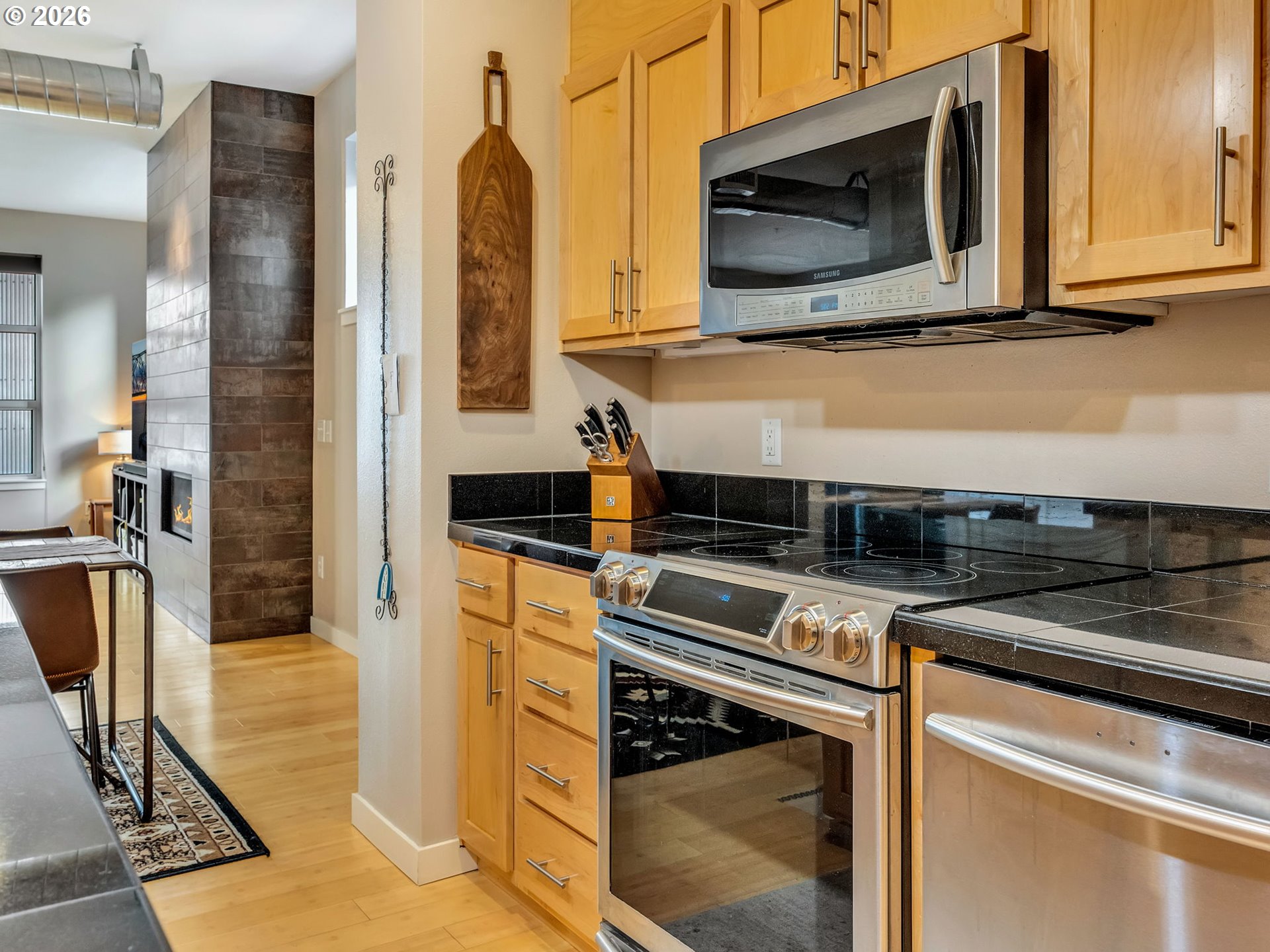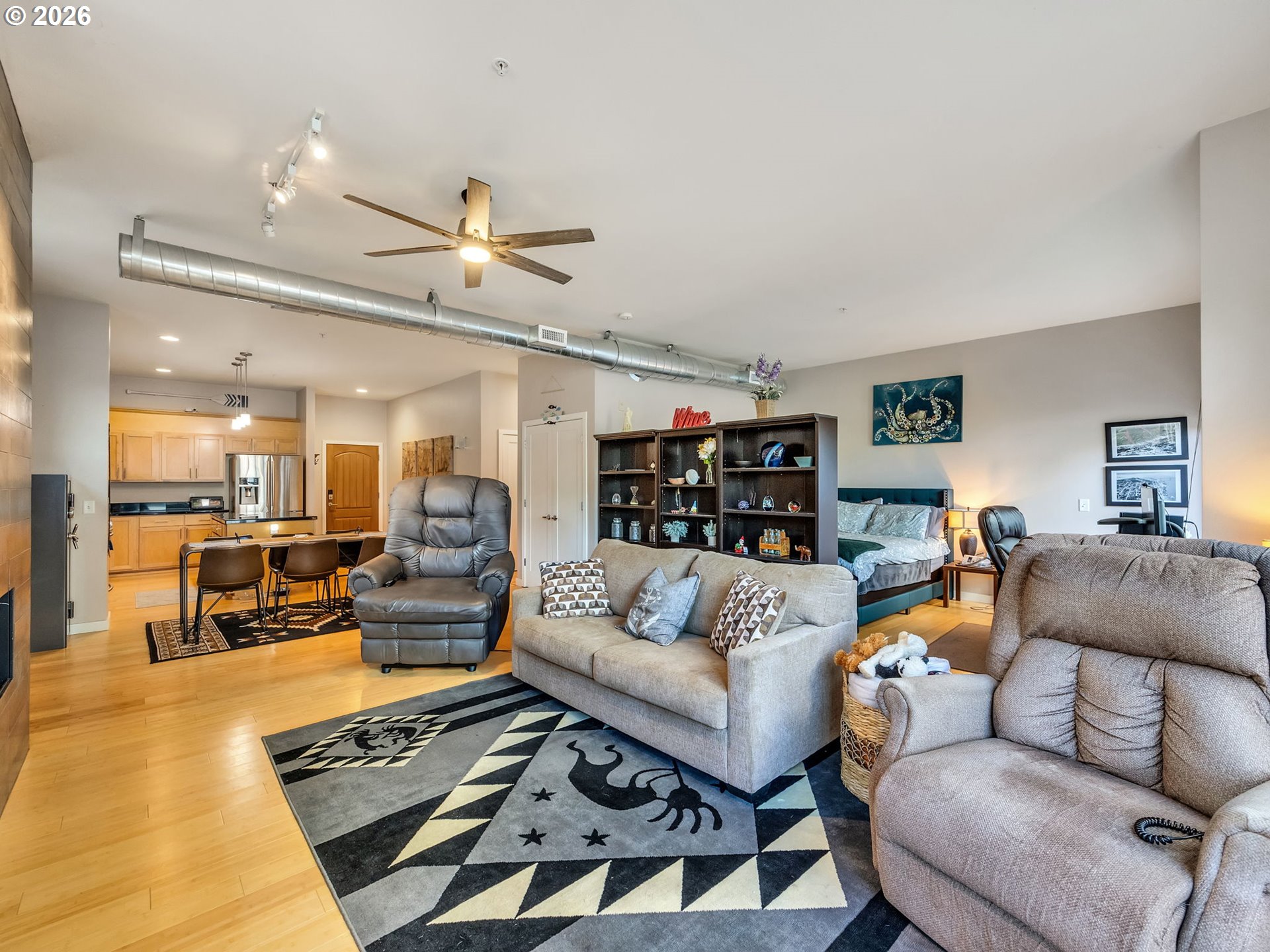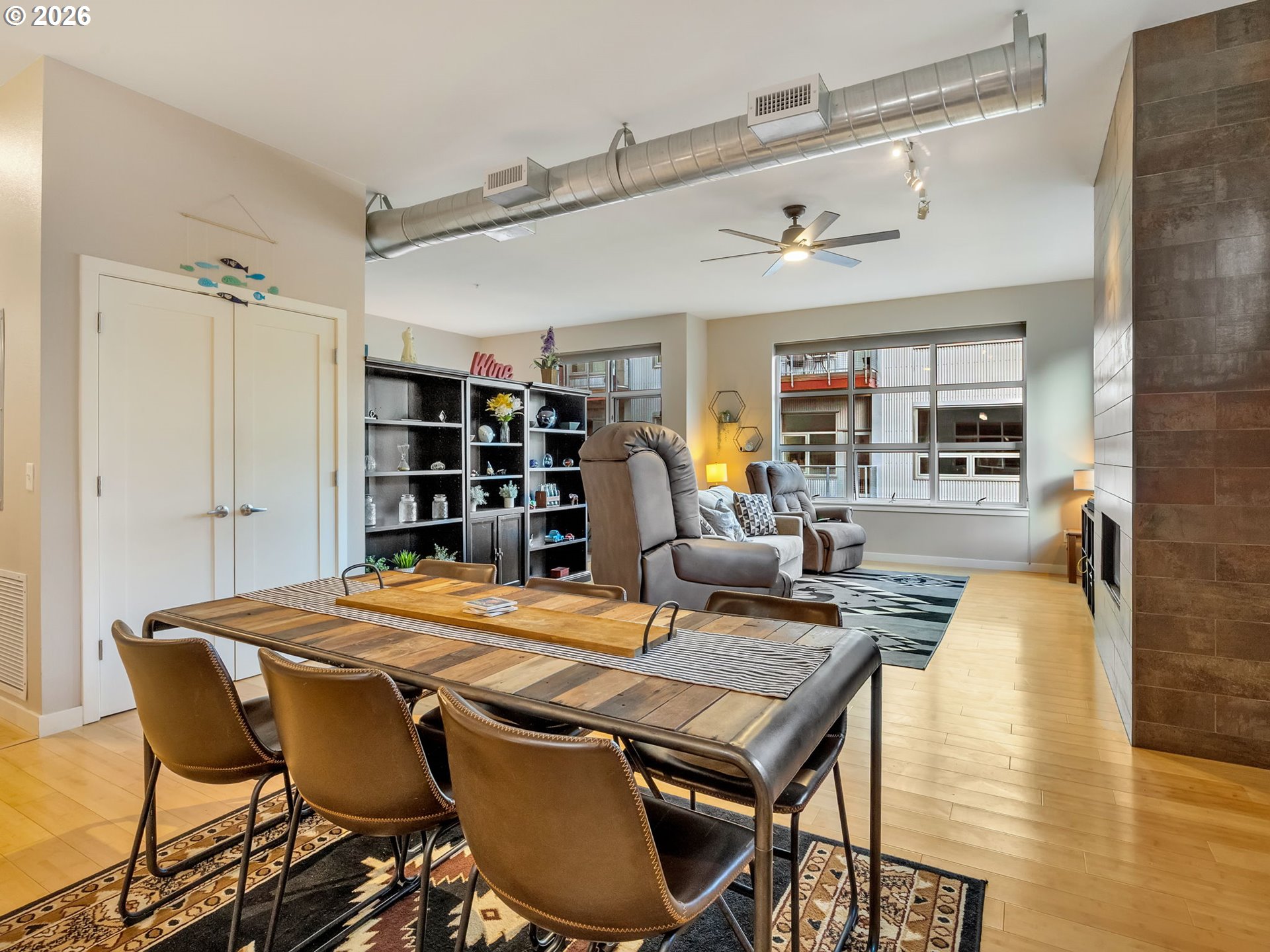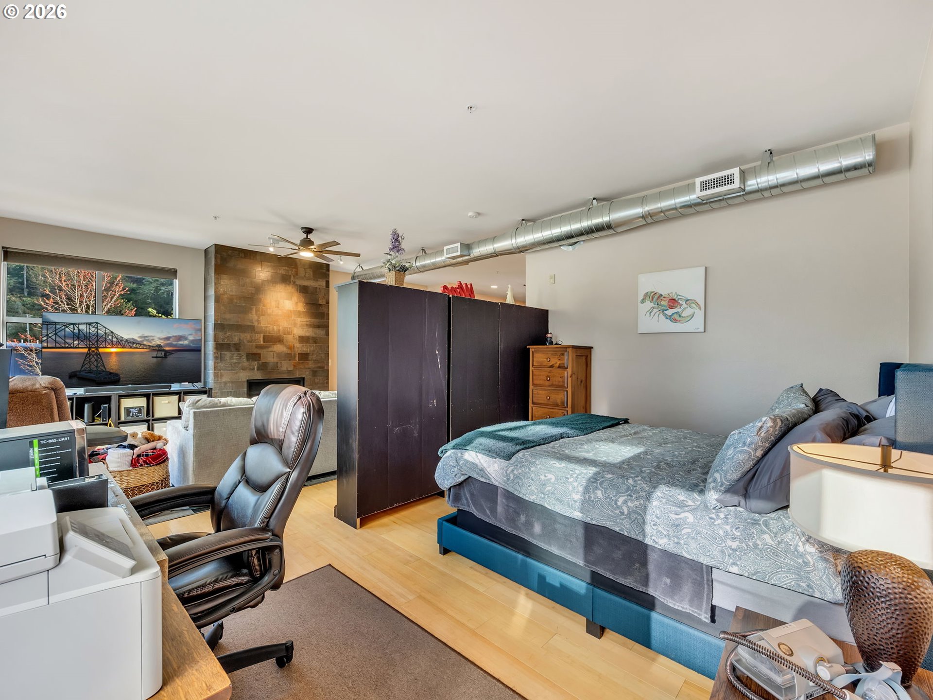 Discover effortless coastal living at The Cannery Loft Condominium's. Flooded with natural light from clerestory windows with southern exposure, this second-floor unit features a chef-inspired kitchen with granite countertops and stainless steel appliances, a custom gas fireplace for cozy evenings, and a brand-new stackable washer and dryer. It comes partially furnished with thoughtful finishes and high ceilings, plus elevator access and off-street parking. Enjoy the view of the Columbia River from your Balcony. Sitting just moments from vibrant downtown Astoria, the Columbia River waterfront, breweries, and outdoor adventures, this low-maintenance gem is perfect as a primary residence, weekend retreat, or income-producing rental.
