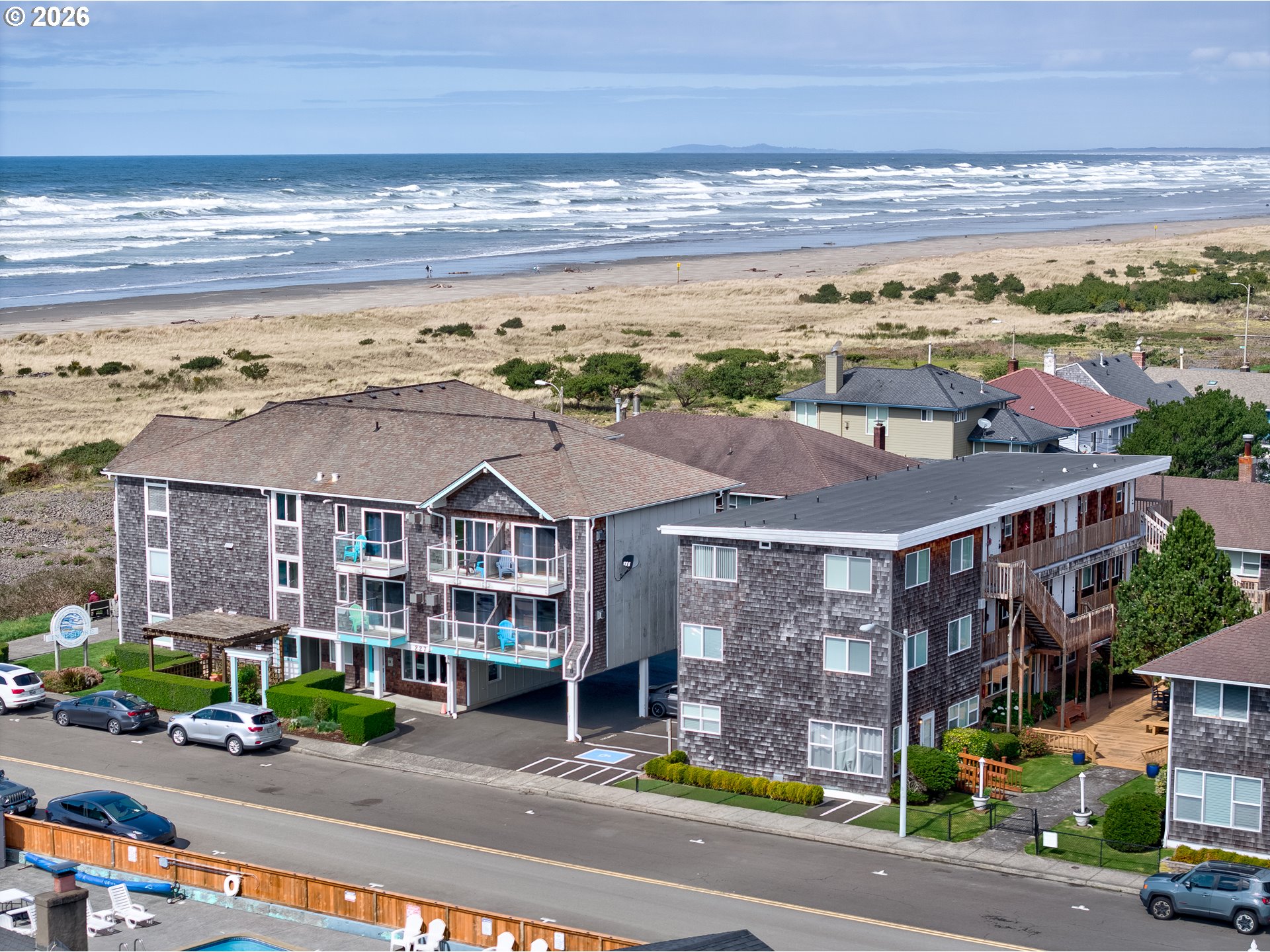 Turn-key and perfectly positioned, this corner unit condo delivers vibrant coastal living from its coveted third-floor perch. Wrapped in windows, the space is flooded with natural light, while ocean views from the kitchen and bedrooms bring the magic of the coast into everyday life. Be ready for immediate enjoyment—whether as a full-time escape or vacation retreat. Convenient laundry is on-site and the refreshingly reasonable HOA dues include all utilities and internet for effortless ownership. Take a dip in the pool and stroll to the beach and promenade. Just steps to the golf course, dining, and local hotspots—this is coastal living, adventure-filled and entertaining. 10 minute drive to Cannon Beach - don't wait! A low-maintenance and laid-back lifestyle is waiting for you.
