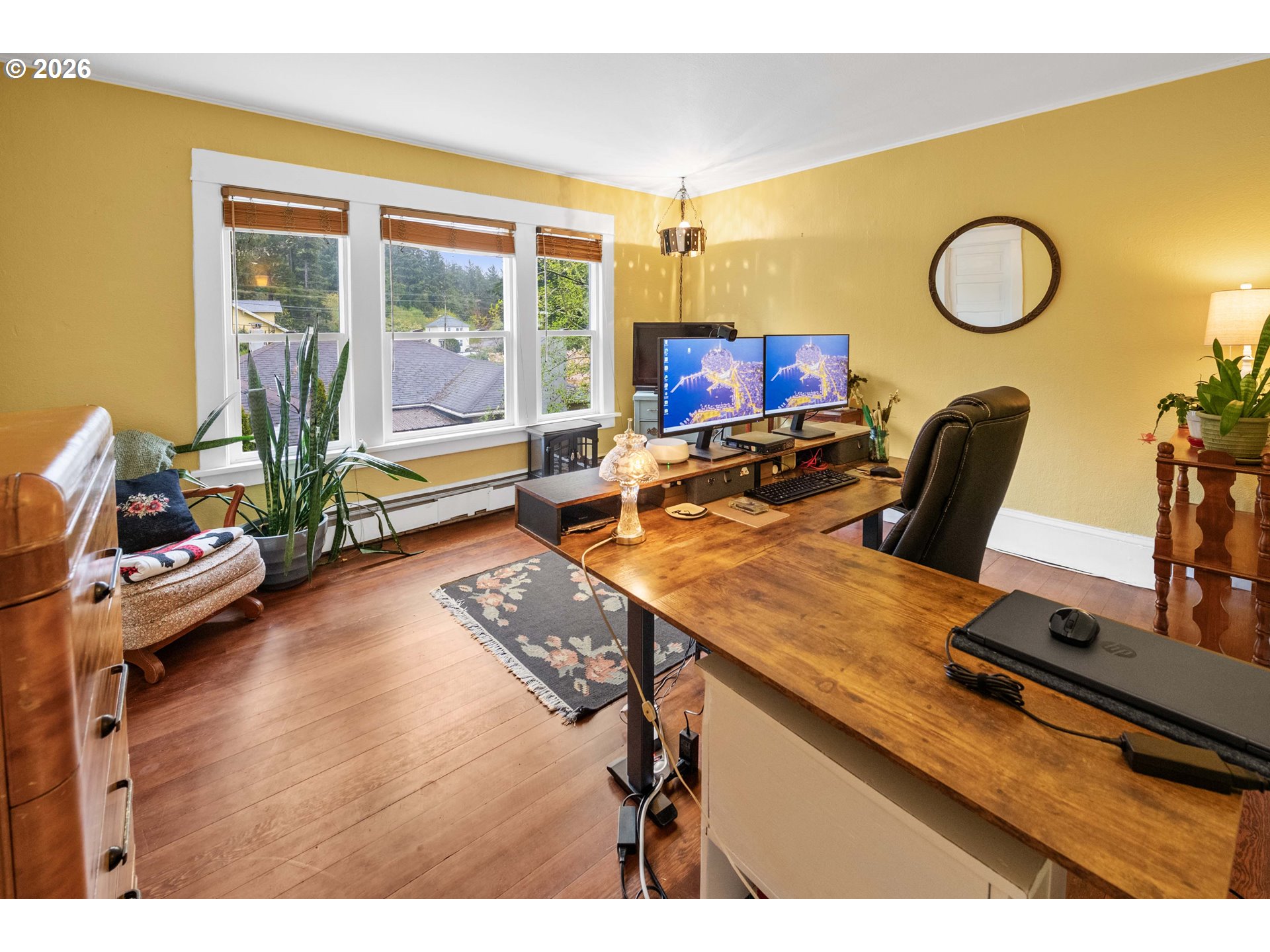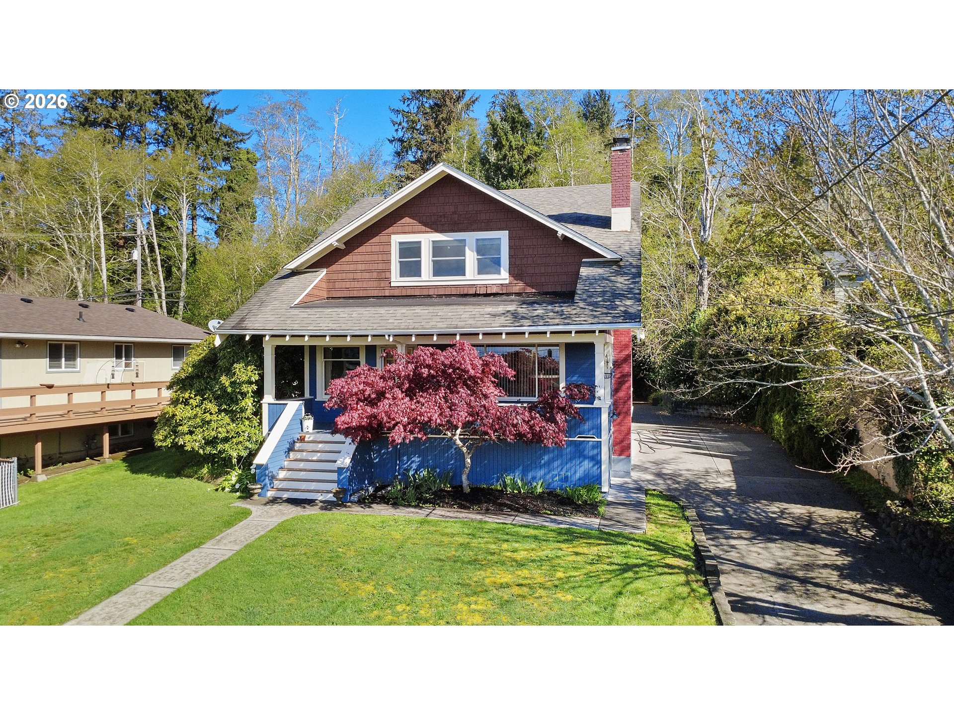 Best of both worlds: A quintessential 1922 Craftsman in Astoria proper with the addition of a modern 35’ x 35’ shop! With peeks of Youngs Bay, this 3 bedroom 2 full bath home has a traditional floor plan - updated kitchen with Corian countertops, Gas range, and beautiful wood cabinetry, a formal dining room and a breakfast nook, a large laundry room, and a partially finished basement makes amazing flex space. Upstairs spa-style bathroom has tile throughout, a luxury soaking tub, rain style shower and “smart vanity” with hidden outlets for all your bathroom tools and accessories. The best kept secret of this home, however, is the large, detached shop with 3 large bays, including one that has a 13’ clearance - a rarity for an in-town home! Shop also has a lofted area for storage galore! Perfect for the collector or hobbyist, or someone who wants to store their boat or small RV on site. Relax in the hot tub from the privacy of your back deck or enjoy the quiet of the covered front porch. Set your appointment to see this special Astoria home today!