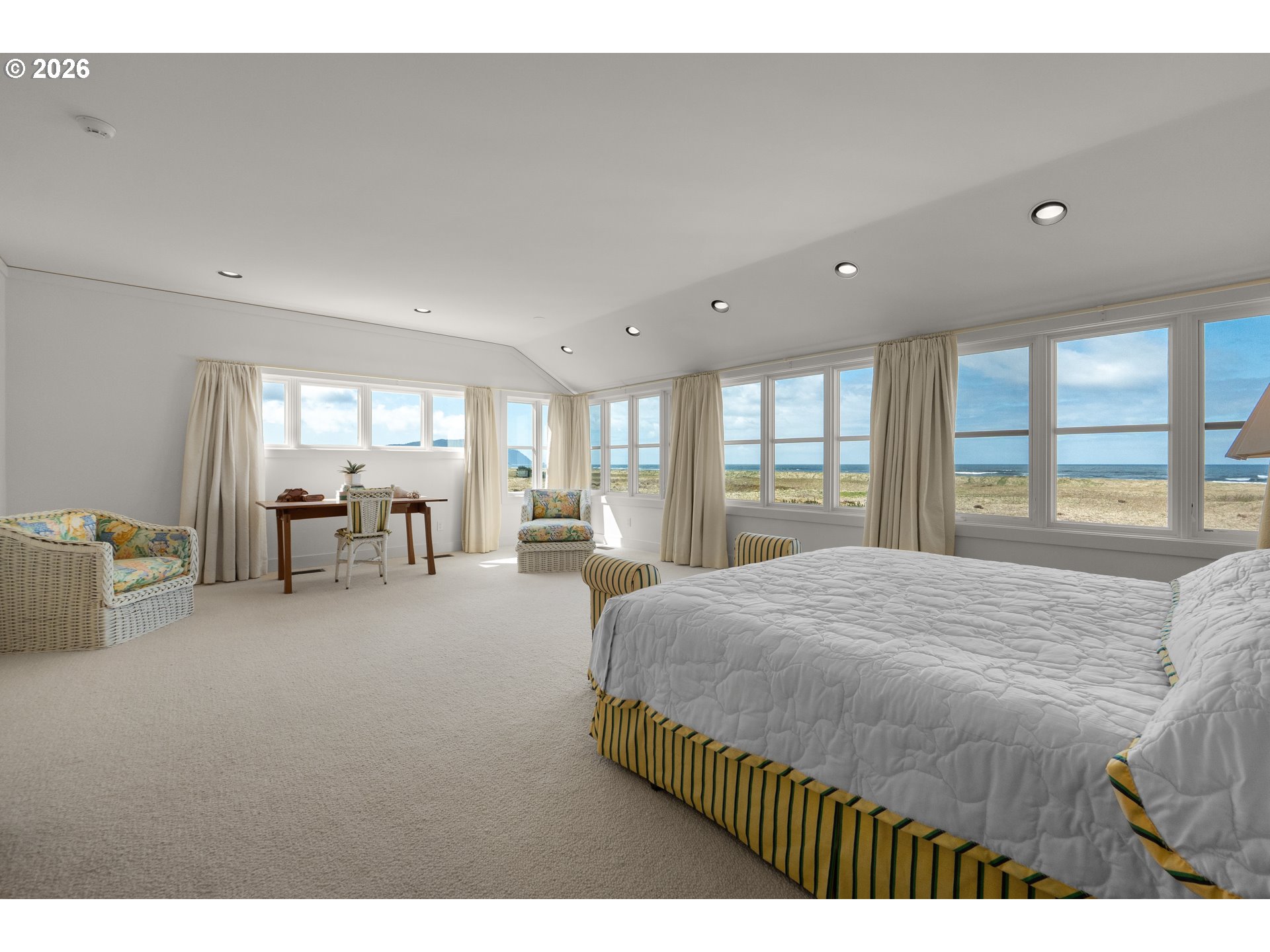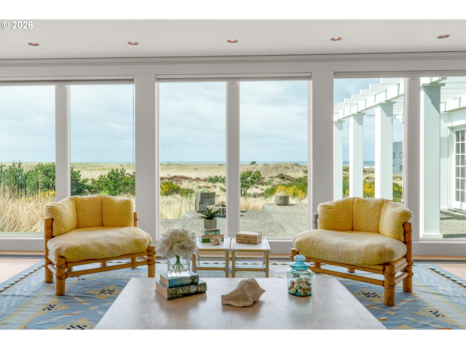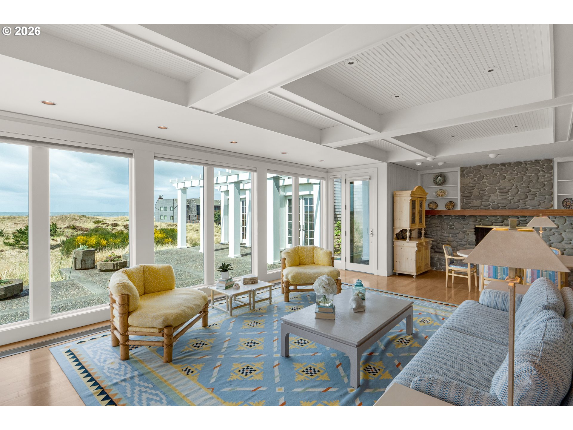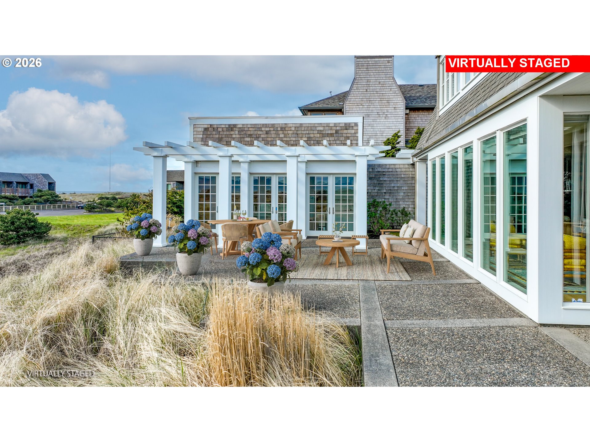 Introducing a truly rare legacy oceanfront estate in the charming coastal town of Gearhart. One of a kind and set on an extraordinary 1.28 acres, this remarkable property offers sweeping ocean views, dramatic vistas to Tillamook Head to the south, and the rare distinction of having no neighboring property to the south—only protected public land for added privacy and an unmatched sense of space. Encompassing 4,712 square feet, this timeless Cape Cod-style residence is filled with warmth, character, and opportunity. Bright and cheerful with an open living layout, the home features floor-to-ceiling windows in the living room that frame the stunning coastline, coffered ceilings, oak hardwood floors, a wine cellar, and an expansive bonus room ideal for a home theater, recreation space, or additional gathering area. Outdoor living is equally impressive with a spacious patio and an elegant cabana/pavilion designed for memorable entertaining by the sea. Located in beloved Gearhart, known for its private, relaxed atmosphere and understated elegance, the Gearhart Golf Links is just a short walk away. Perfectly positioned only 15 minutes to both Cannon Beach and Astoria, offering easy access to dining, galleries, shopping, and coastal adventures. This is a rare opportunity for the next steward to update, personalize, and create a new chapter of cherished family memories in one of the Oregon Coast’s most special settings.