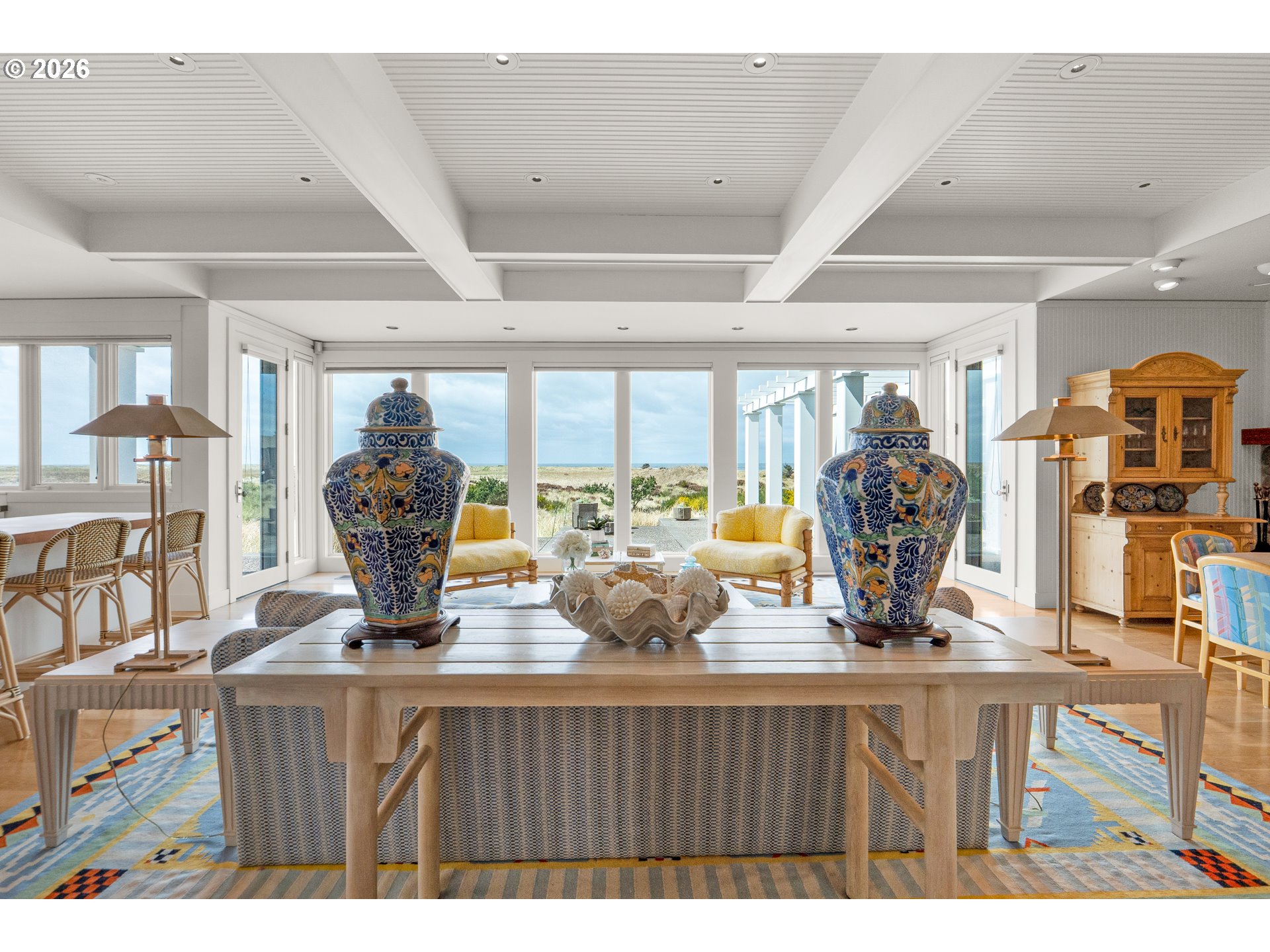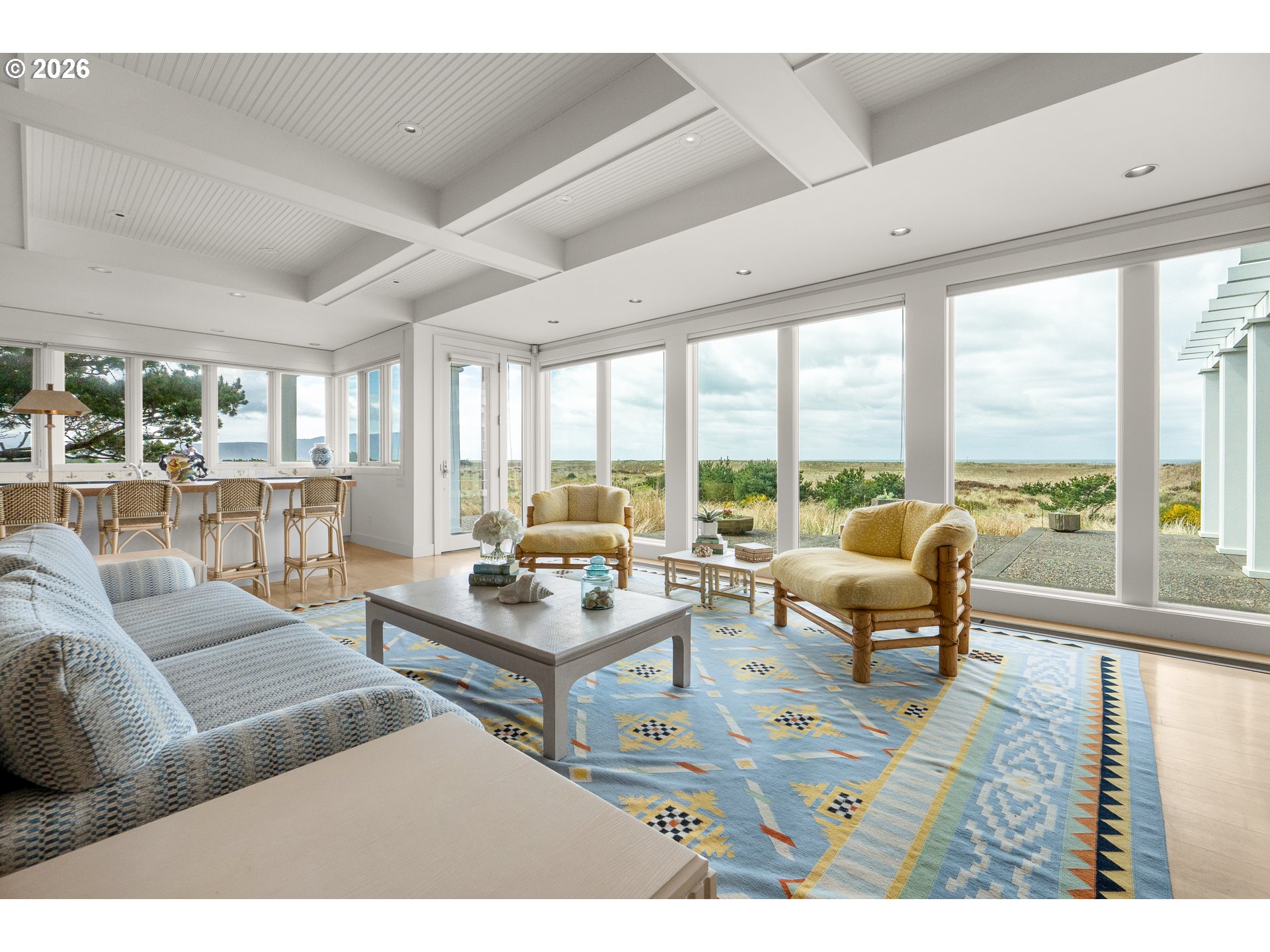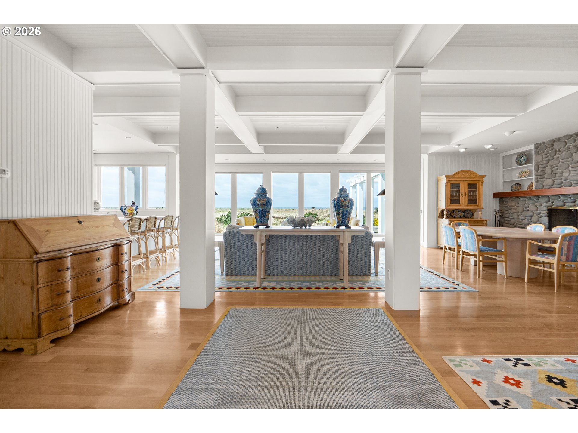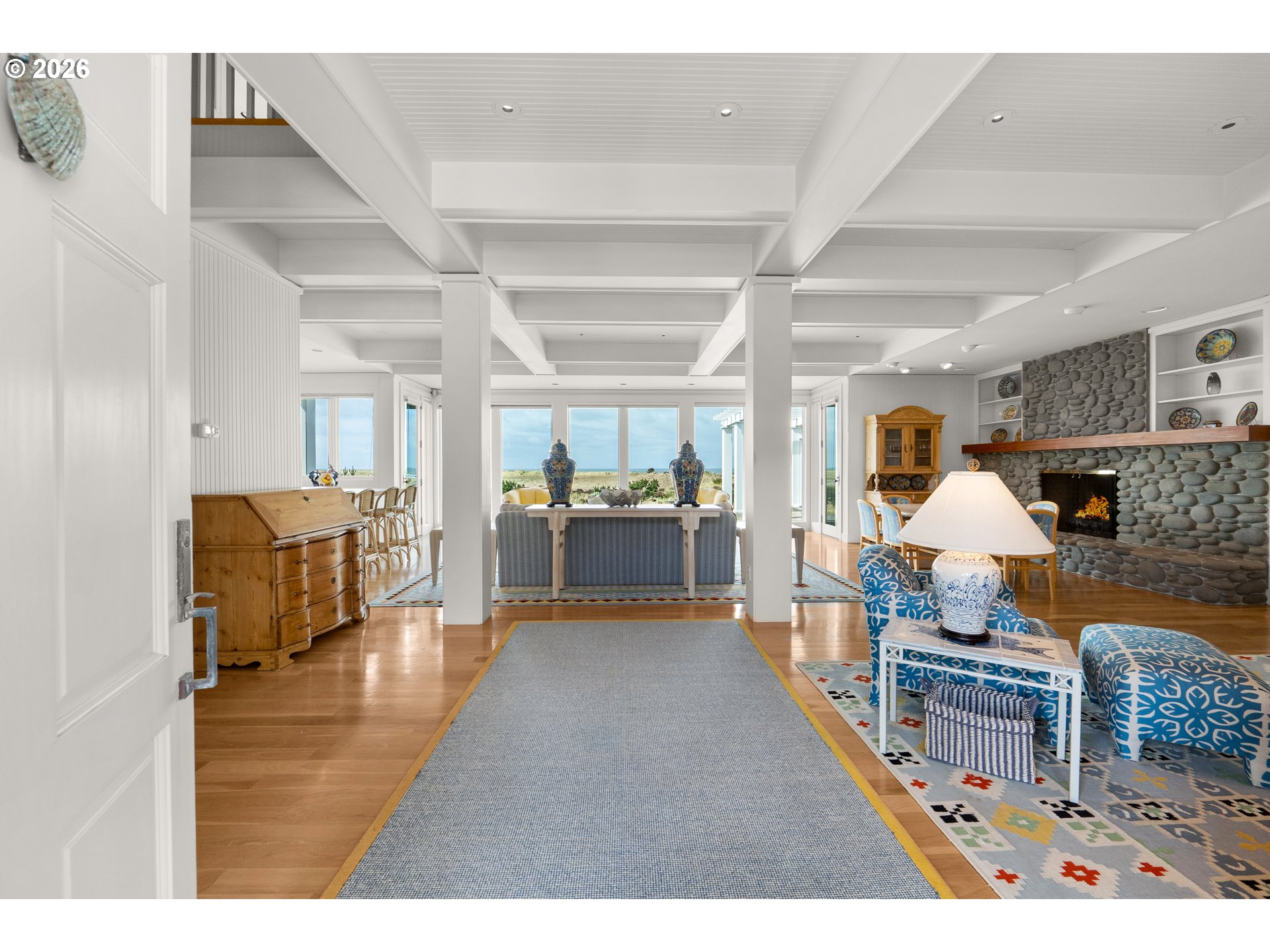 Introducing a truly rare legacy oceanfront estate in the charming coastal town of Gearhart. One of a kind and set on an extraordinary 1.28 acres, this remarkable property offers sweeping ocean views, dramatic vistas to Tillamook Head to the south, and the rare distinction of having no neighboring property to the south—only protected public land for added privacy and an unmatched sense of space. Encompassing 4,712 square feet, this timeless Cape Cod-style residence is filled with warmth, character, and opportunity. Bright and cheerful with an open living layout, the home features floor-to-ceiling windows in the living room that frame the stunning coastline, coffered ceilings, oak hardwood floors, a wine cellar, and an expansive bonus room ideal for a home theater, recreation space, or additional gathering area. Outdoor living is equally impressive with a spacious patio and an elegant cabana/pavilion designed for memorable entertaining by the sea. Located in beloved Gearhart, known for its private, relaxed atmosphere and understated elegance, the Gearhart Golf Links is just a short walk away. Perfectly positioned only 15 minutes to both Cannon Beach and Astoria, offering easy access to dining, galleries, shopping, and coastal adventures. This is a rare opportunity for the next steward to update, personalize, and create a new chapter of cherished family memories in one of the Oregon Coast’s most special settings.