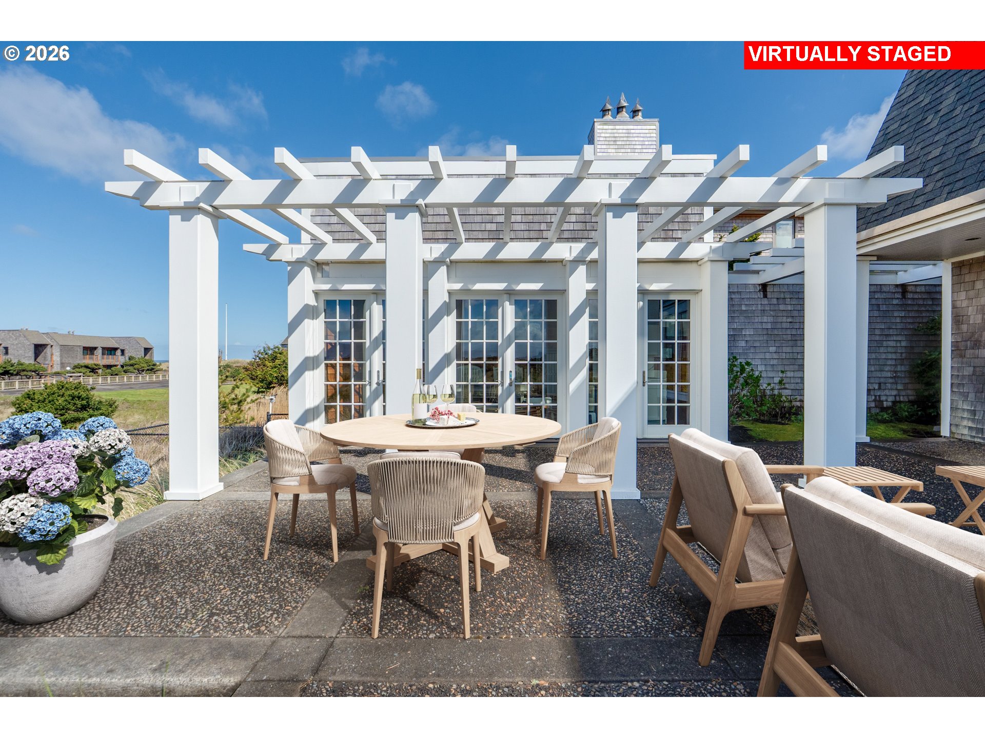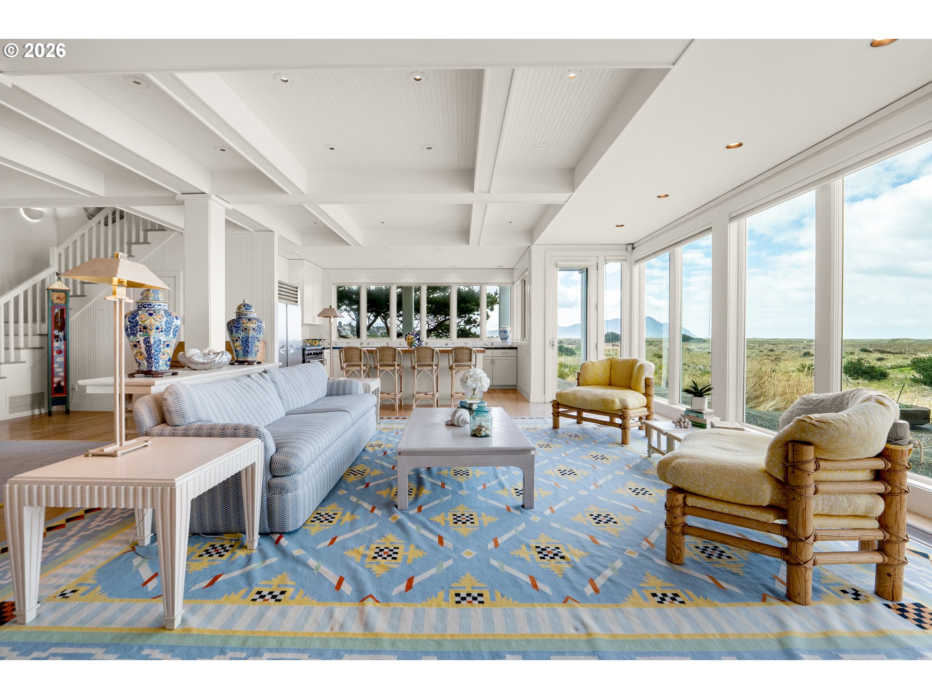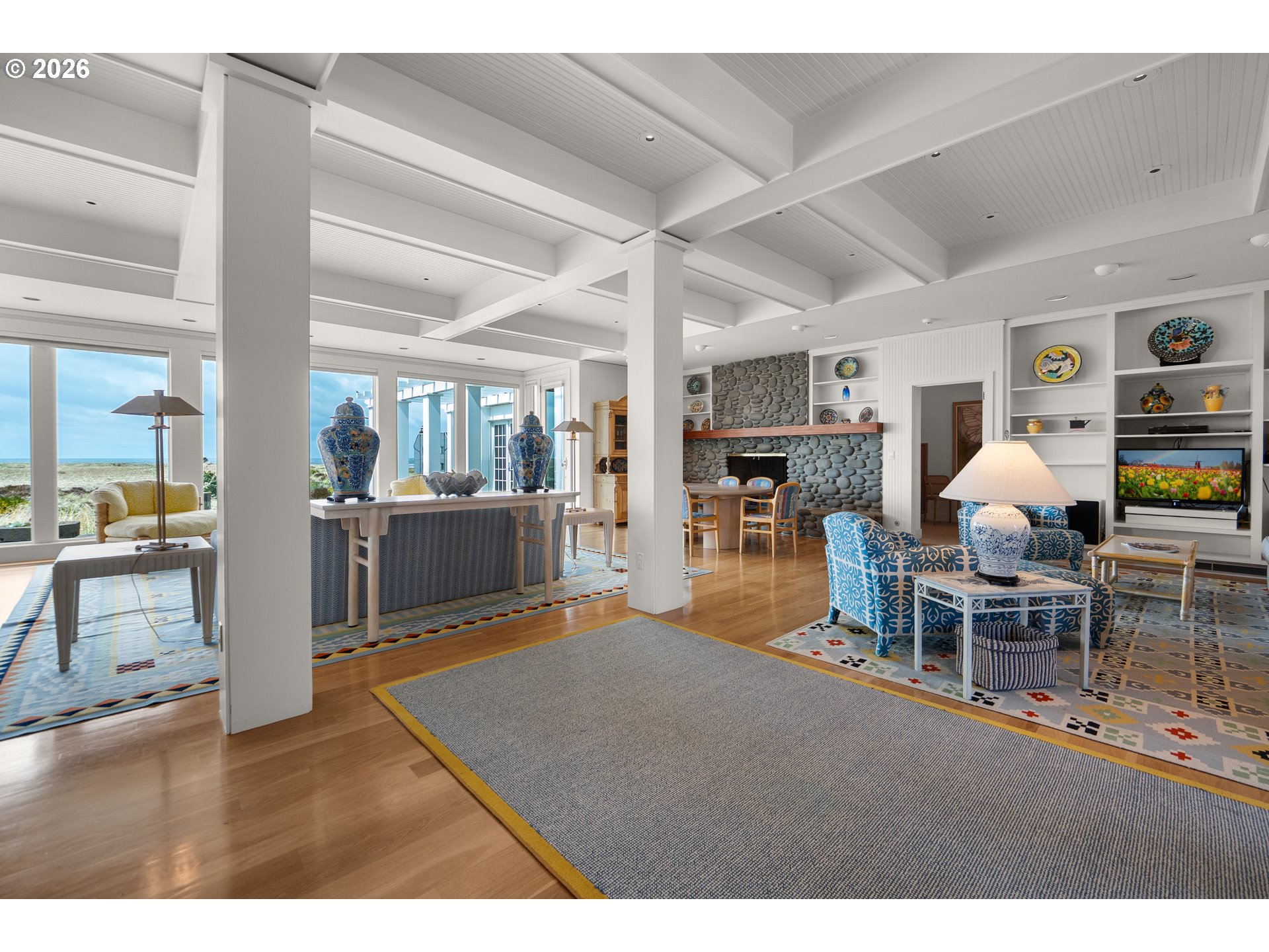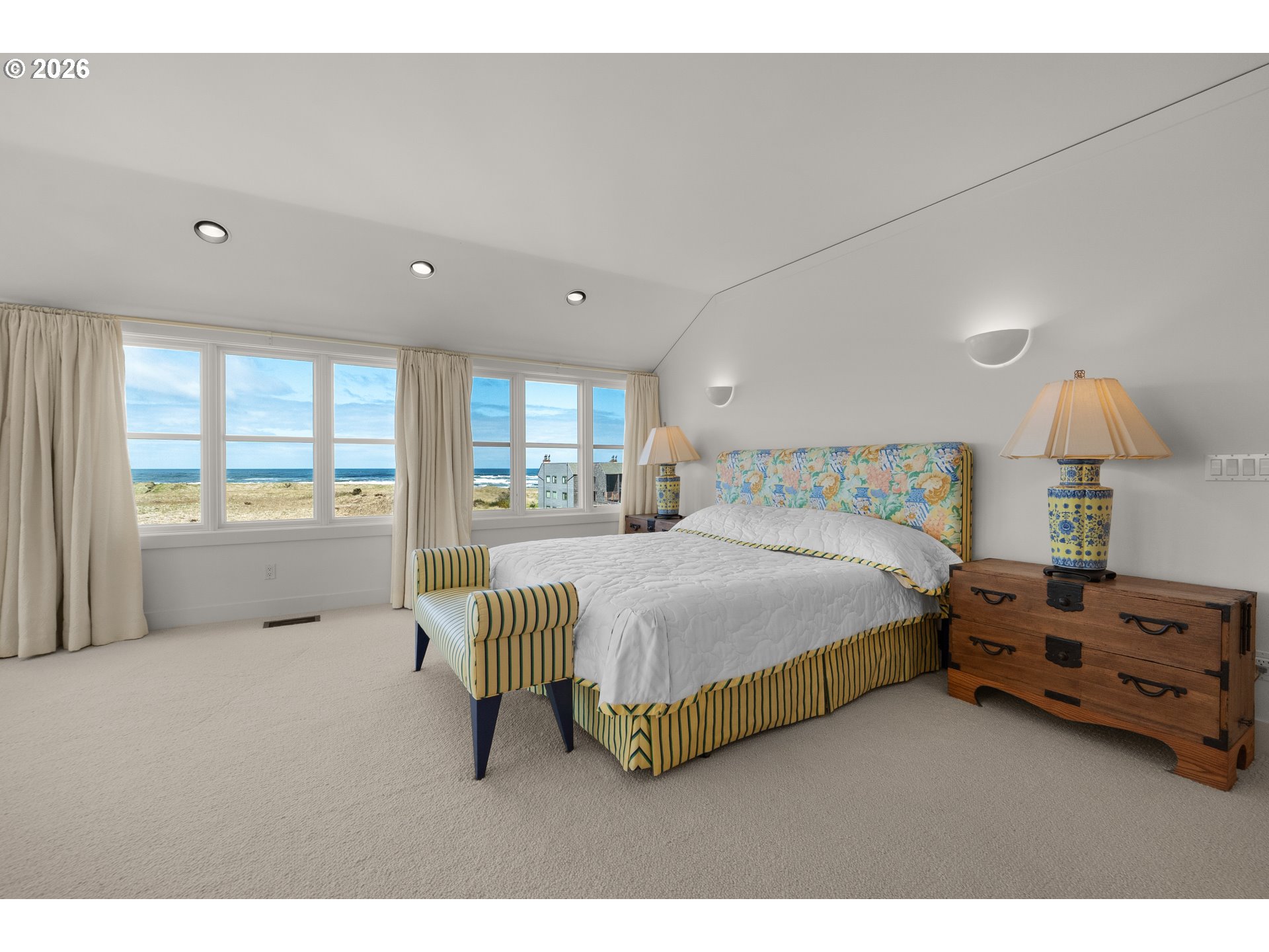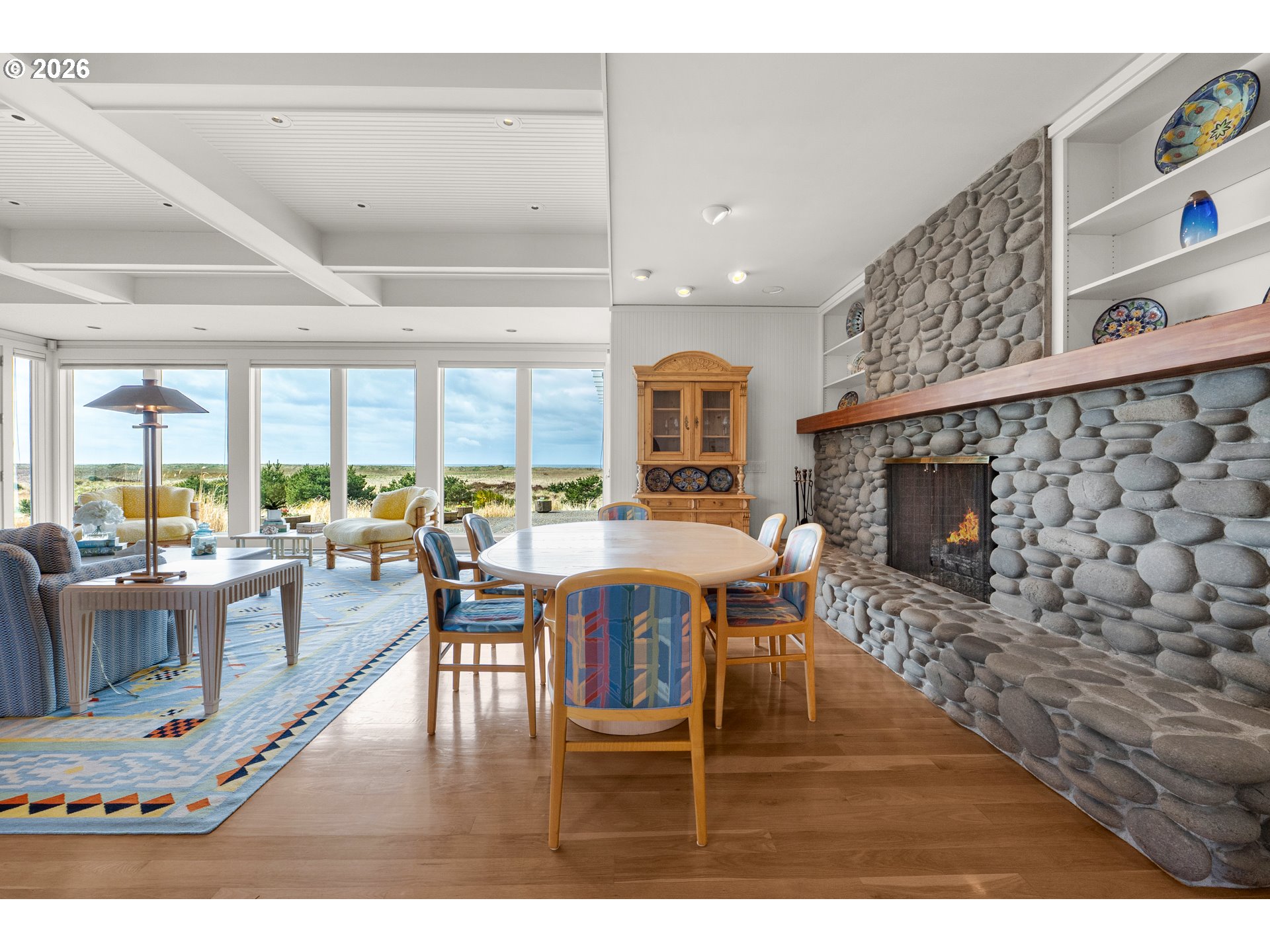 Introducing a truly rare legacy oceanfront estate in the charming coastal town of Gearhart. One of a kind and set on an extraordinary 1.28 acres, this remarkable property offers sweeping ocean views, dramatic vistas to Tillamook Head to the south, and the rare distinction of having no neighboring property to the south—only protected public land for added privacy and an unmatched sense of space. Encompassing 4,712 square feet, this timeless Cape Cod-style residence is filled with warmth, character, and opportunity. Bright and cheerful with an open living layout, the home features floor-to-ceiling windows in the living room that frame the stunning coastline, coffered ceilings, oak hardwood floors, a wine cellar, and an expansive bonus room ideal for a home theater, recreation space, or additional gathering area. Outdoor living is equally impressive with a spacious patio and an elegant cabana/pavilion designed for memorable entertaining by the sea. Located in beloved Gearhart, known for its private, relaxed atmosphere and understated elegance, the Gearhart Golf Links is just a short walk away. Perfectly positioned only 15 minutes to both Cannon Beach and Astoria, offering easy access to dining, galleries, shopping, and coastal adventures. This is a rare opportunity for the next steward to update, personalize, and create a new chapter of cherished family memories in one of the Oregon Coast’s most special settings.