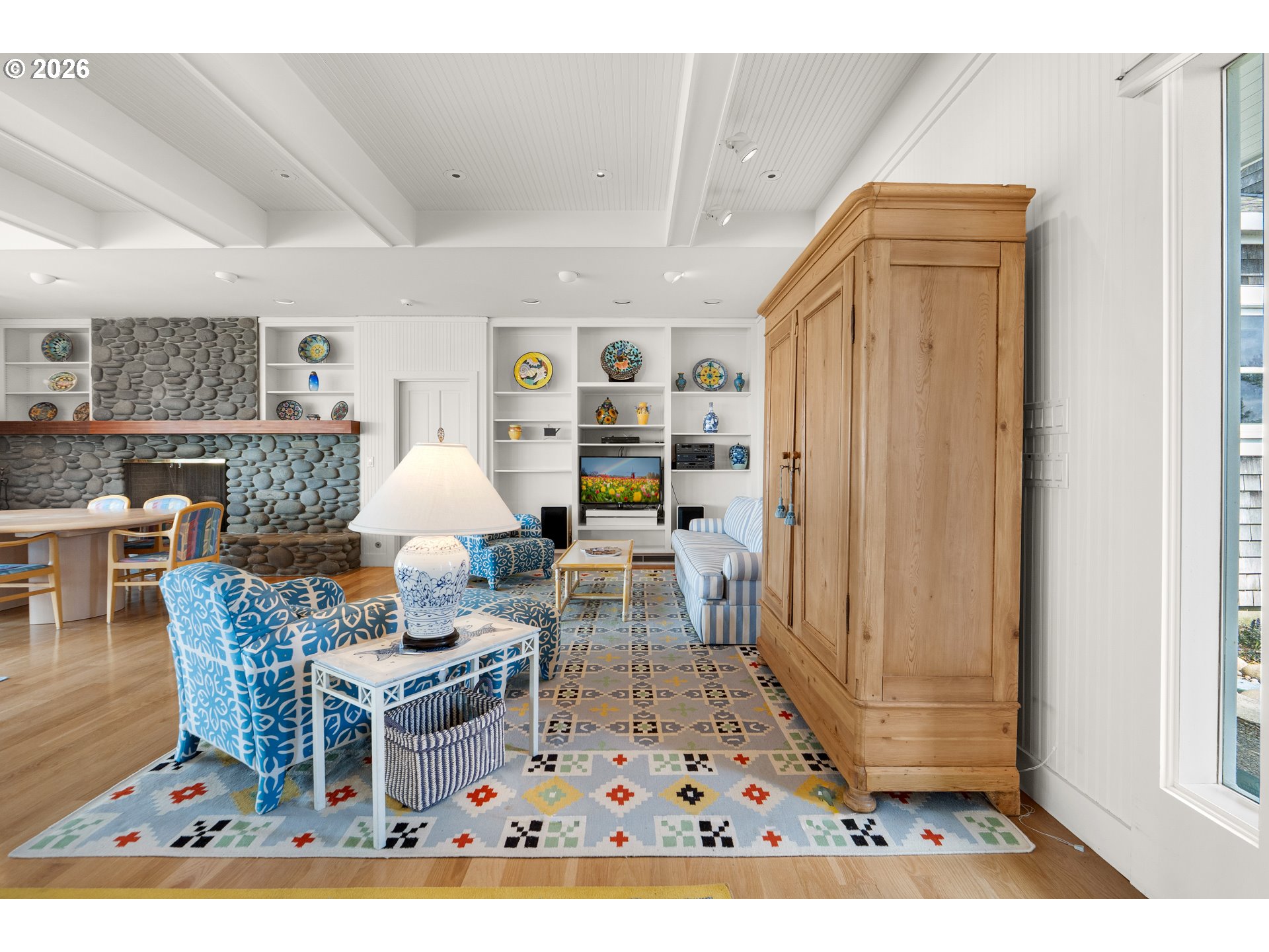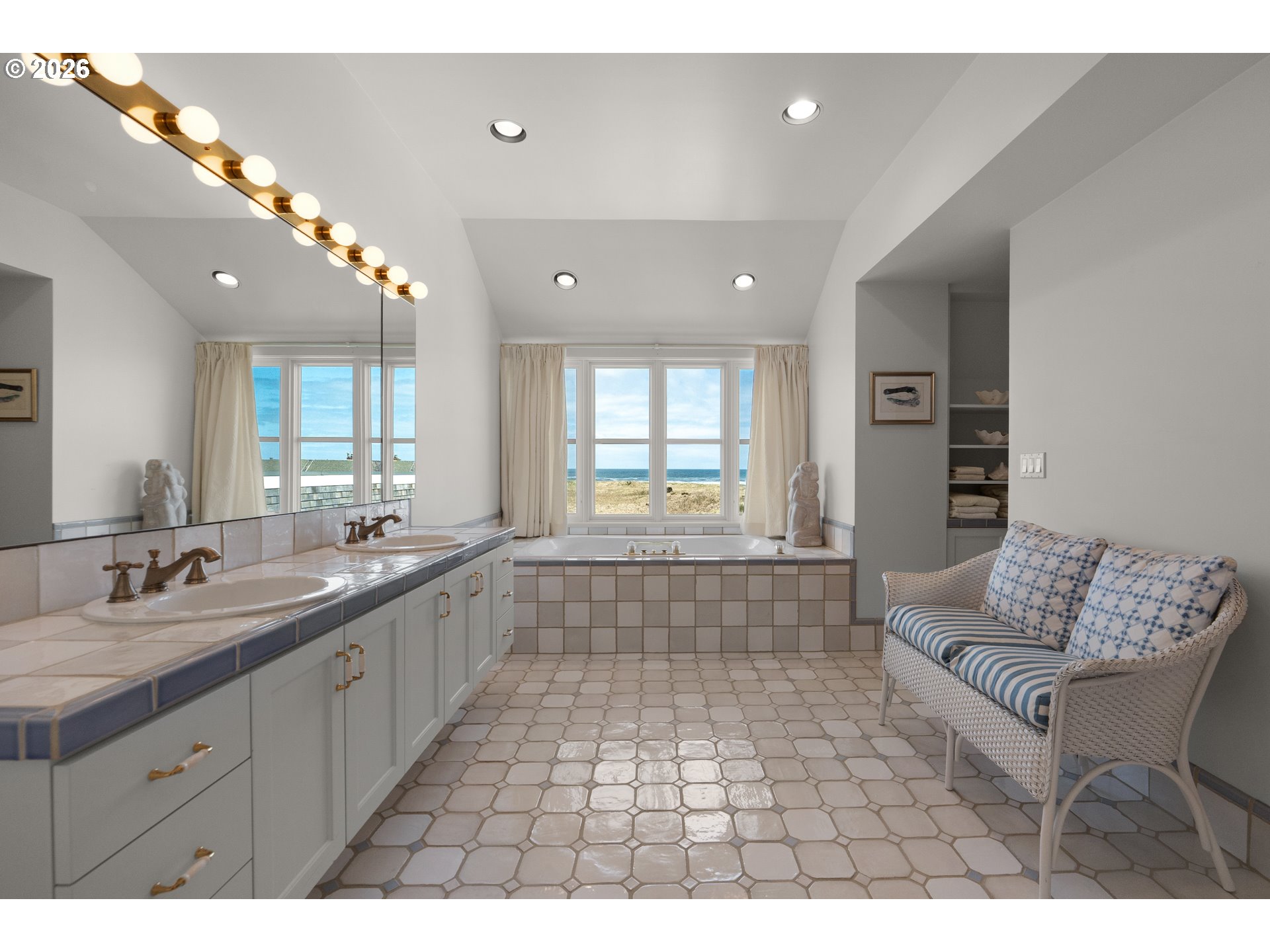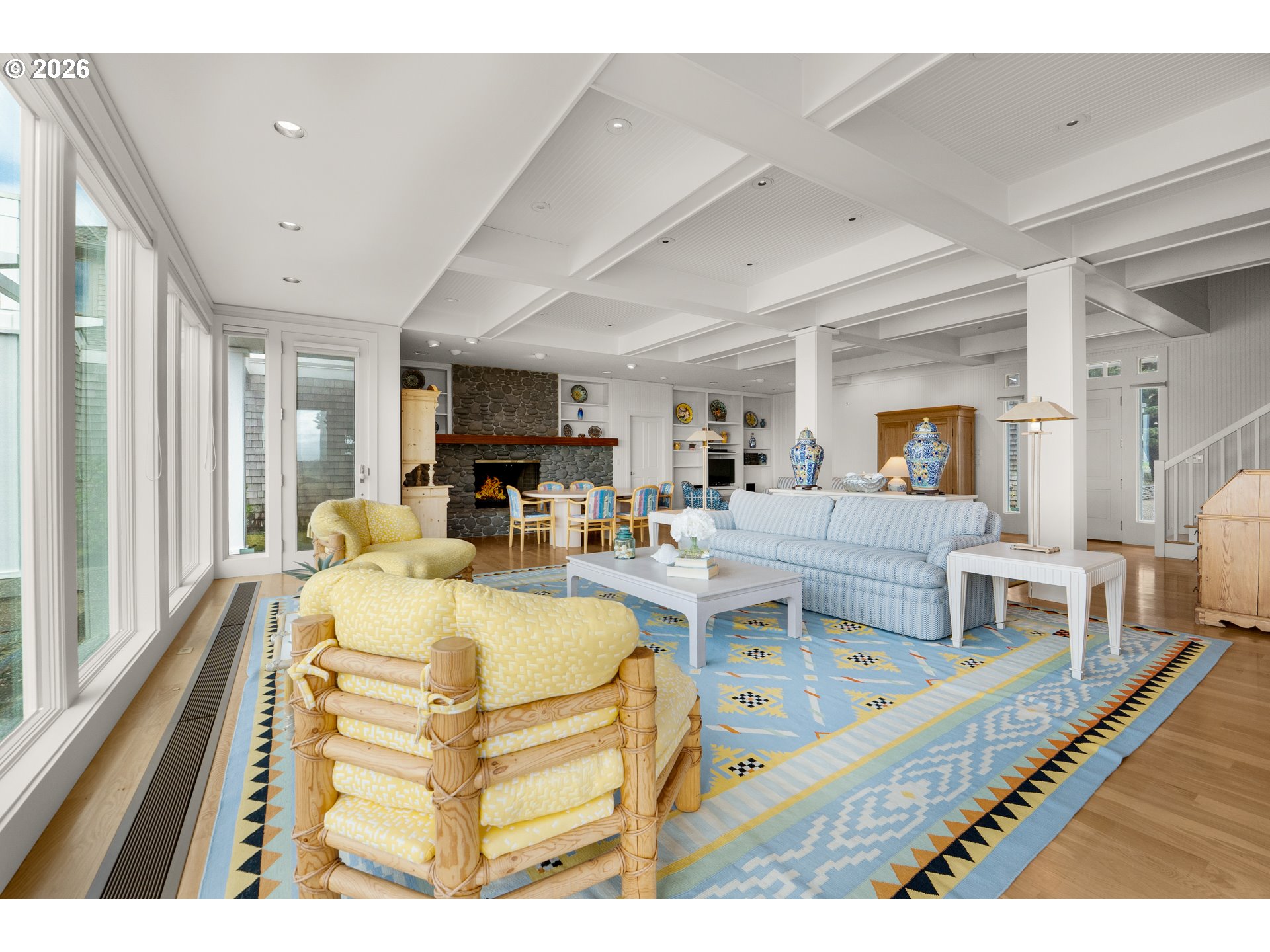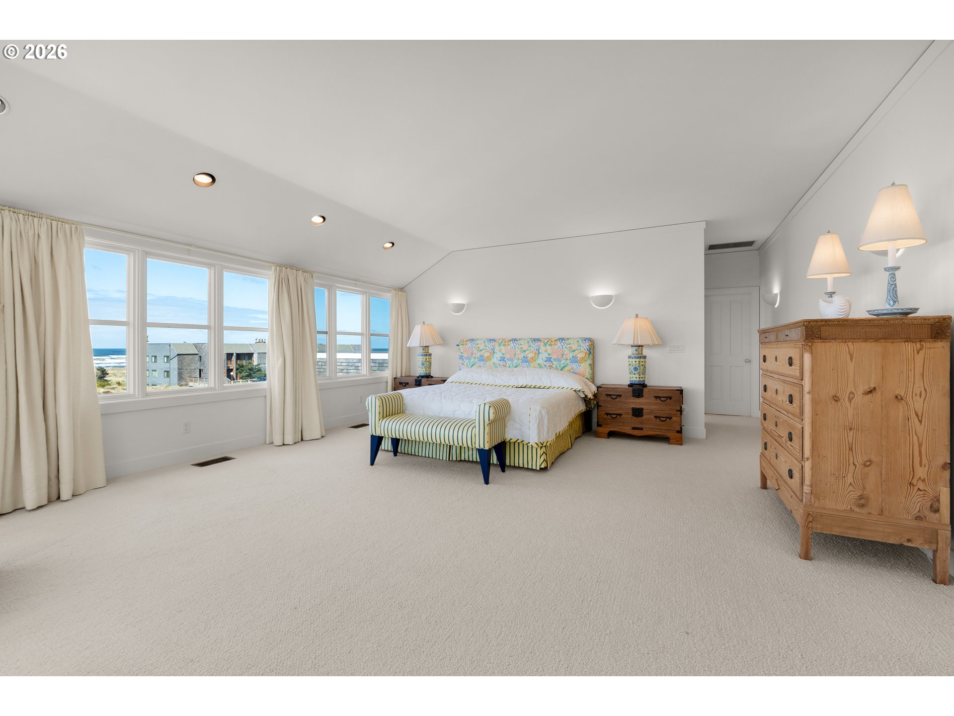 Introducing a truly rare legacy oceanfront estate in the charming coastal town of Gearhart. One of a kind and set on an extraordinary 1.28 acres, this remarkable property offers sweeping ocean views, dramatic vistas to Tillamook Head to the south, and the rare distinction of having no neighboring property to the south—only protected public land for added privacy and an unmatched sense of space. Encompassing 4,712 square feet, this timeless Cape Cod-style residence is filled with warmth, character, and opportunity. Bright and cheerful with an open living layout, the home features floor-to-ceiling windows in the living room that frame the stunning coastline, coffered ceilings, oak hardwood floors, a wine cellar, and an expansive bonus room ideal for a home theater, recreation space, or additional gathering area. Outdoor living is equally impressive with a spacious patio and an elegant cabana/pavilion designed for memorable entertaining by the sea. Located in beloved Gearhart, known for its private, relaxed atmosphere and understated elegance, the Gearhart Golf Links is just a short walk away. Perfectly positioned only 15 minutes to both Cannon Beach and Astoria, offering easy access to dining, galleries, shopping, and coastal adventures. This is a rare opportunity for the next steward to update, personalize, and create a new chapter of cherished family memories in one of the Oregon Coast’s most special settings.