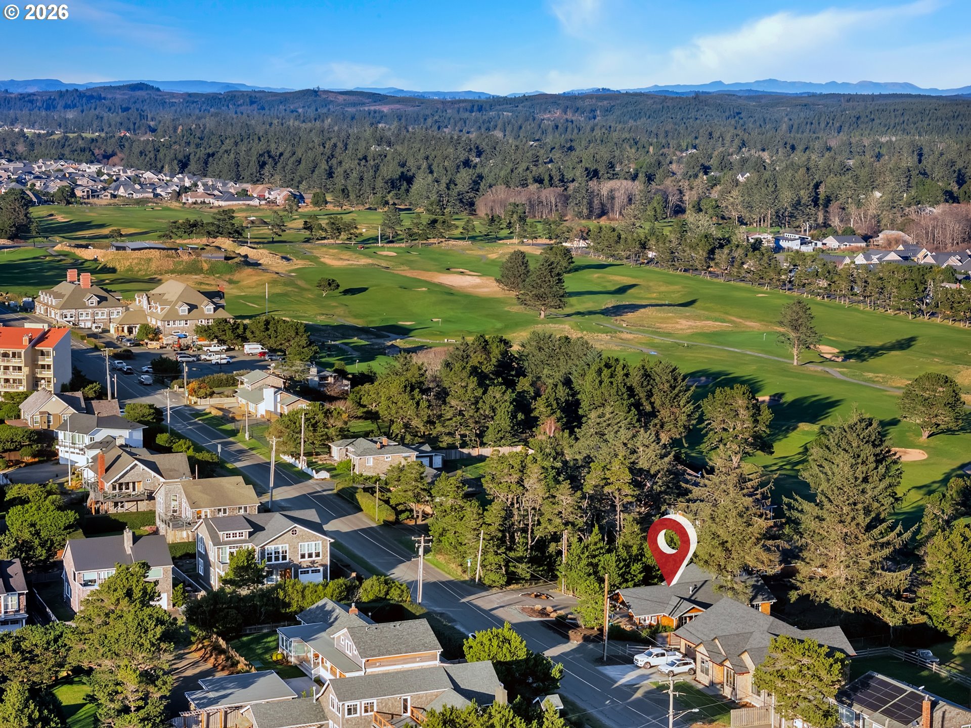 Custom-built in 2019, this well positioned home is within a few blocks of a beach access trail, an 18 hole golf course, eateries and a short bike-ride or stroll to downtown. Also a great place to view the start of the beloved July 4th parade from a wraparound deck with both covered and uncovered seating and raised garden beds on the south side. Inside, a thoughtfully designed open floor plan that spans a single level with generous windows allowing for natural light to flow throughout the great room and kitchen, a primary suite with walk-in closet and bath featuring custom tile flooring and floor to ceiling quartz tub/shower surround. A second bedroom and a full bath are also on main floor. The third bedroom is located within a separate 728 sq ft studio with its own exterior entrance-ideal for guests, multigenerational living, or extended stays. The studio offers a private bedroom, full bath, coffee bar with sink, under counter refrigerator and microwave. Plenty of storage spaces with an unfinished area for a future project. Much to enjoy. Home features list available.
