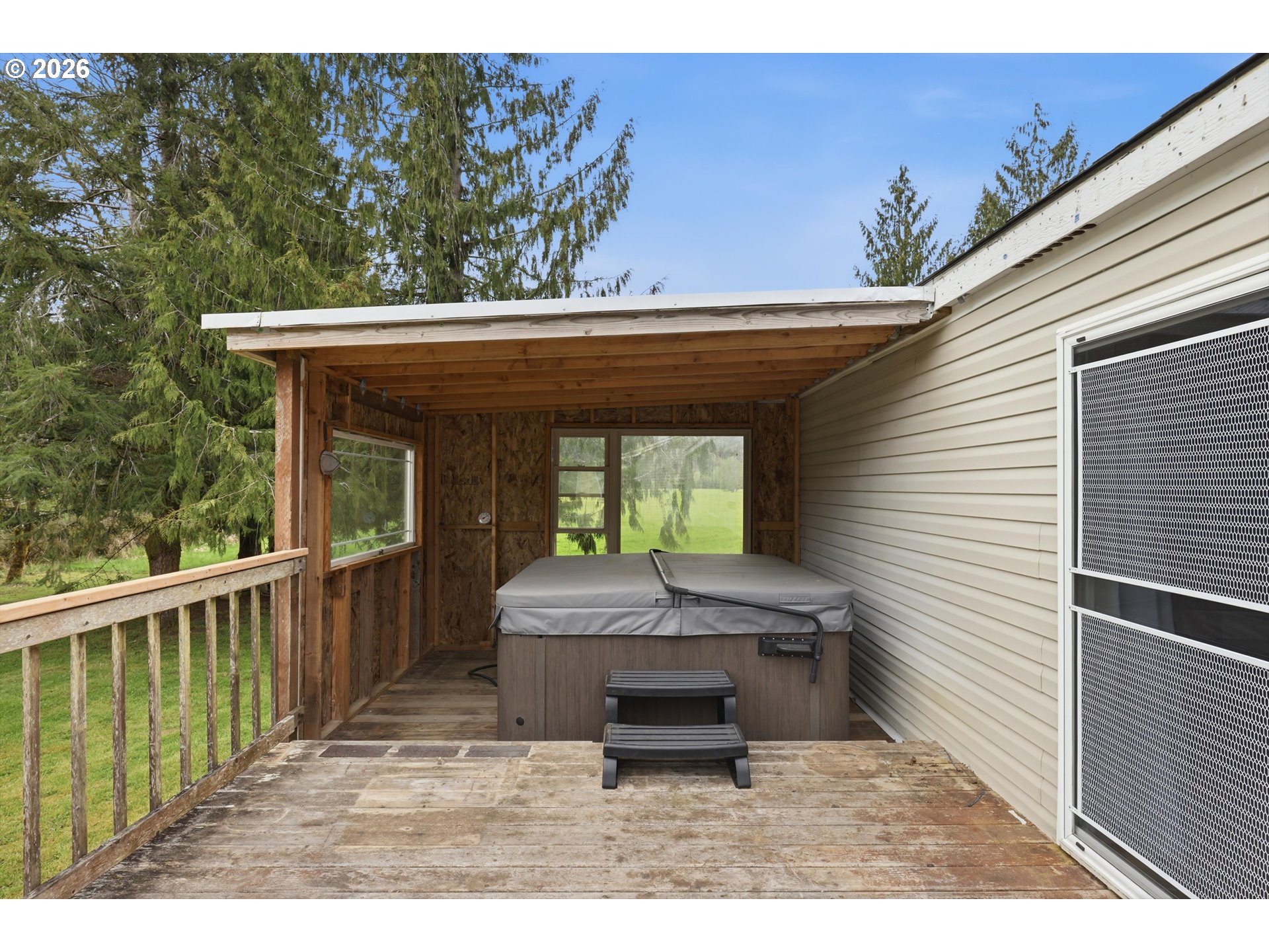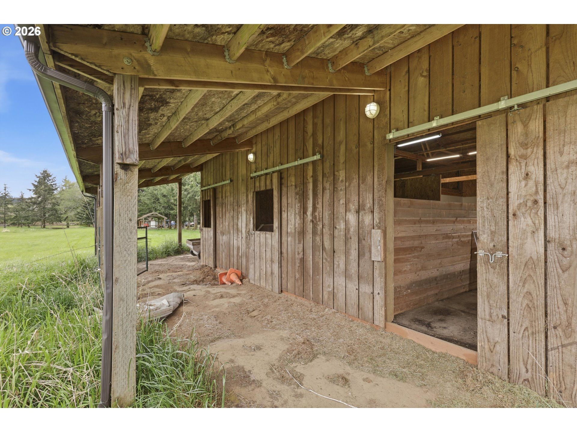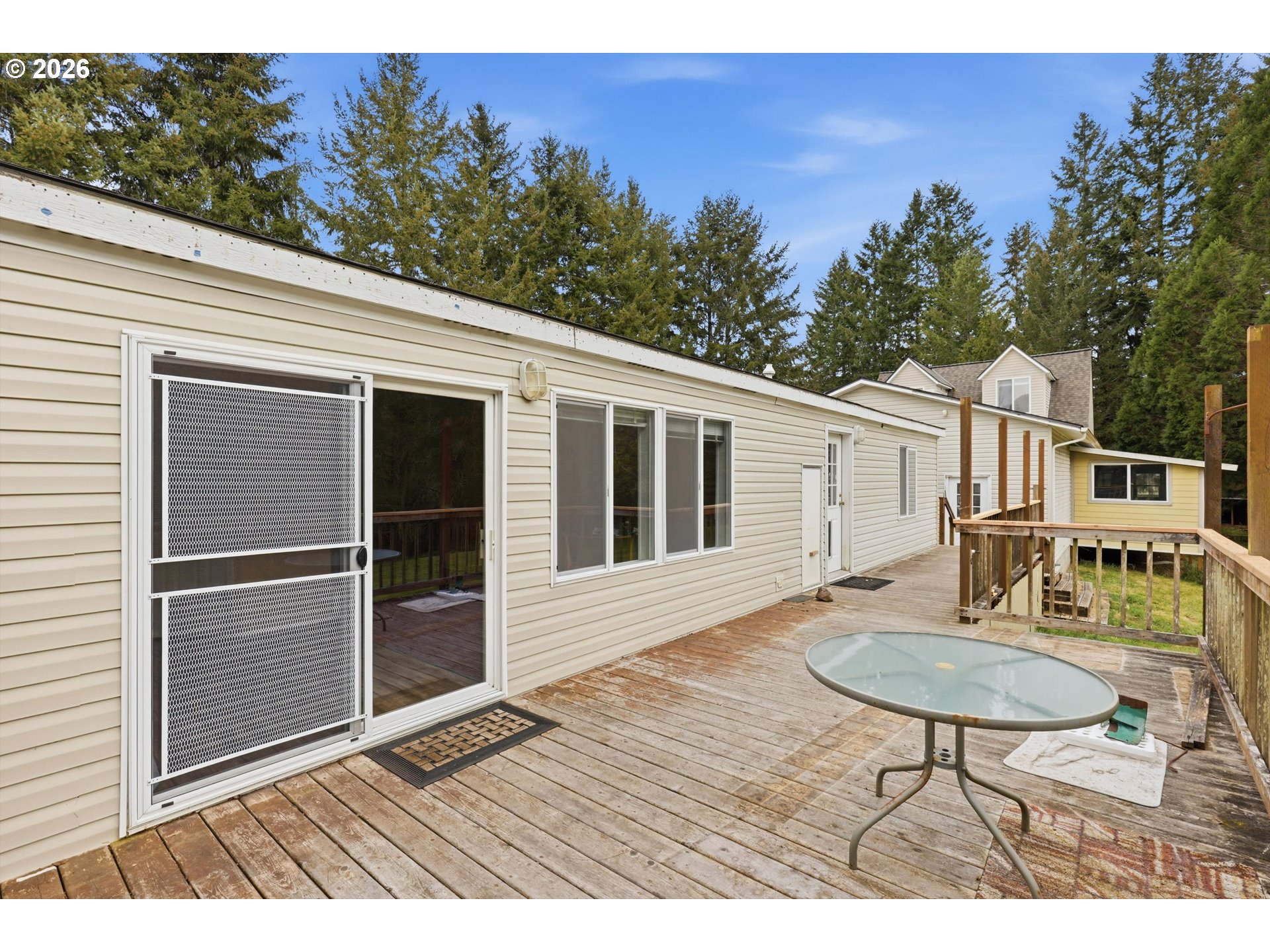 Incredibly serene 37.14 acre property, 3 bed 2 bath 2,254 sqft triple wide manufactured home with large covered front porch. Living room has vaulted ceilings, lots of windows and propane fireplace. Large kitchen with pantry, large bedrooms, primary bed with vaults, walk in closet and ensuite bath with oversized soaker tub, and stand up shower. Seller has new shower base purchased and never installed if someone wanted to remodel primary bath. Slider from dining room to back deck with enclosure around hot tub. Hot tub is newer but has a small leak believed to be around one of the jets. House has full house Generac generator and propane tankless hot water heater. Outbuildings included; 3 stall horse barn with hot and cold water wash stall, hay storage, office/tack room with toilet. 3 car detached Garage is wired 220 with both 220 and 20 amp outlets and wired relay for exterior lights so if there is motion all lights come on. 2 story attached workshop below with studio above with full bath and beautiful hardwood floors from the over 100 year old grange when it was taken down. Buyer to do their own due diligence on the workshop/studio being used as an ADU.Well pump house with backup generator. 40x60 shopLarge wood shed that could be used for boat storageWood shedUtility shed2 car metal car port. Roof on house and 3 car garage new in 2020 with transferrable warranty. Property has 1,000 ft of Nehalem river frontage, stairs down to the river have been started. 32.14 acres in tax deferral and have been hayed for years there is no present lease or contract so that new owner has no immediate obligation. Seller has contacts if new owner would like to engage with someone interested in haying the property. Propane tank is rented, diesel tank is owned. 3 California redwoods, Alder, Fir, Redwood, Cedar, Pear and Apple trees. Wildlife including elk herd that frequent the property.