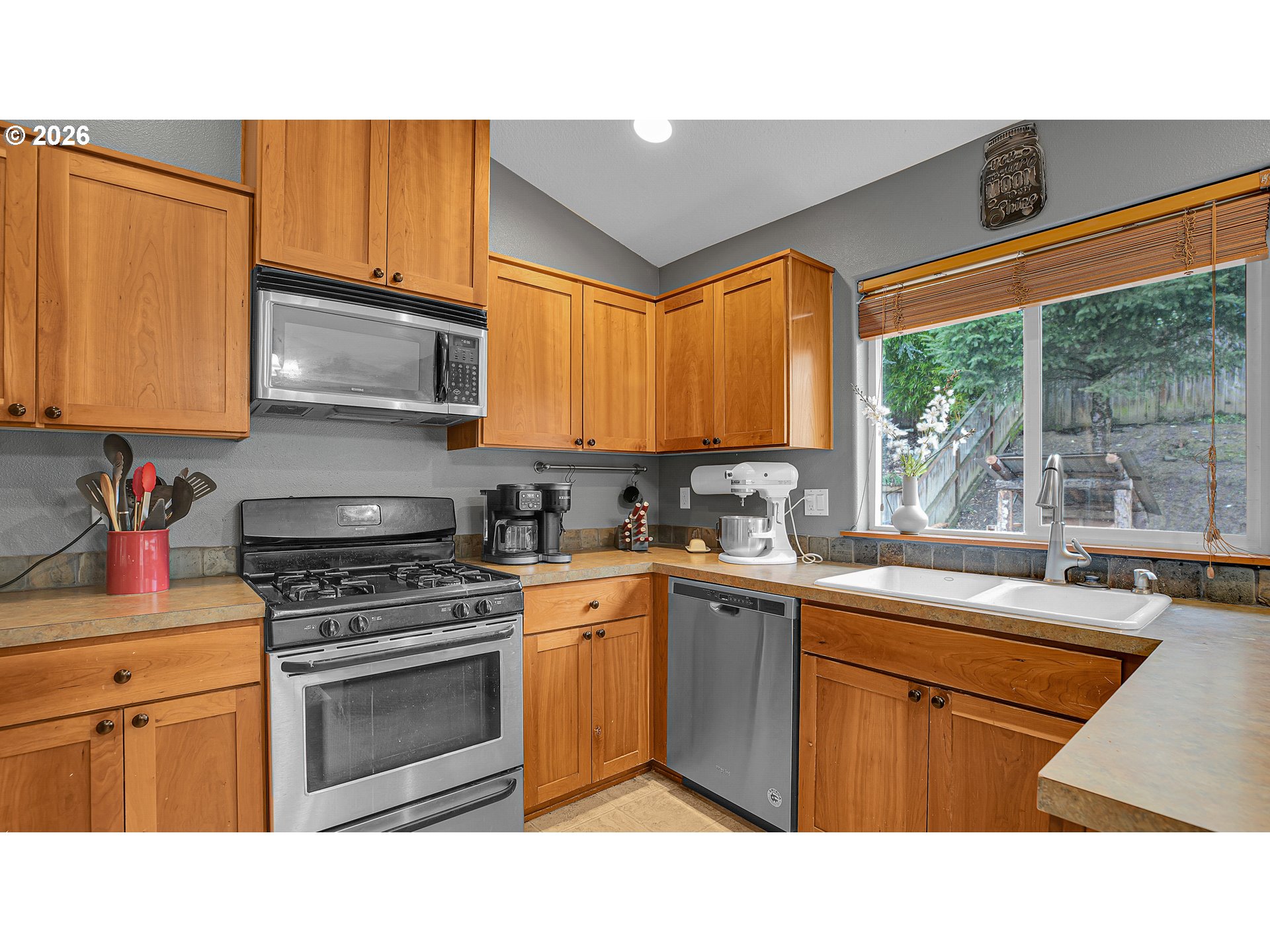Tucked at the end of a quiet dead-end street where the road meets the forest, this charming Craftsman offers the peaceful Vernonia lifestyle so many are looking for. Wake up to breathtaking sunrises and sweeping hill and tree views from the front windows, and enjoy frequent visits from deer right at your doorstep.This thoughtfully designed 3-bedroom, 2-bath home features an inviting main level with beautiful hard surface laminate floors, a vaulted living room filled with natural light, and a spacious country kitchen with gorgeous wood cabinetry and ample room to gather. Just a few steps up, you’ll find three comfortable bedrooms and two full baths, including a vaulted primary suite. A short set of steps down leads to the laundry area and attached garage for everyday convenience.Outside, the fully fenced backyard offers space to relax, garden, or play, while the extra-long driveway provides plenty of room for additional vehicles, recreational toys, or guests. Located on a quiet street with a private feel, this home blends comfort, nature, and functionality — all just minutes from town.