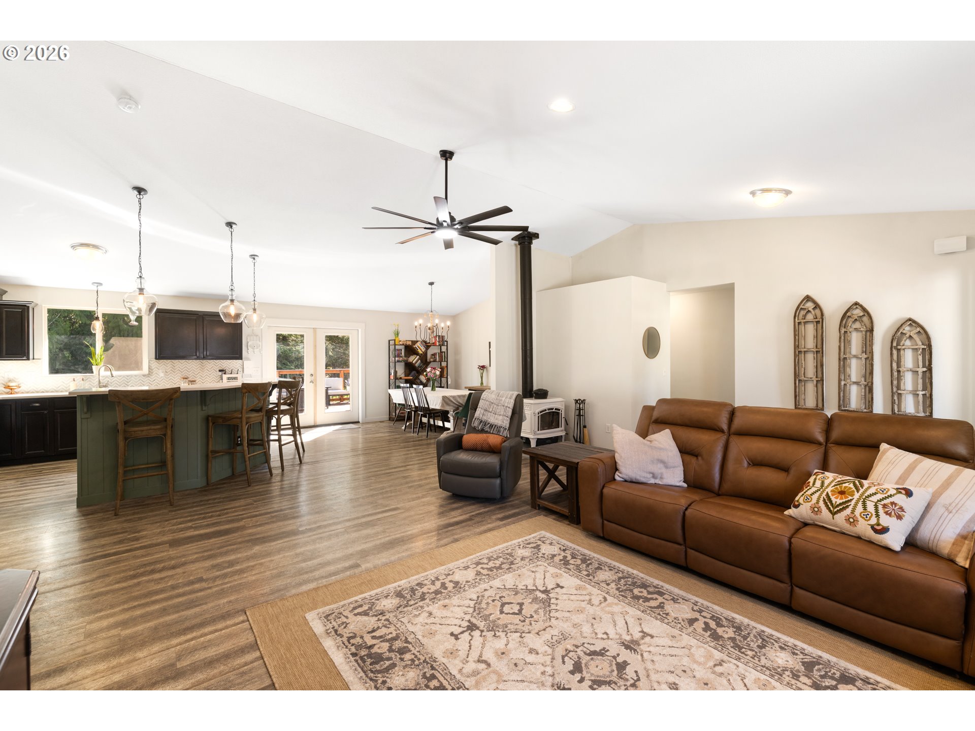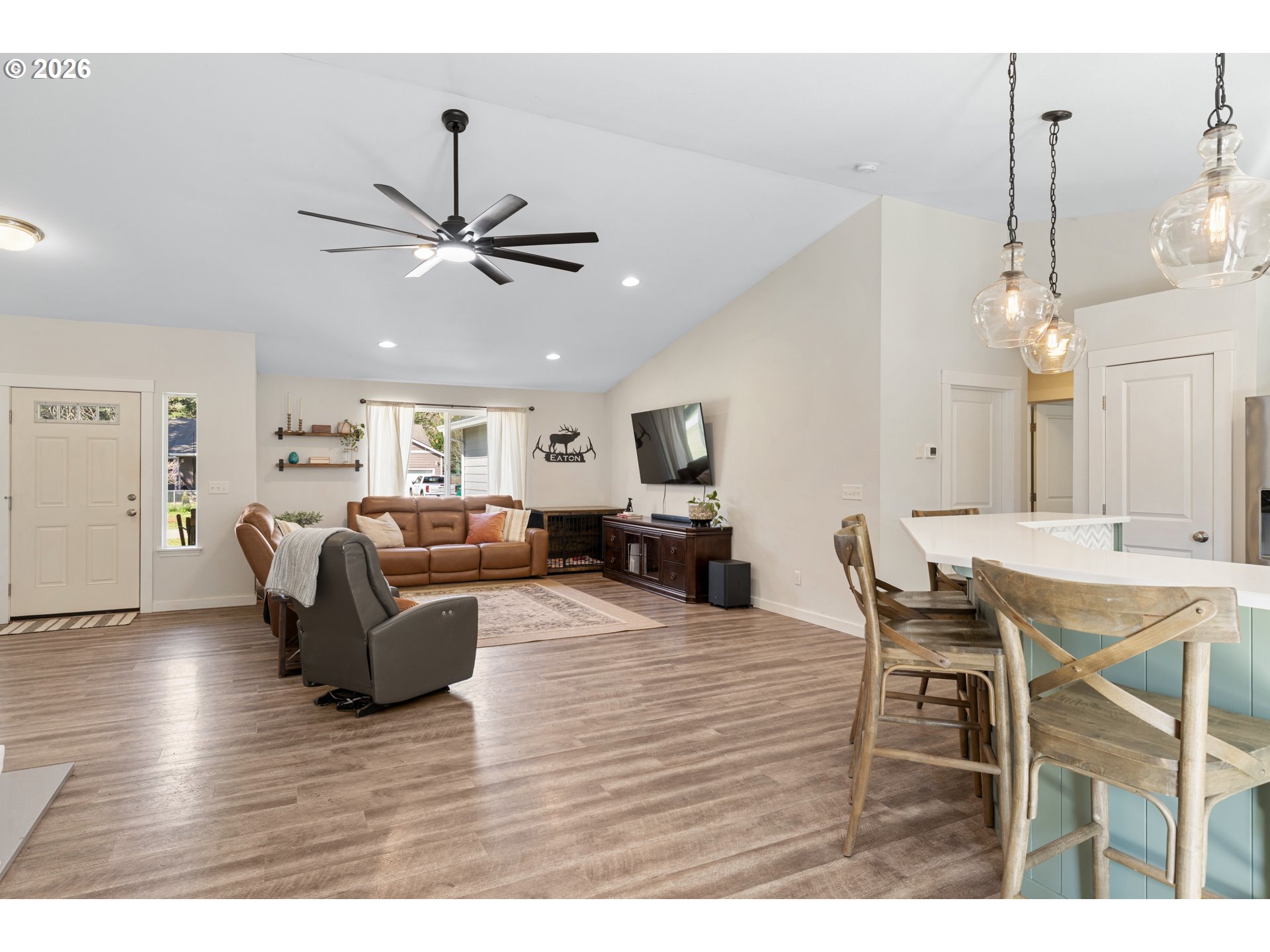 Pull up to 1128 Springboard Ln and you'll immediately understand the appeal. Quiet dead-end street, almost half an acre, and the kind of one-story layout that actually lives as good as it looks. Inside, the vaulted ceilings set the tone. Everything is spacious and open from the moment you walk in. 3 large bedrooms, a true primary with en-suite, LVP flooring, and a well-appointed kitchen with quartz counters and farmhouse fixtures. The outdoor living is where this one really shines. A large Trex deck off the back is ready for summer, morning coffee, playing in the yard, evening fire, and the almost half-acre lot gives everyone room to breathe, including the chickens. RV parking adds to the utility. This is Vernonia living at its best: the feel of the country without giving up the convenience of town. One story, real space, and a community worth buying into. Don't miss it!