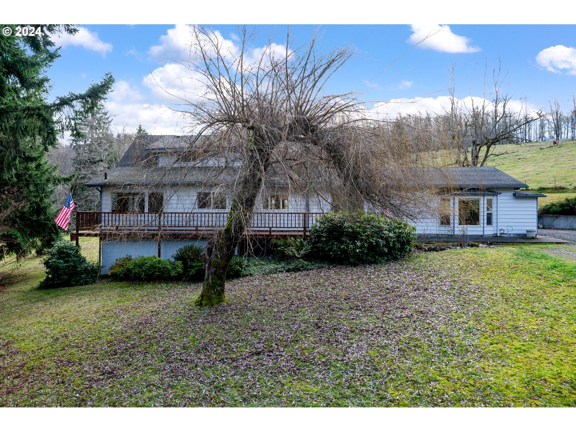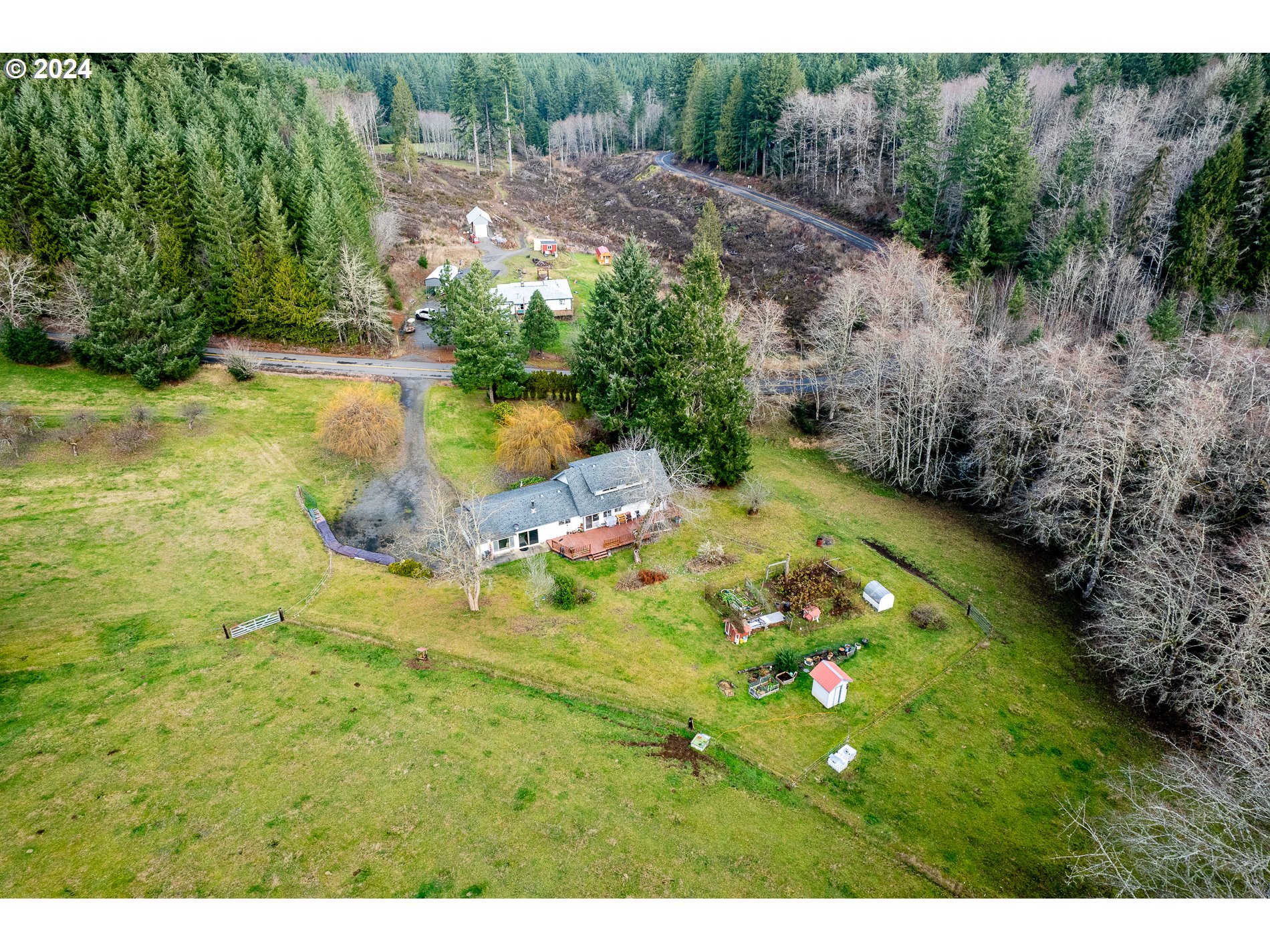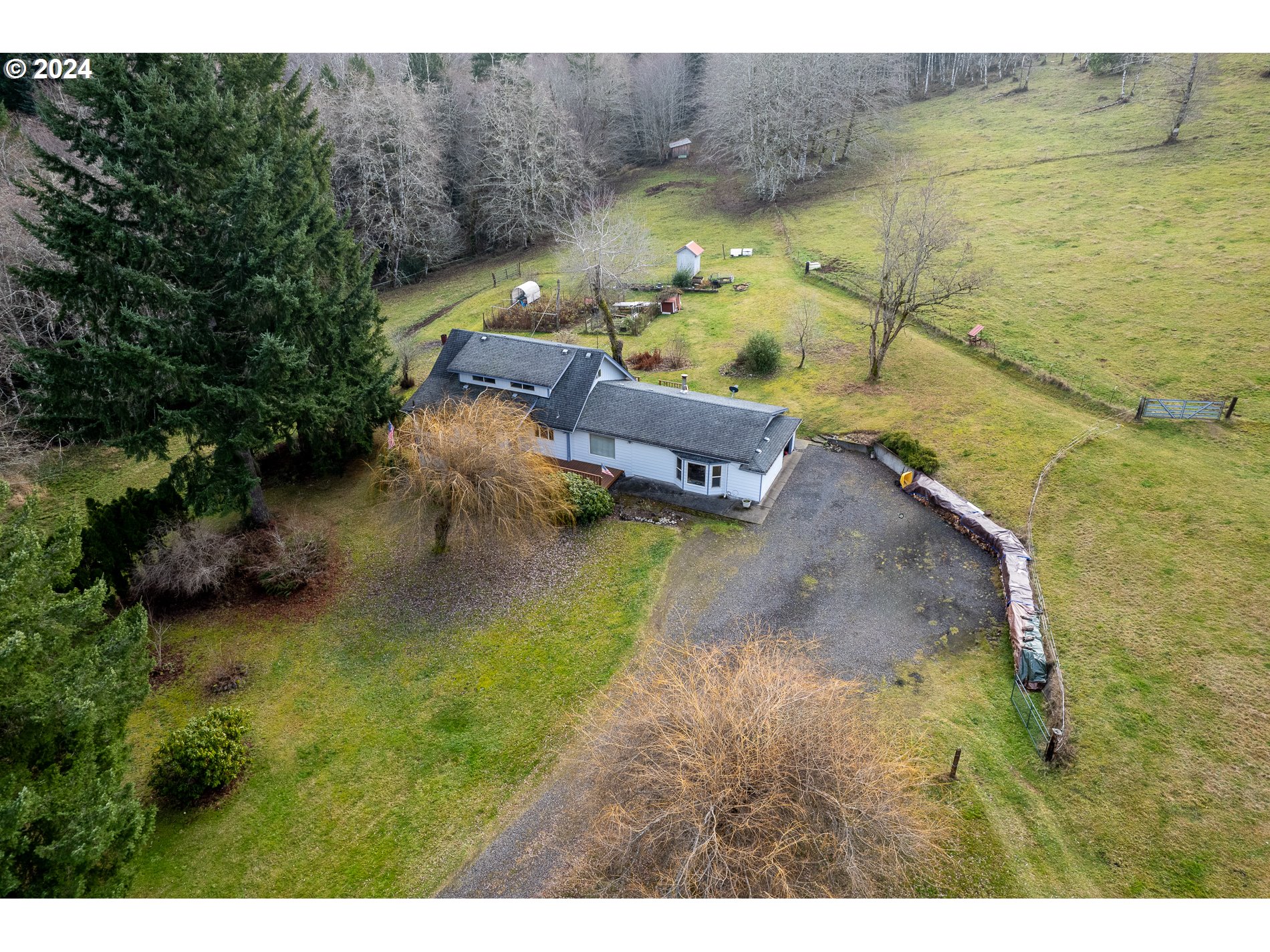 SHOP for the perfect acreage property. Shop is over 3,840 sqft with a thick concrete pad built for heavy duty equipment, plus a tack room & stalls for horses or livestock. Property has marketable timber and can be partitioned or have a lot line adjustment for an additional building site per zoning minimum use requirements. The beautiful rolling hillside property spans over 12 acres and includes a large pond, fenced for cattle or horses. The homestead site is landscaped with fruit trees & berry bushes (Plum, pears, cherries, apples, raspberries, blueberries & more). The farm house has an open concept with an updated kitchen and island overlooking the sunken family room formal living room and office, which features vaulted ceilings and a perfectly placed wood stove that warms the living space. There are 3 bedrooms upstairs for the kiddos or 2 more bedrooms downstairs with a separate entrance & possible ADU or mother-in-law suite. Big Laundry room downstairs offers plenty of room, space & additional storage. See private remarks for more information.