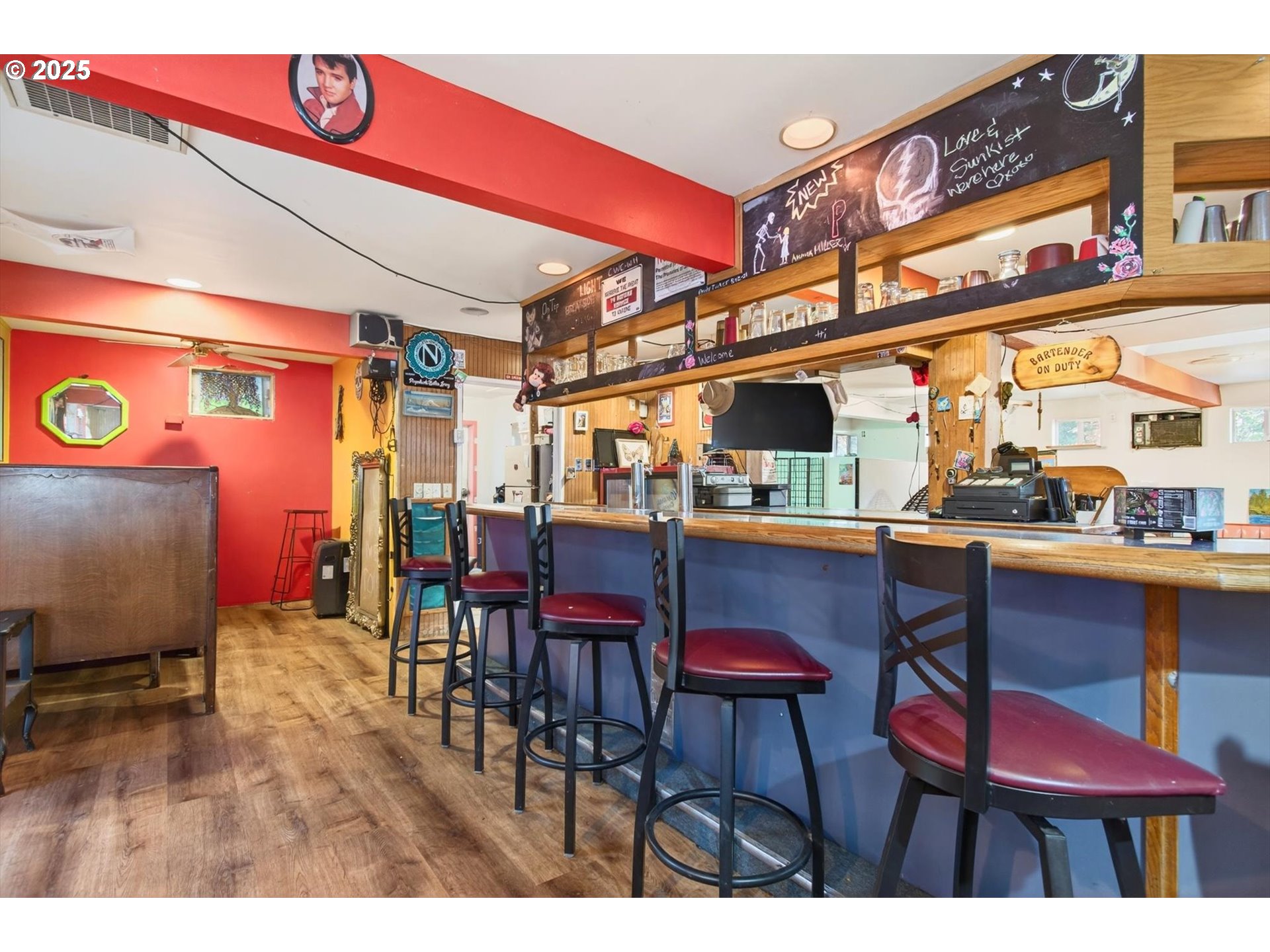 Unlock the potential of this rare 2.16-acre live-work property in Scappoose! Perfectly positioned on a high-traffic route, this offering includes a two-story home and a fully equipped former restaurant/bar—ready for your next big business idea. The commercial building (approx. 3,562 sq. ft.) delivers major value: huge dining area, full bar, dance floor, full kitchen, two newer walk-in coolers, newer two-sided cooler, outdoor seating, tons of parking, and updated HVAC. Bring your vision — taphouse, café, event venue, market, or something entirely new. This home (approx. 1,896 sq. ft.) gives you space to live comfortably on-site: two nonconforming bedrooms, two baths, large family room, pantry kitchen, walk-in closet, bonus room with wet bar, and a view deck. Plus: carport, fenced yard, patio, storage shed, four detached garages, RV carport, and a bonus vacant lot. A standout opportunity to build, create, and live—all on one property. Check out MLS# 382053359 for more information on the house. Seller Carry Option is available with 25% down with a 5% interest rate.