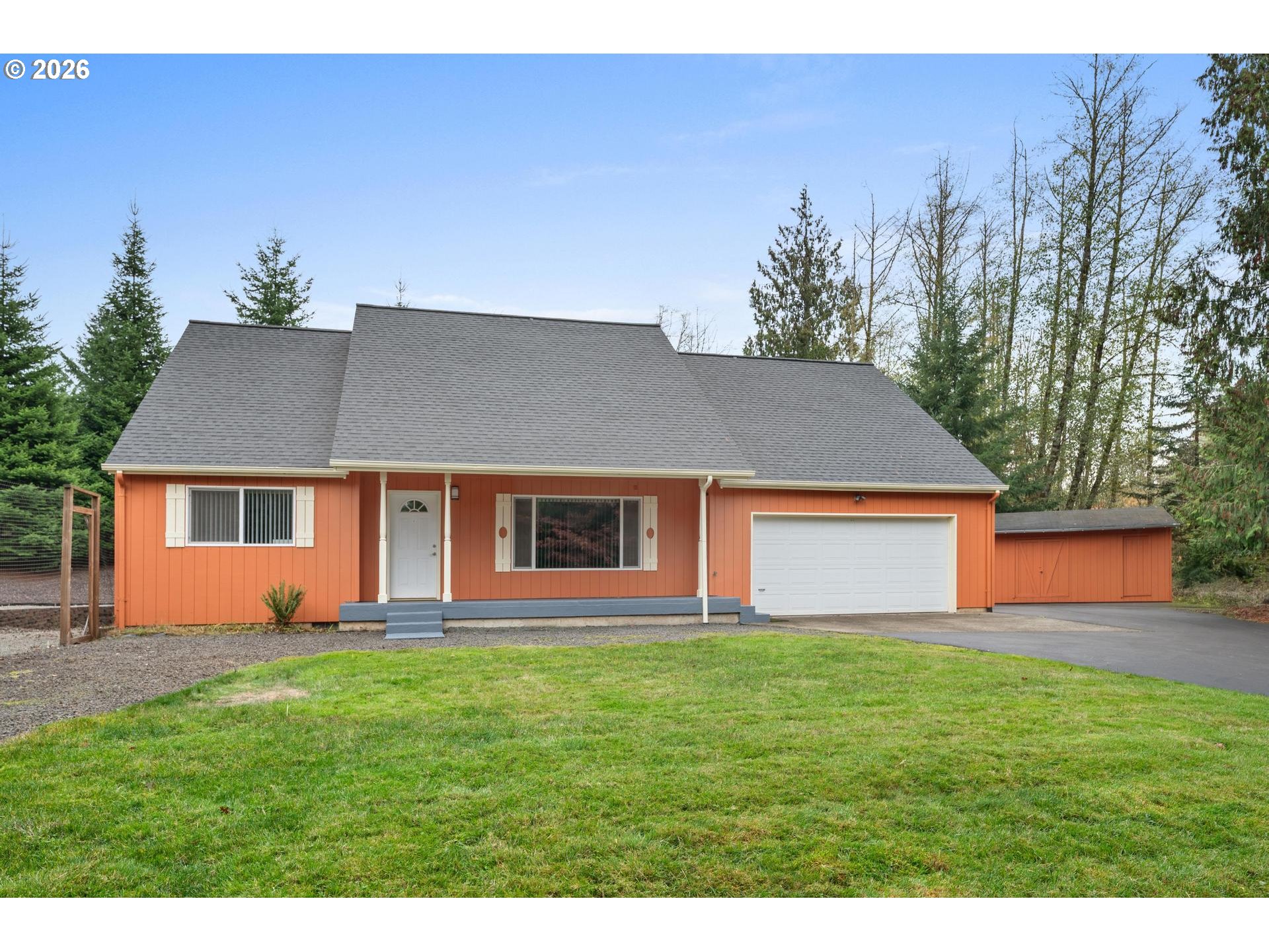 Congratulations! You have found your country oasis! This well cared for, single owner home is waiting for you. Sitting on just over 2 private acres, you will enjoy your space and become well acquainted with the family of deer that are almost always around. (Your raised bed garden space is fully fenced, though, to deter those cuties from eating your produce.) Enjoy the serenity of your property relaxing on your covered front porch, or zen out in the xeriscape back yard space. Too cold to be outside? Inside you will find a comfy and functional home, ready to wrap you up. The spacious living room dons a large picture window, keeping you connected to the outdoors while staying warm and dry. The kitchen... oh my! Have you ever wished for more storage space? You won't need to do that here! Storage is the name of the game, hidden behind beautiful hand crafted Hickory wood cabinetry that lines the entire length of the kitchen. Additionally, you'll love the tuck away space for your hot cocoa or espresso bar; out when you need it, out of the way when you don't! And in case the wall of storage wasn't enough, the large pantry is just the cherry on top. On the main level, you'll also find full bath number one, two good sized bedrooms, hallway laundry space and, yes, more storage. Upstairs you have full bath number two that features a skylight (new in 2026), and two more oversized bedrooms (12'X20'). What you won't find in this home and on this property is a lack of space. That theme continues into the extra deep 2 car garage as well. Oh and don't forget the tool shed. One half is insulated, good for hobbying and dry storage. The other side is ideal for storing your outdoor equipment. Wondering about where to park? Your driveway has ample space for all your toys and was just seal coated in 2025. Topping you off (literally) is a brand new roof, installed in the summer of 2025. So what are you waiting for? Make it yours today!