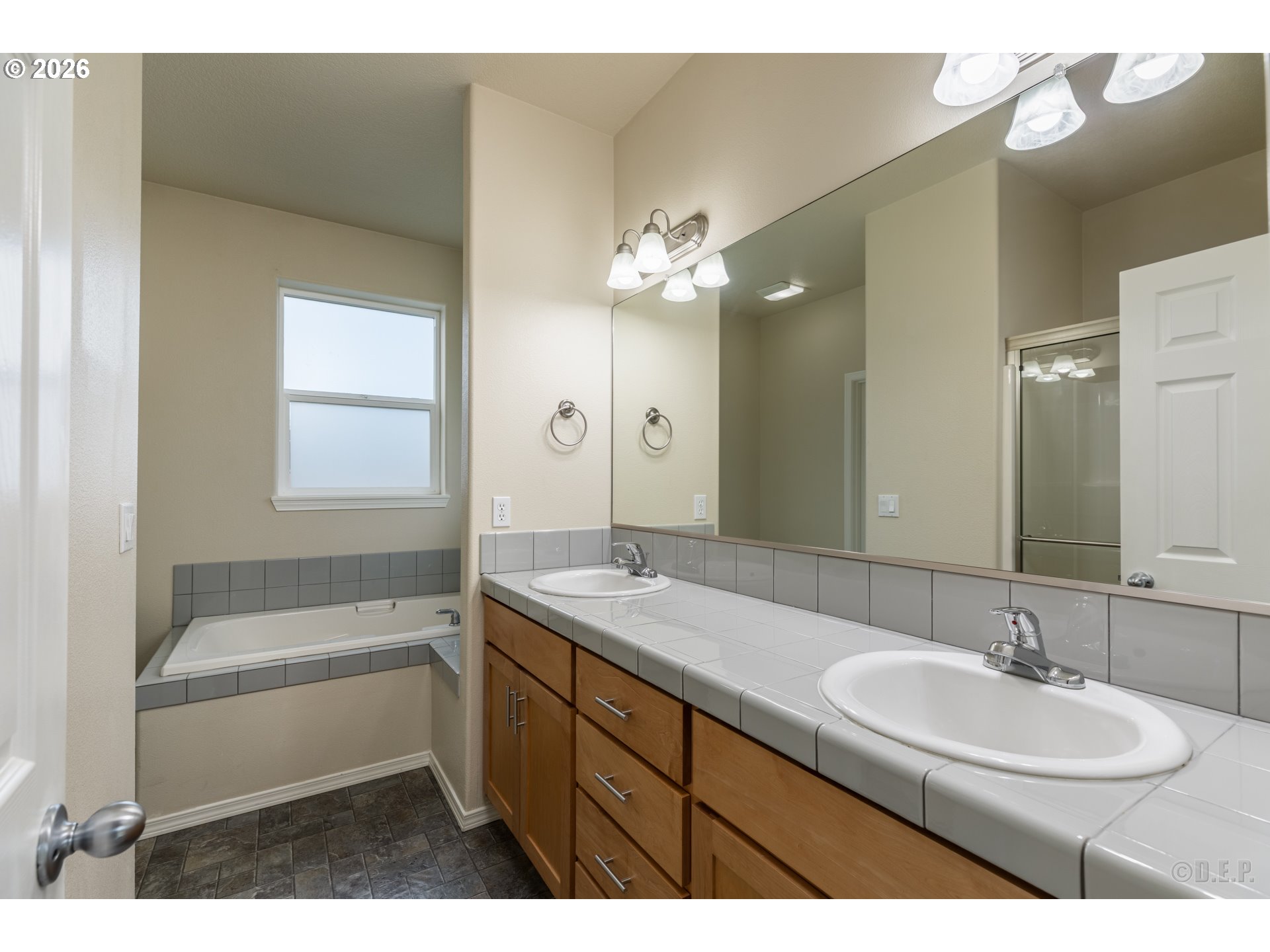 Welcome home to this beautifully updated 4-bedroom, 2-bath gem in the highly desirable Clatskanie Woods community! Step inside to discover brand new laminate flooring throughout the living/dining rooms with gas fireplace, and spacious kitchen with ample storage, perfect for entertaining. The hallway leads to a peaceful primary suite boasting an ensuite bathroom with a spa like soaking tub, stand up shower, double sinks, huge walk in closet and private access to the backyard. With your comfort a top consideration the home has both air conditioning and a whole house fan. Enjoy outdoor living in the fully fenced backyard, which opens directly to the community greenspace — complete with a peaceful walking trail and fruit trees right outside your gate. It’s like having your own park just steps away! Don't miss the 3 car garage with new exterior and interior lighting. The tidy attic adds additional storage. From the curb appeal of the freshly painted exterior with retouched landscaping to the updated interior and through to the backyard with two patios, this one is a must see! Ready to move in with HVAC, water heater and fireplace already serviced, roof and gutters with "Gutter Shutter" leaf guard system and windows cleaned, all this home is missing is you! Amenity list is available, just ask your agent, and book your tour today!