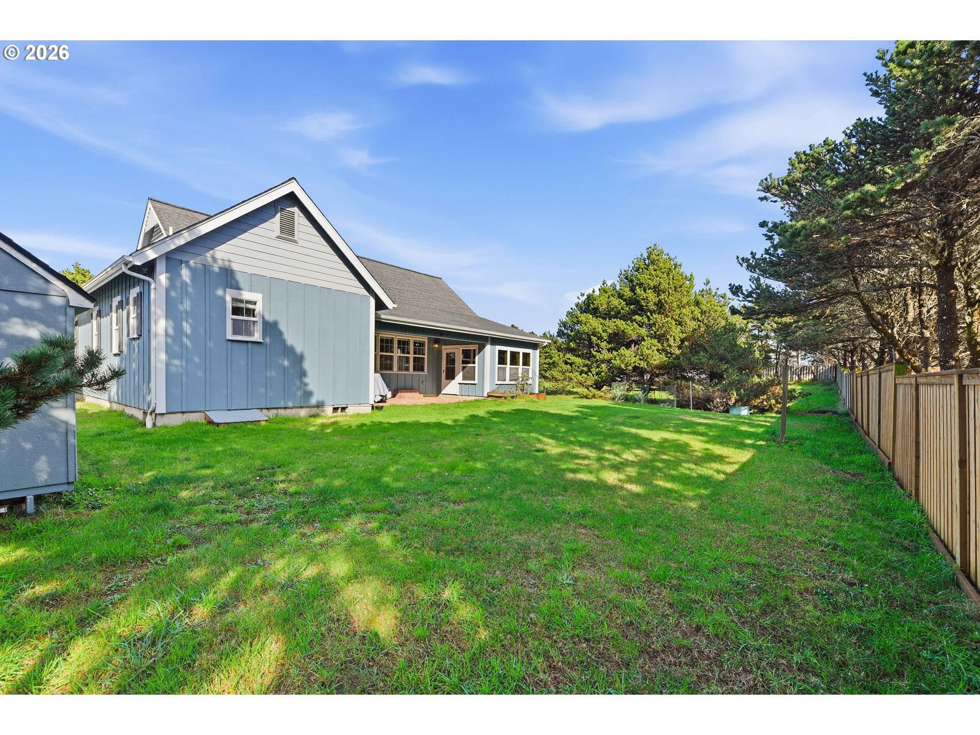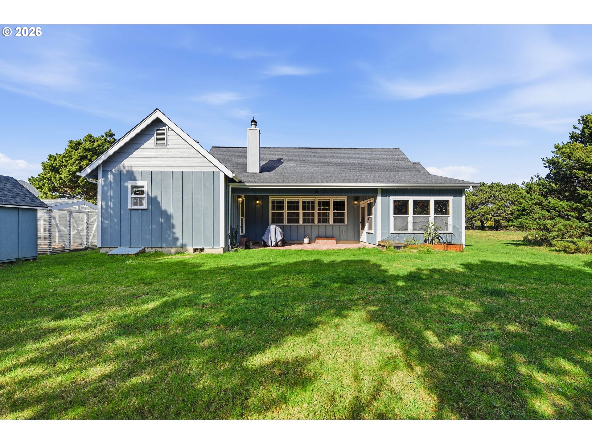A standout custom-built, single-level Craftsman in Bandon, Oregon, just one block from the beach and close to Face Rock and Coquille Point. A nearby beach access path with no stairs makes getting to the sand quick and easy.This is a high-quality built home with thoughtful design and great flow, including extra-wide hallways, high and vaulted ceilings, and a layout that keeps the main living space nicely separated from the entry and bedroom wing. Off the entry, French sliding doors open to the living room, creating a welcoming transition and added privacy.The home offers 3 bedrooms, 2 bathrooms, and 2,259 sq ft with hardwood floors through the main living areas and hallways, carpeted bedrooms, and tile in the bathrooms and laundry. The living room is warm and inviting with a pellet stove insert and a row of windows looking out to the backyard and covered patio.The kitchen is a true highlight—attractive, well-finished, and designed with custom cabinetry, stainless steel appliances, a propane cooktop, center island, and a walk-in pantry. Just off the kitchen are additional built-in cabinets with shelving, ideal for cookbooks, serving pieces, or extra pantry storage. A bright sunroom adds flexible space for an office, studio, or quiet sitting room.You’ll also appreciate the huge laundry room with cabinet storage. Outside, enjoy a covered front porch, a covered back patio with propane grill hookup, a well-kept lawn with sprinkler system, plus a greenhouse and a gardening shed—perfect for tools and supplies. The exterior was painted within the last three years. Great beach-town location with an easy drive to Bandon Dunes Golf Resort on the Southern Oregon Coast.