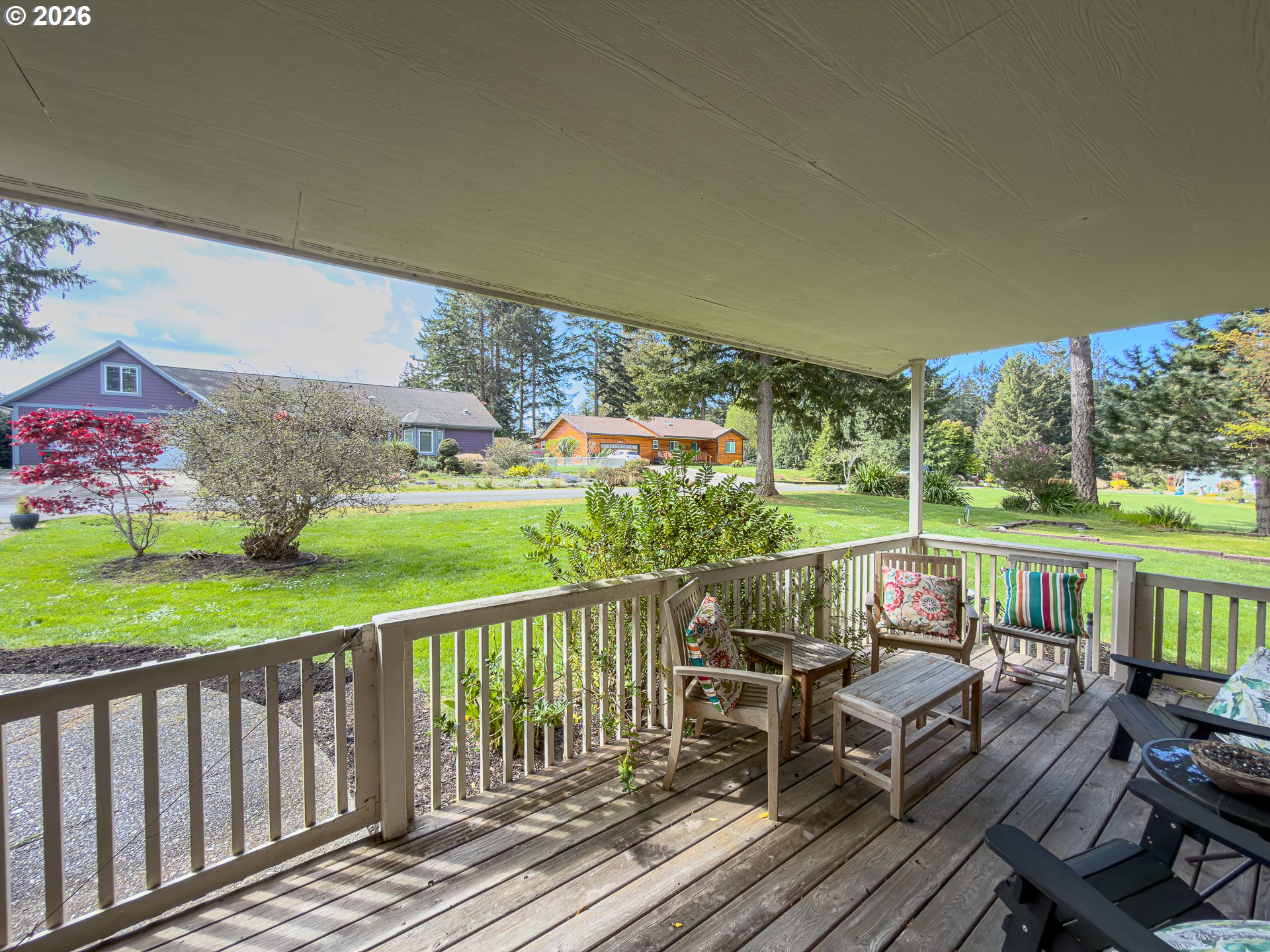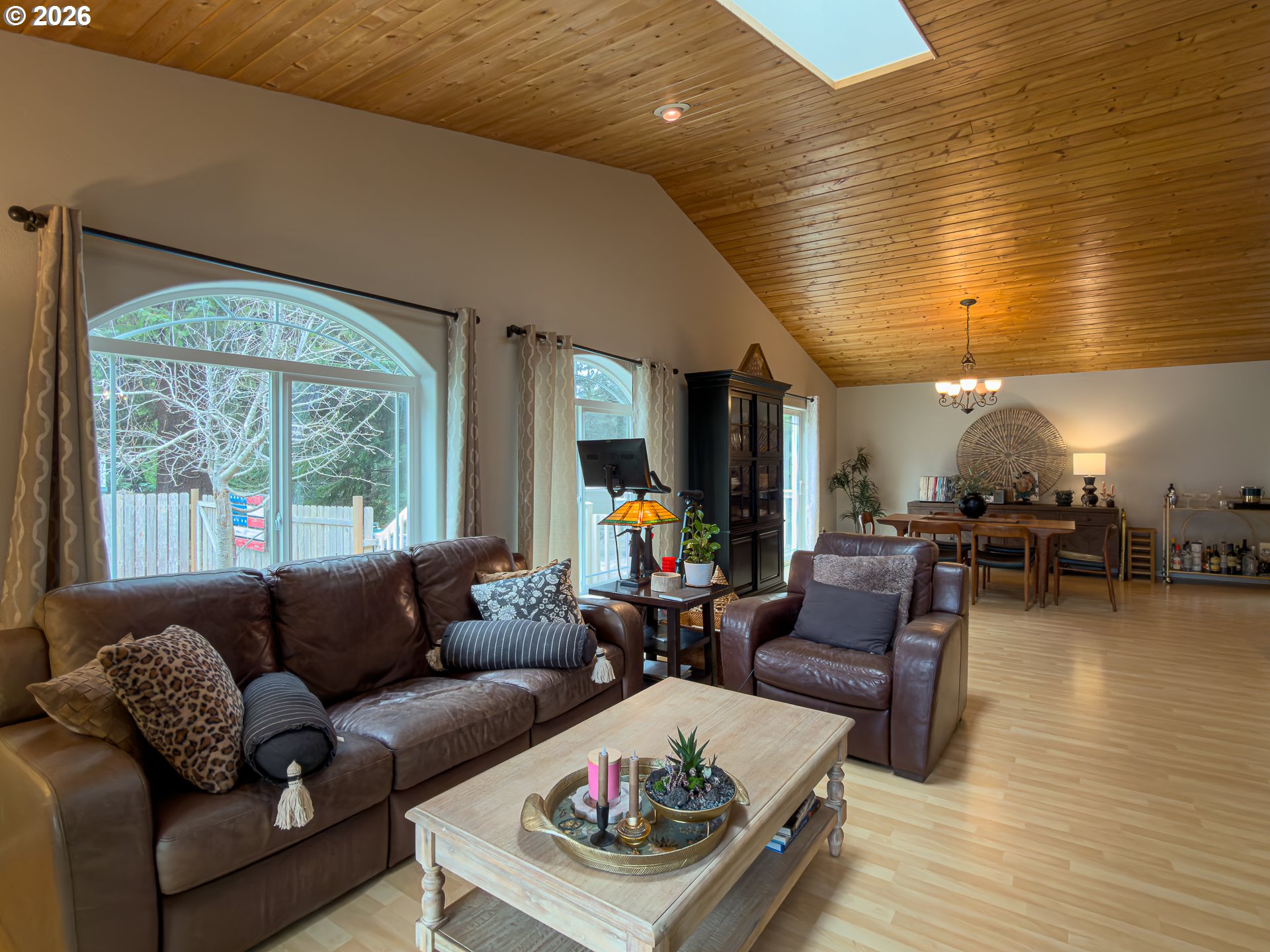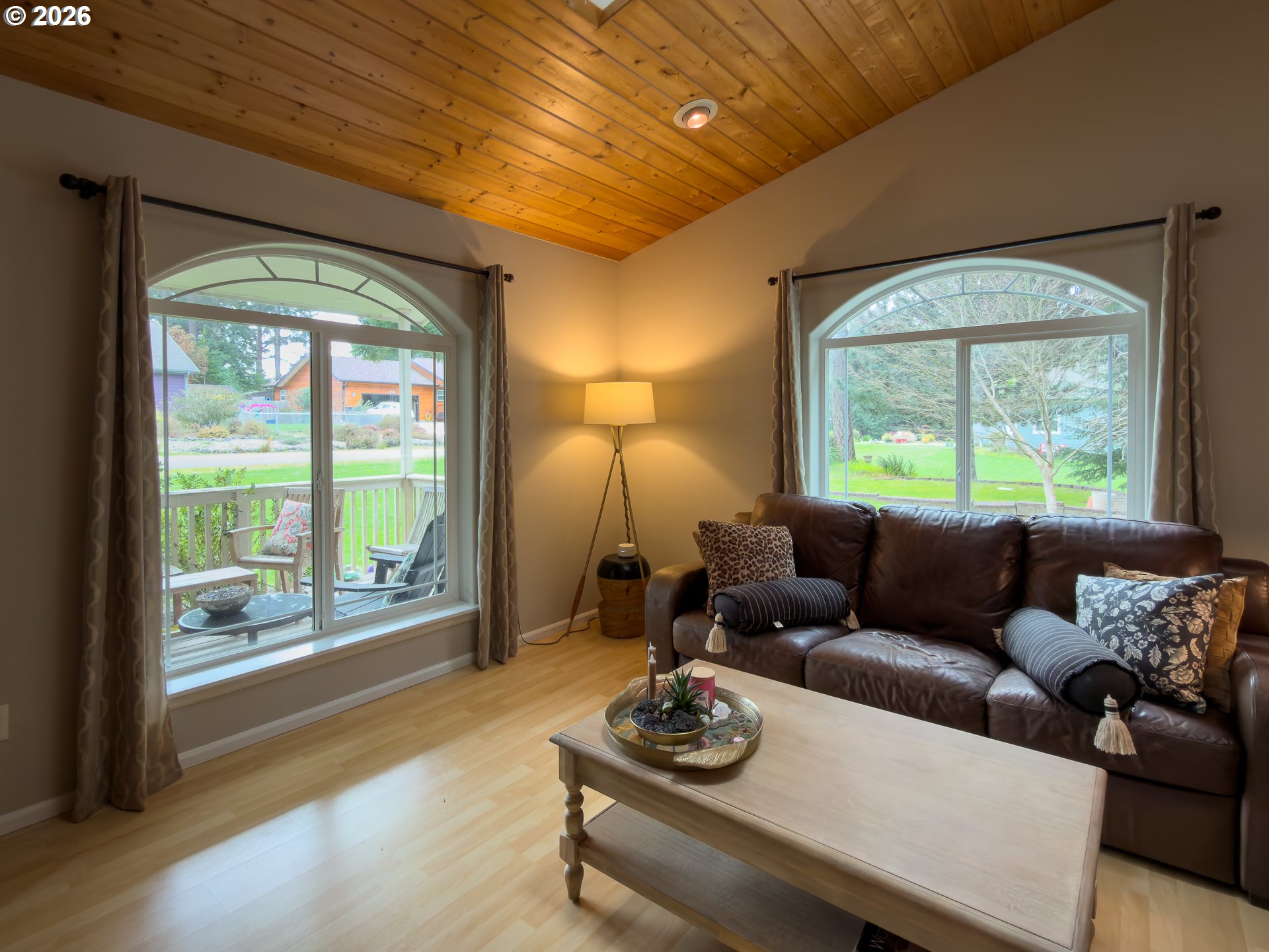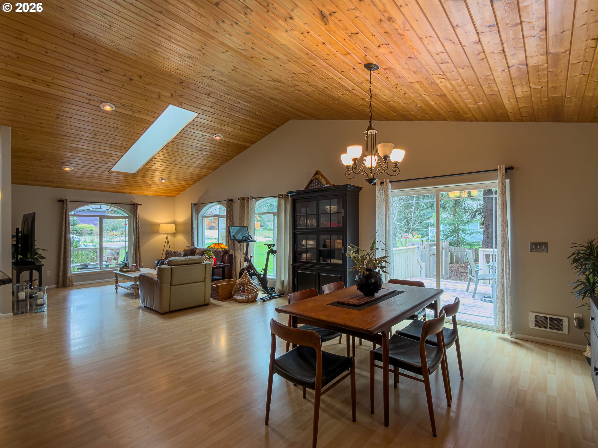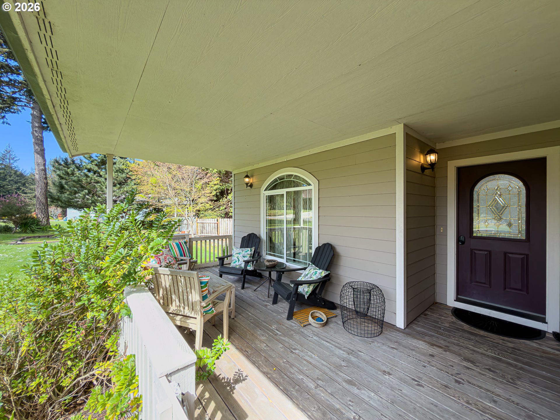 Located at 1185 11th St SE in Bandon, Oregon, this custom single-level home offers comfortable living in a desirable East Bandon neighborhood known for newer custom homes and its sheltered setting out of the coastal wind. Situated on a generous 0.27-acre lot, the property features a sprawling yard with mature landscaping ideal for outdoor enjoyment and gardening. A welcoming covered front porch invites you into this home comprised of three bedrooms and two bathrooms, with an open-concept living and dining area enhanced by abundant natural light exuding from skylights and large picture windows. Warm interior finishes, including knotty pine tongue-and-groove vaulted ceilings and laminate wood flooring, create an inviting atmosphere throughout. The kitchen is thoughtfully designed for both everyday use and entertaining, featuring under-lit oak cabinetry, a central island with cooktop and downdraft. The primary suite offers a walk-in closet and a private ensuite bath. A sliding glass door off the dining area leads to a deck with warm southern exposure and a peaceful, treed backdrop. The backyard blends with nature and includes a practical tool shed for storage and other uses. This well-located property combines functionality, comfort, and a setting that makes the most of Bandon’s coastal lifestyle. Be sure to watch the video tour!