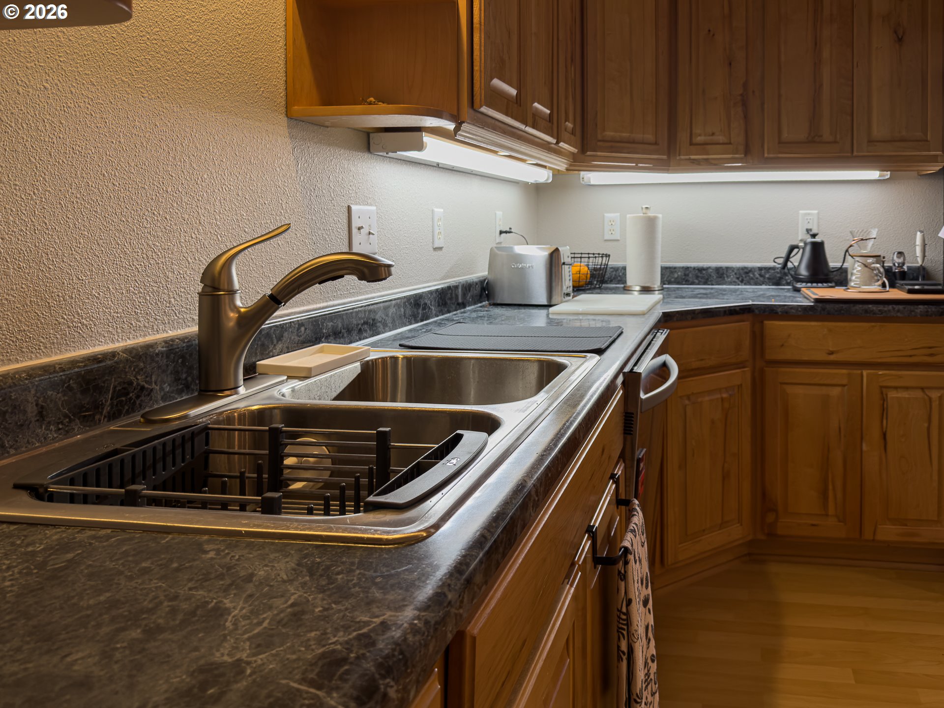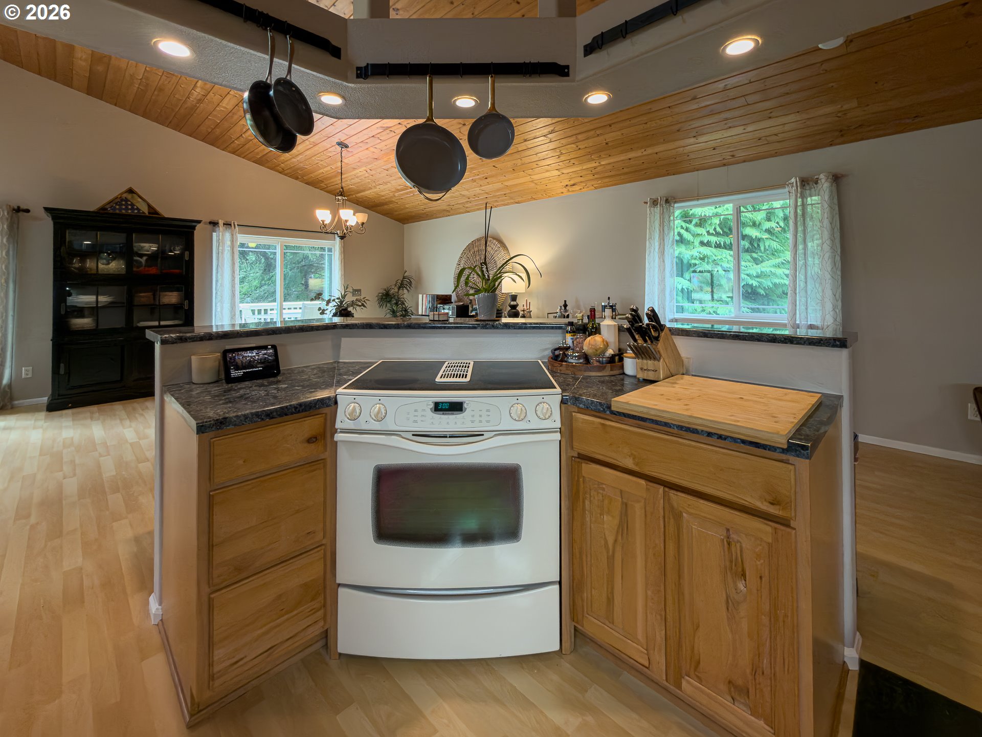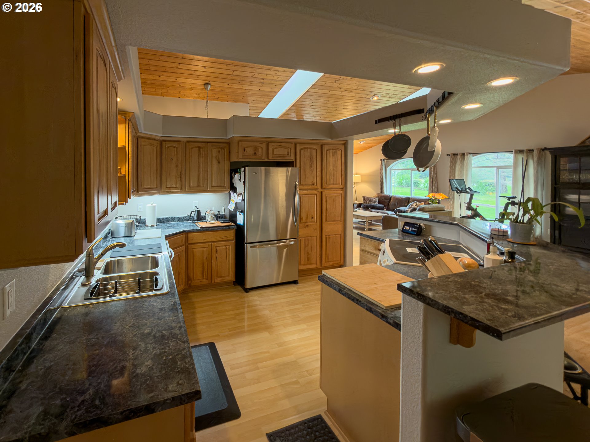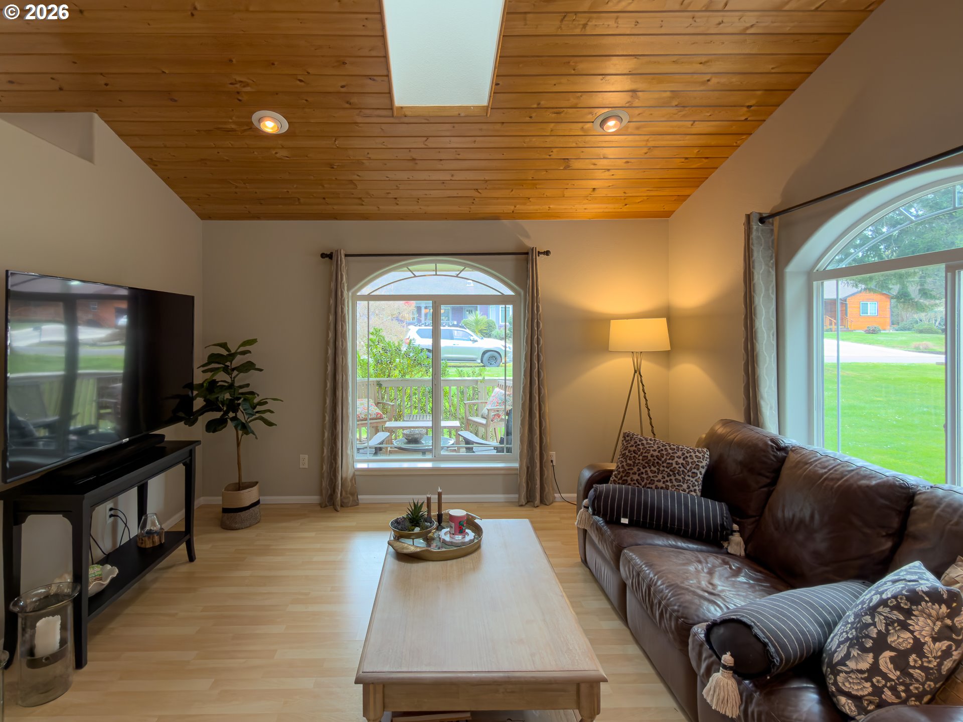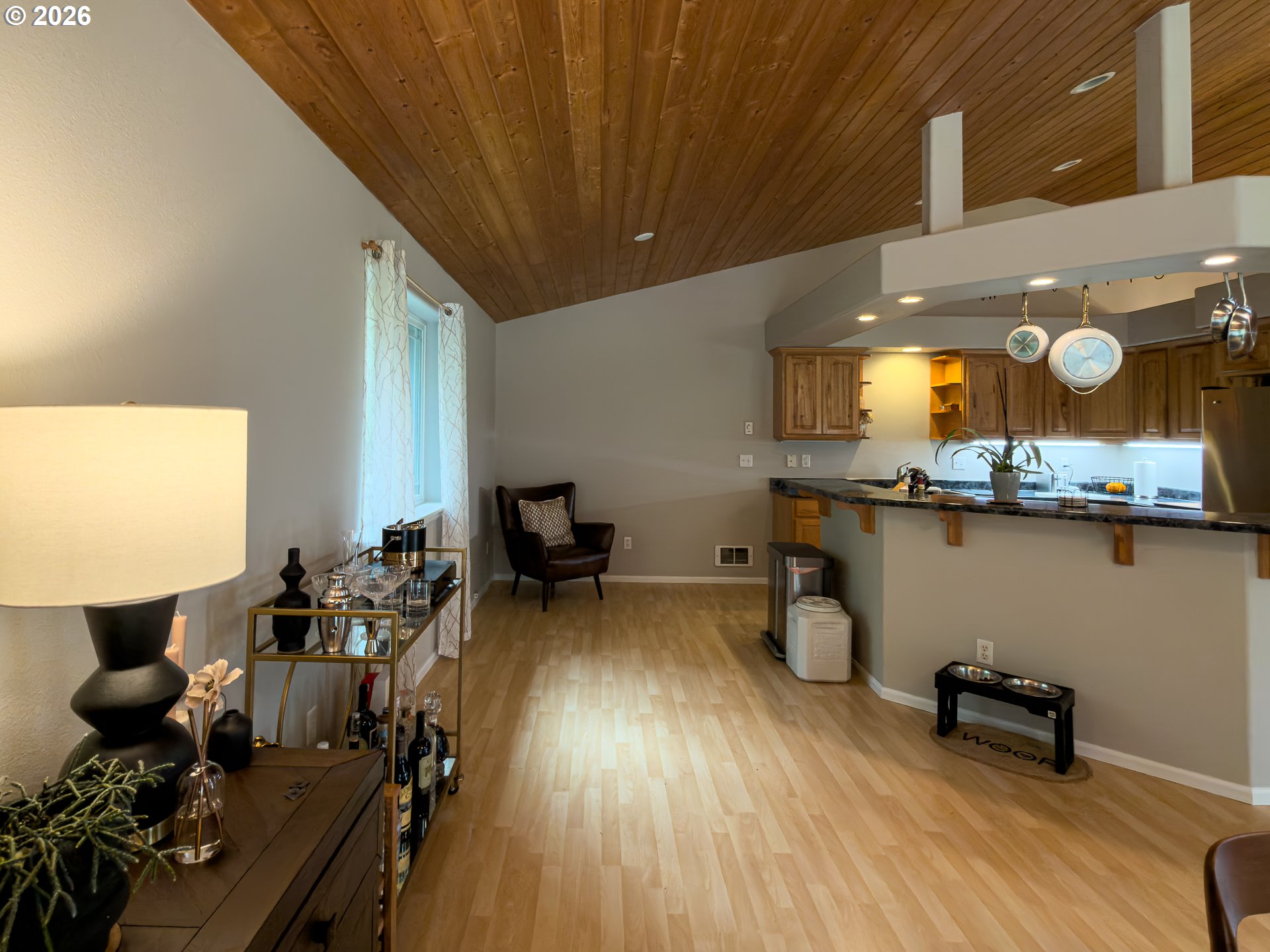 Located at 1185 11th St SE in Bandon, Oregon, this custom single-level home offers comfortable living in a desirable East Bandon neighborhood known for newer custom homes and its sheltered setting out of the coastal wind. Situated on a generous 0.27-acre lot, the property features a sprawling yard with mature landscaping ideal for outdoor enjoyment and gardening. A welcoming covered front porch invites you into this home comprised of three bedrooms and two bathrooms, with an open-concept living and dining area enhanced by abundant natural light exuding from skylights and large picture windows. Warm interior finishes, including knotty pine tongue-and-groove vaulted ceilings and laminate wood flooring, create an inviting atmosphere throughout. The kitchen is thoughtfully designed for both everyday use and entertaining, featuring under-lit oak cabinetry, a central island with cooktop and downdraft. The primary suite offers a walk-in closet and a private ensuite bath. A sliding glass door off the dining area leads to a deck with warm southern exposure and a peaceful, treed backdrop. The backyard blends with nature and includes a practical tool shed for storage and other uses. This well-located property combines functionality, comfort, and a setting that makes the most of Bandon’s coastal lifestyle. Be sure to watch the video tour!