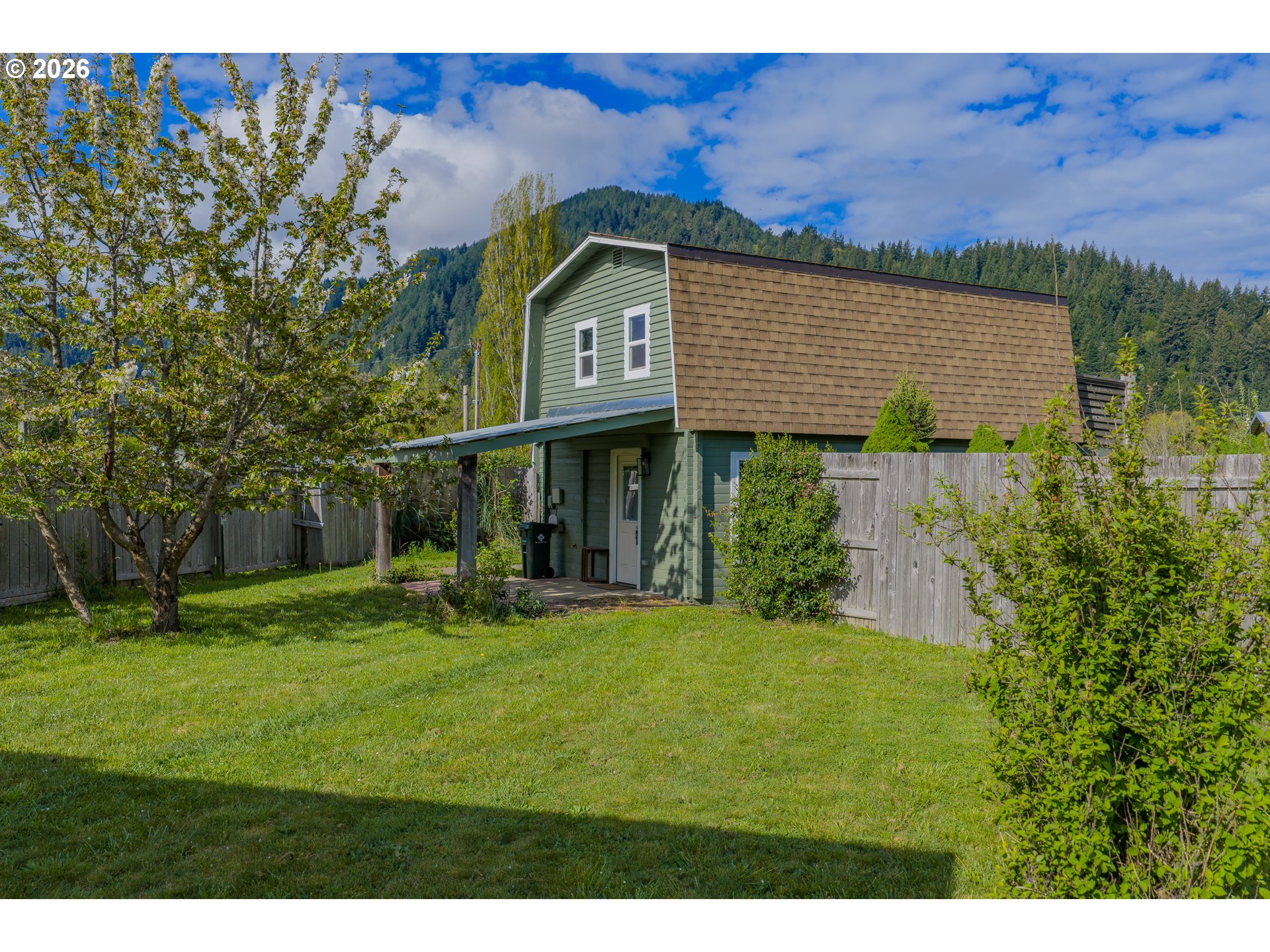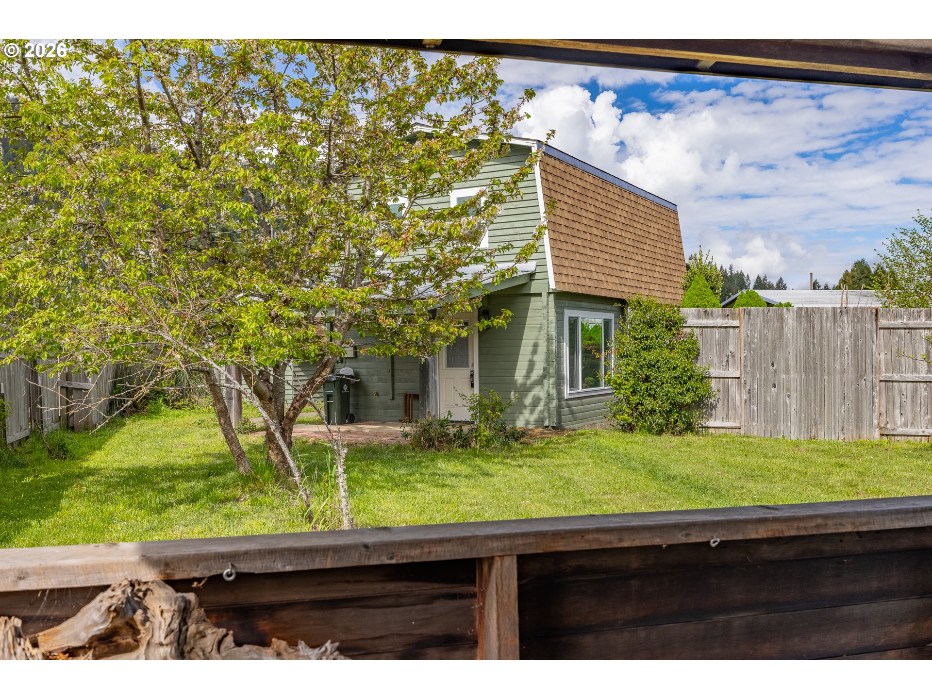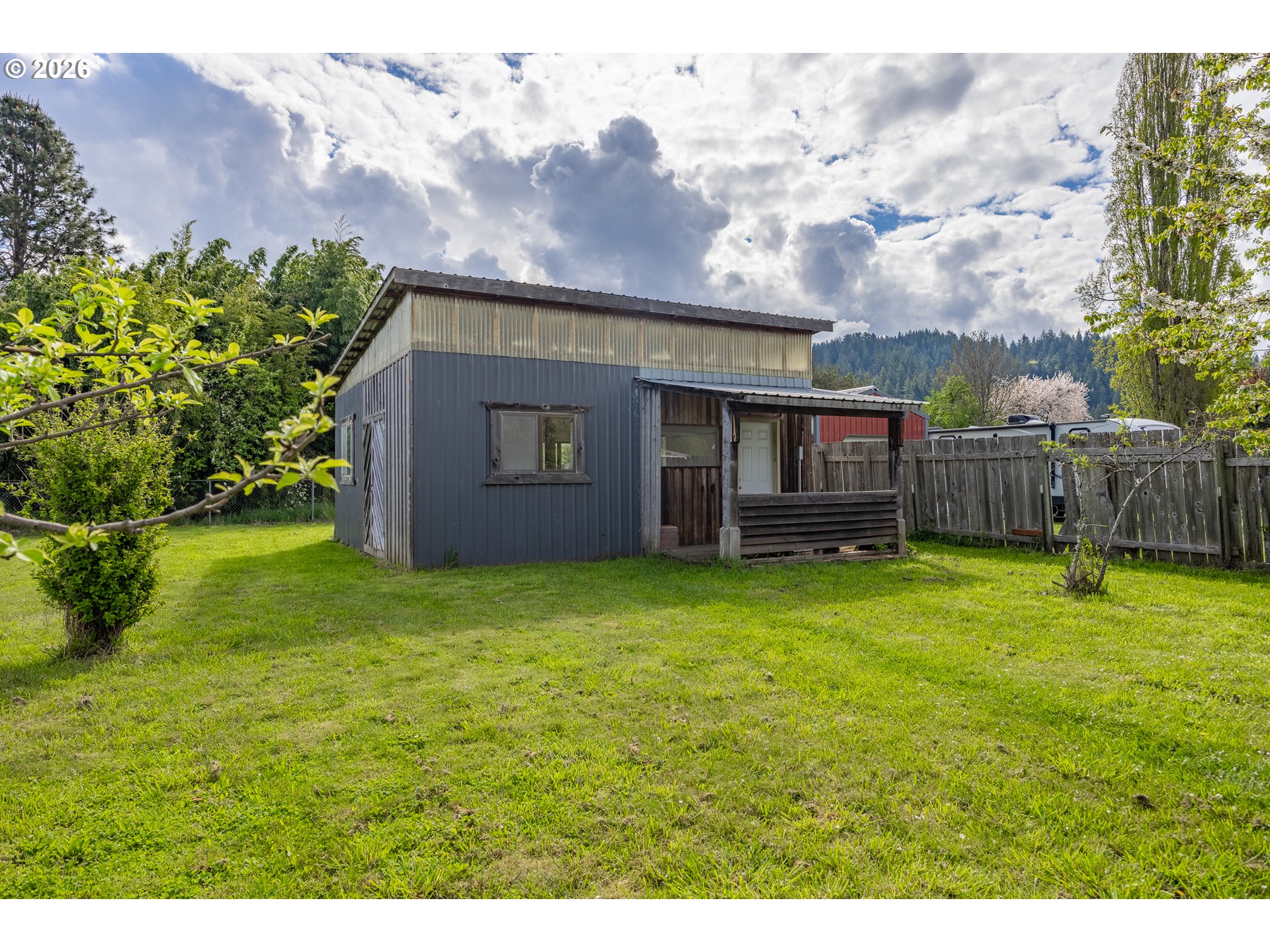 LOG CABIN in Powers Oregon! Move in ready, 1 bedroom, 1 bath, 800 sf cabin. Great views from the loft bedroom and deck. Nicely updated, laminate flooring, vinyl windows, walk in shower,updated functional kitchen, carport with circular drive. Large shop plus a seperate utility building which includes washer & dryer +storage. RV "farm gate" & parking. Fenced in great neighborhood.