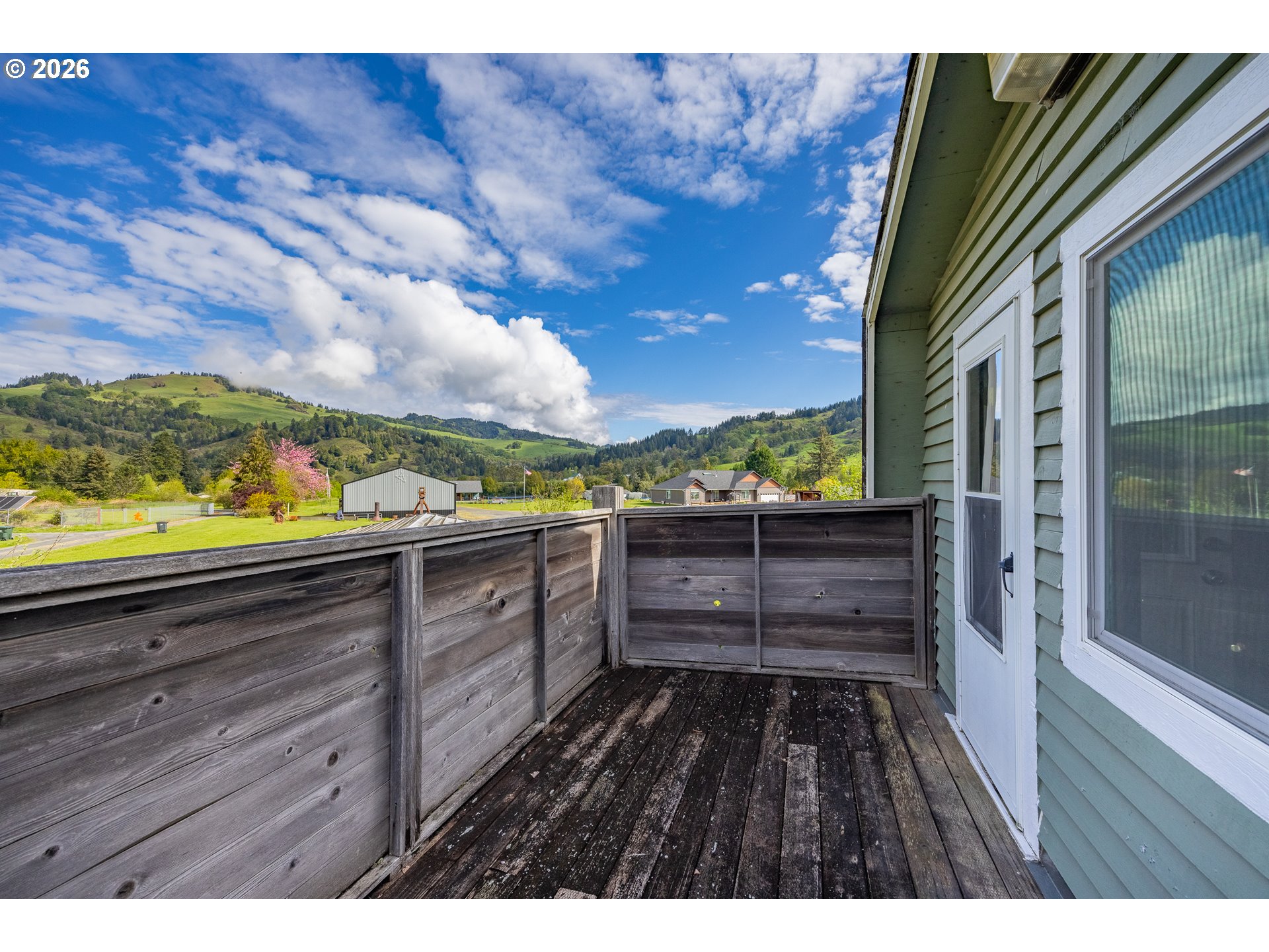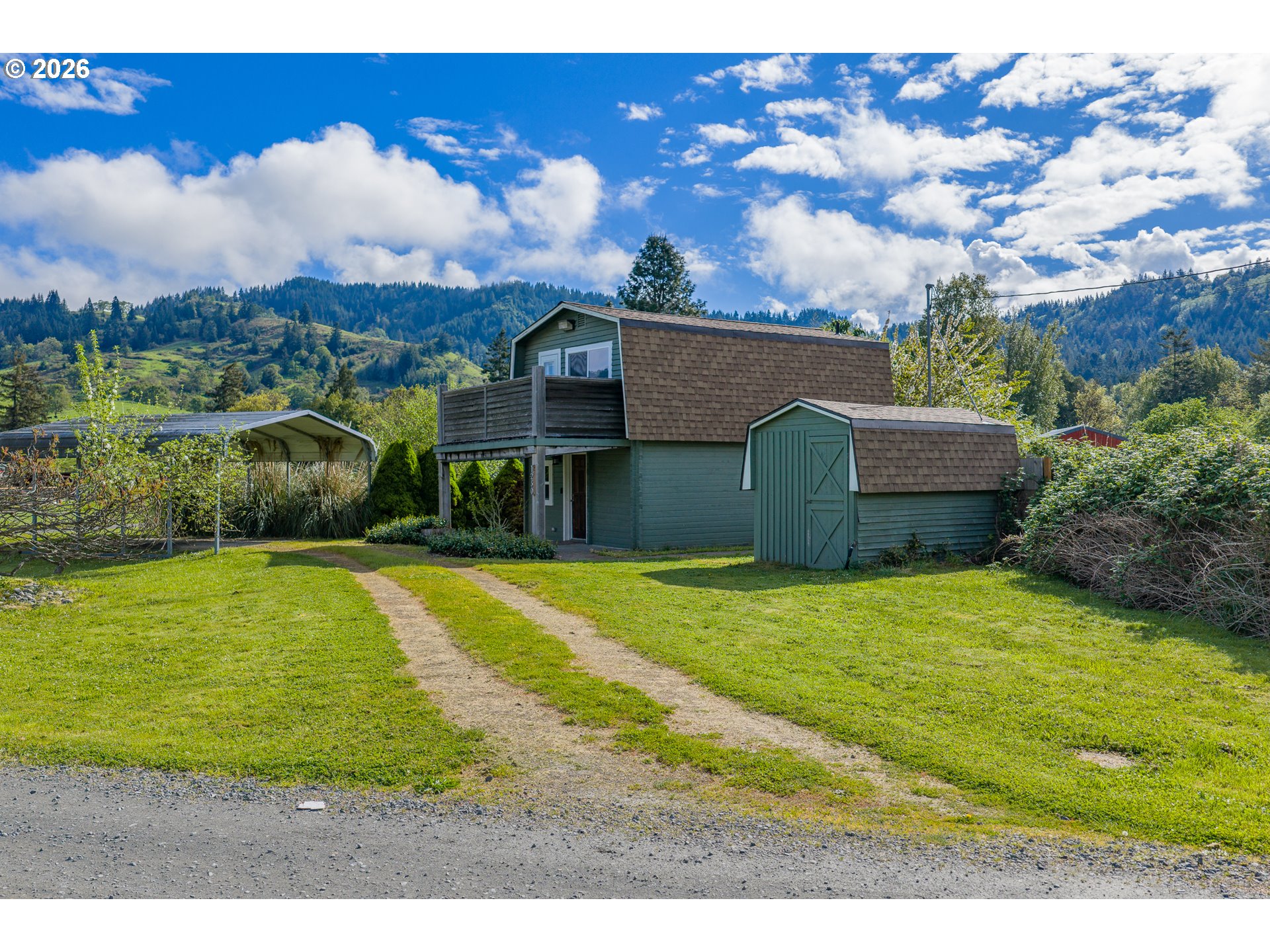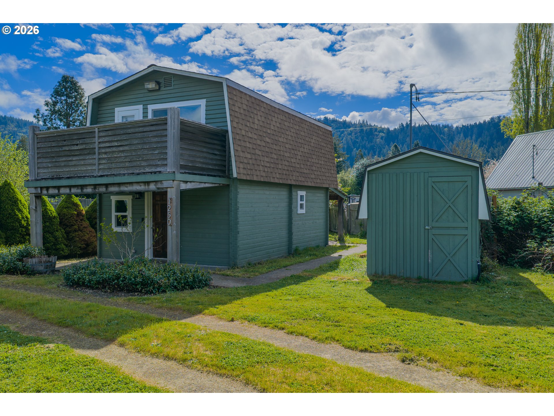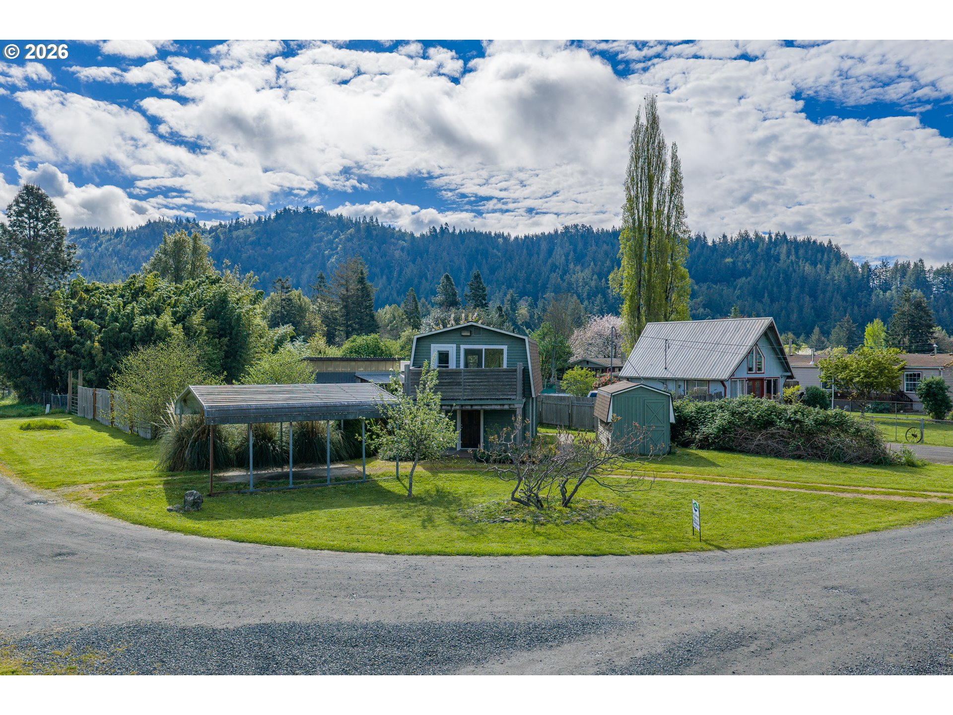 LOG CABIN in Powers Oregon! Move in ready, 1 bedroom, 1 bath, 800 sf cabin. Great views from the loft bedroom and deck. Nicely updated, laminate flooring, vinyl windows, walk in shower,updated functional kitchen, carport with circular drive. Large shop plus a seperate utility building which includes washer & dryer +storage. RV "farm gate" & parking. Fenced in great neighborhood.