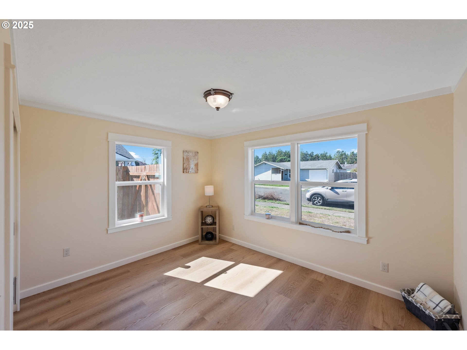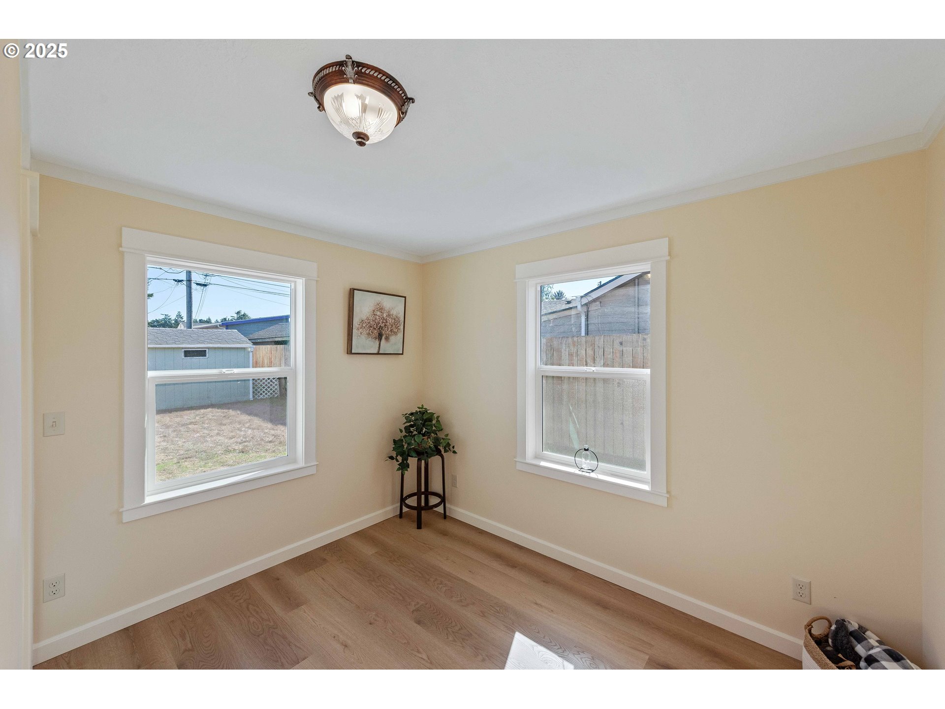 Adorable Remodeled Cottage in Desirable North Bend Neighborhood, offers a perfect blend of character and modern updates. This home sits on an extra-large, fully fenced lot, ideal for pets, gardening, and entertaining.Step inside to a freshly painted interior with an inviting open layout that feels both spacious and warm. The home features two bedrooms and one beautifully updated bathroom, along with a bright, functional living space filled with natural light. Easy-care laminate flooring runs throughout.The spacious kitchen opens to a cozy, covered sun porch, an ideal spot for morning coffee or year-round relaxation. You'll also love the bonus flex room, perfect for extra storage, a small home office, or hobby space, as well as a generously sized utility/laundry room for added convenience.Thoughtful upgrades include New windows, New siding, updated fixtures and trim, and a stylishly renovated bathroom. Outside, the backyard is your own private retreat with a fire pit, raised garden bed, and storage/tool shed.All this, just minutes from schools, shopping, and the stunning Oregon Coast Beaches!