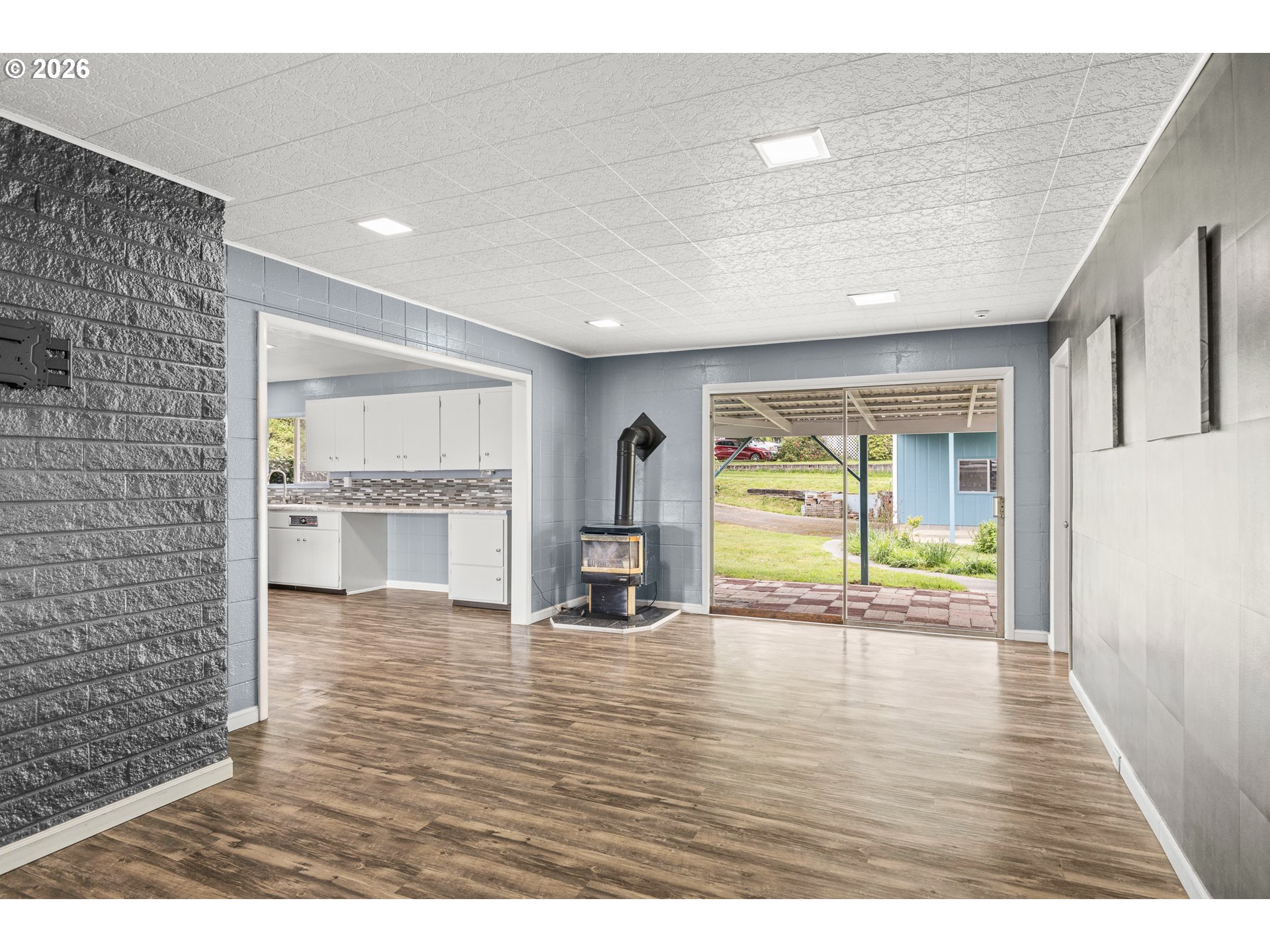 Set on a spacious .26-acre corner lot in a quiet neighborhood, this inviting 4-bedroom, 1.5-bath home offers 1,558 sq. ft. of thoughtfully designed living space with updates and character throughout. The primary bedroom features its own private half bath, while durable vinyl plank flooring flows seamlessly through the home, combining style with low-maintenance living. The kitchen is both functional and welcoming, complete with a gas range and vent hood, and positioned conveniently for everyday living and entertaining. Nearby, the family room serves as a comfortable gathering space, highlighted by a cozy gas heating stove that adds warmth and charm. Living room is light and bright a Fireplace, the mantle is beautiful, it is custom made from Pacific Yew Wood Slab. Additional interior features include central gas heat with forced air and electrical improvements, providing comfort and peace of mind. Step outside to enjoy the covered patio, perfect for relaxing or hosting in any season, all overlooking the expansive backyard with plenty of room for gardening, play, or future possibilities. The detached garage/workshop adds versatility for storage, hobbies, or projects, while the generous corner lot enhances privacy and curb appeal.