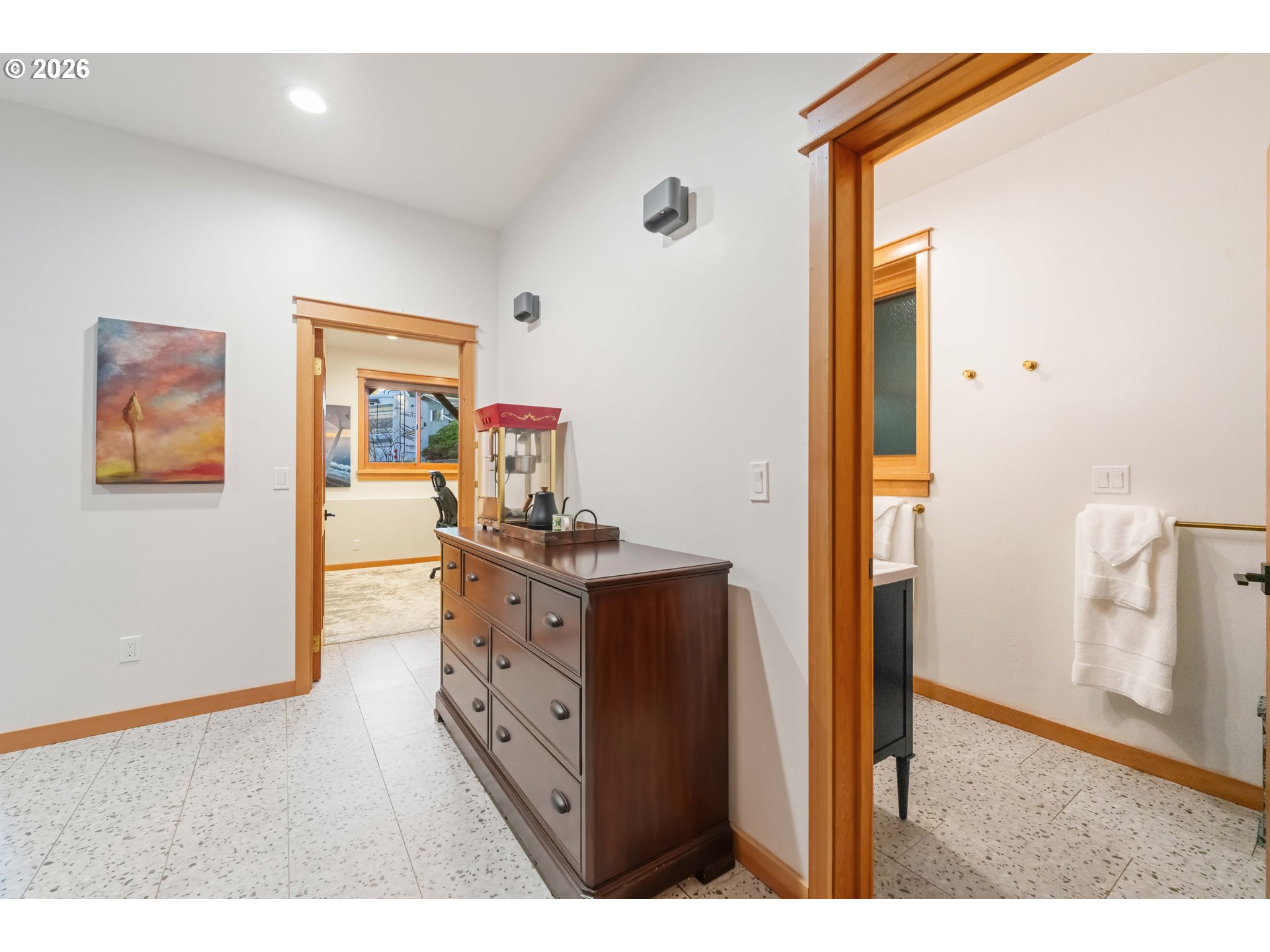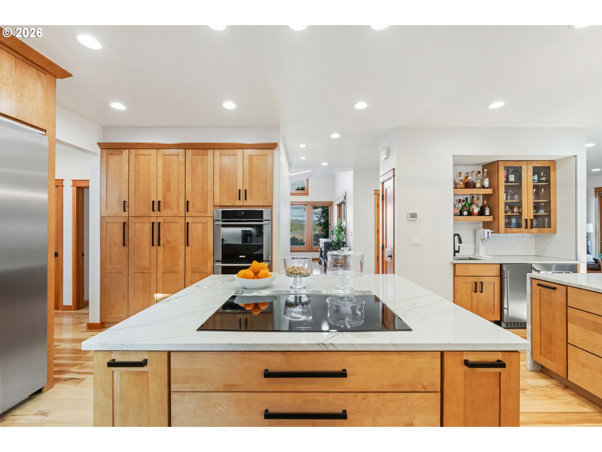This home lives large — and it does it with intention. Set on a rare 1/3-acre lot in the heart of town, this fully remodeled 5-bedroom, 4-bath home was beautifully refreshed in 2021/2022 with quality, comfort, and everyday function in mind. The result? A property that feels custom, cohesive, and completely move-in ready. The main level is bright and welcoming, anchored by a kitchen designed for real life and real entertaining. Induction cooktop, double ovens, a generous island, walk-in pantry, wet bar, breakfast bar seating, and beautifully crafted cabinetry create a space that performs as well as it presents. Hickory flooring adds warmth throughout, and natural light fills every corner. A main-level bedroom and full bath offer flexibility for guests or multi-generational living. Upstairs, the primary suite delivers a true retreat — walk-through closet, spa-inspired ensuite, heated tile floors, and a walk-in tile shower. Two additional bedrooms share a well-designed Jack-and-Jill bath, balancing privacy and practicality. The lower level expands the possibilities even further, featuring a fifth bedroom, full bathroom, home gym, media room, and a functional mudroom — ideal for busy households, hobbies, or hosting extended stays. Outside, the property stretches out in all the right ways. Expansive decking, a patio with outdoor fireplace, hot tub, and a sprawling yard collectively create an entertainer’s backdrop that’s hard to find. The triple attached garage completes the package with ample space for vehicles, storage, and toys. Located just minutes from shopping, dining, and schools, eight minutes to Bay Area Hospital, a few blocks from the Coast Guard station, and a short drive to the beaches and trails of the stunning Oregon Coast — this is space, style, and coastal convenience wrapped into one exceptional home - don't miss it! A must see!