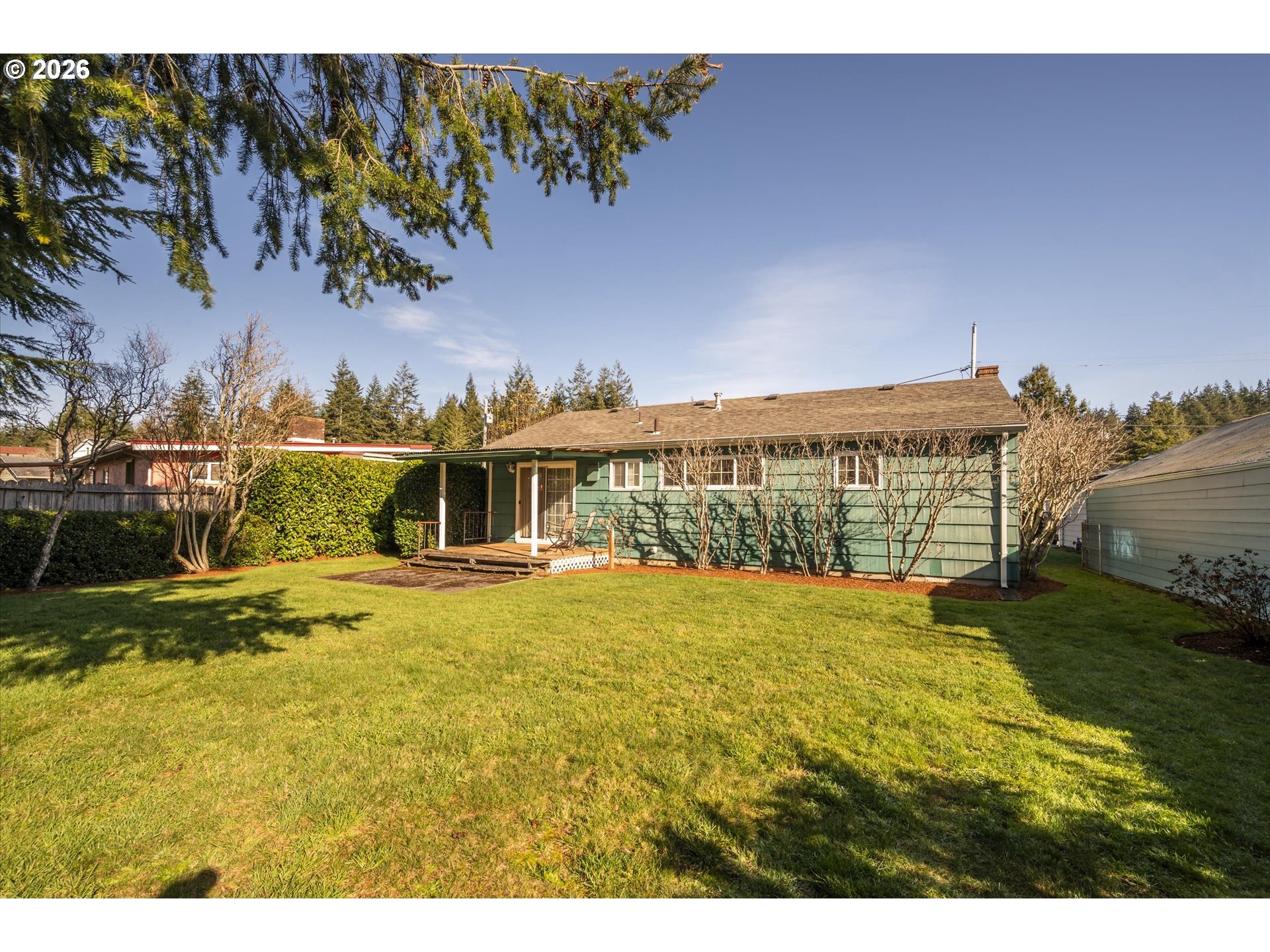 This is the kind of home that just feels good the moment you arrive. Set in an excellent neighborhood and only two blocks from medical facilities, it offers everyday convenience without sacrificing charm. Inside are two comfortable bedrooms plus an office, along with a soaking tub made for long exhale moments. Outside, the large lot delivers—big yards front and back, a covered deck for morning coffee or evening dinners, and a tool shed for projects and storage. Attached one-car garage. Simple, sweet, and easy to love.