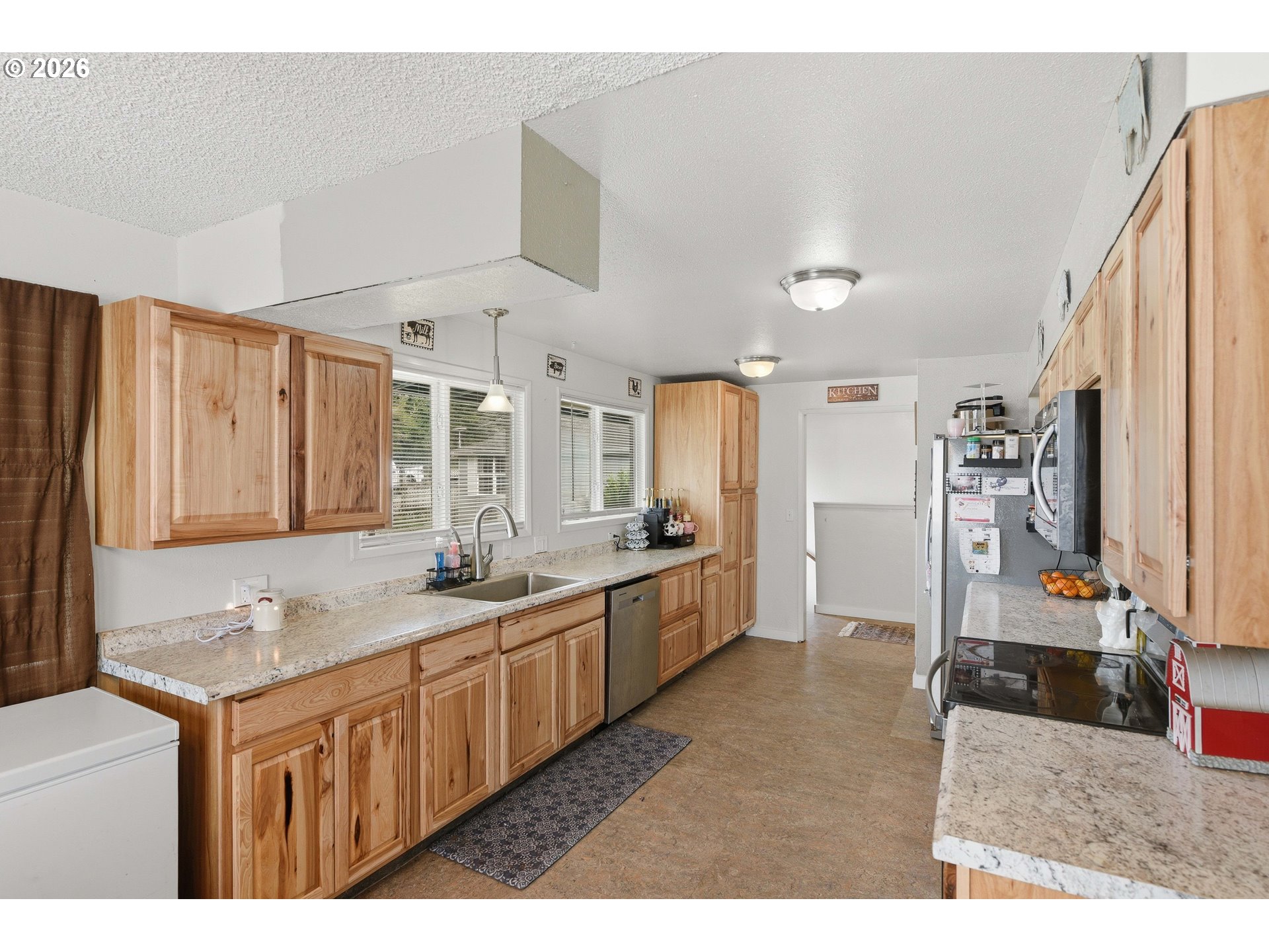 Step into comfort and convenience with this beautifully remodeled split-level home in the heart of North Bend. Designed for easy living, the main level features everything you need day-to-day, offering a functional and inviting layout that feels both spacious and welcoming. The completely updated kitchen shines with modern finishes, making it the perfect space for cooking, gathering, and entertaining. Fresh renovations throughout the home give it a clean, move-in ready feel, so you can settle in without the stress of updates or repairs. Downstairs, you’ll find a generously sized additional bedroom along with a large second living area complete with a cozy fireplace—ideal for guests, multi-generational living, or creating the perfect media or game room. This lower level also provides convenient access to the garage. Outside, enjoy a fully fenced yard with plenty of space for pets, play, or relaxing, along with a large garage that offers ample storage or workspace potential. Located in a desirable North Bend neighborhood, this home combines thoughtful updates, flexible living space, and a prime location close to everything the area has to offer.
