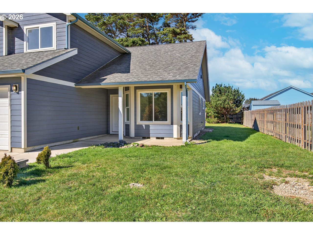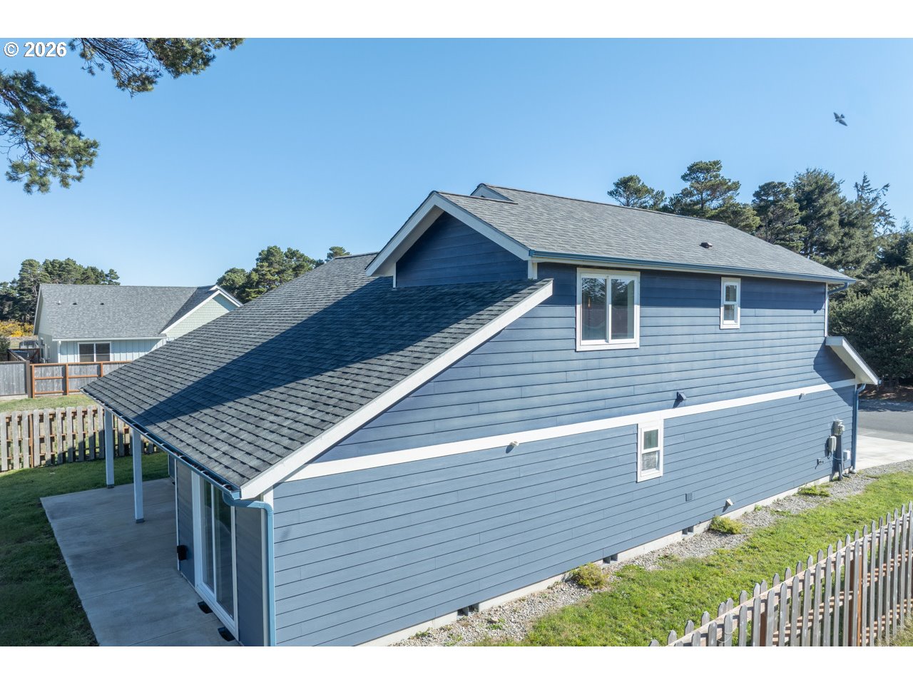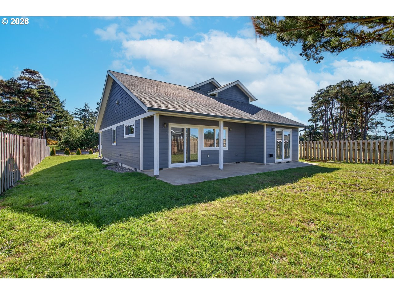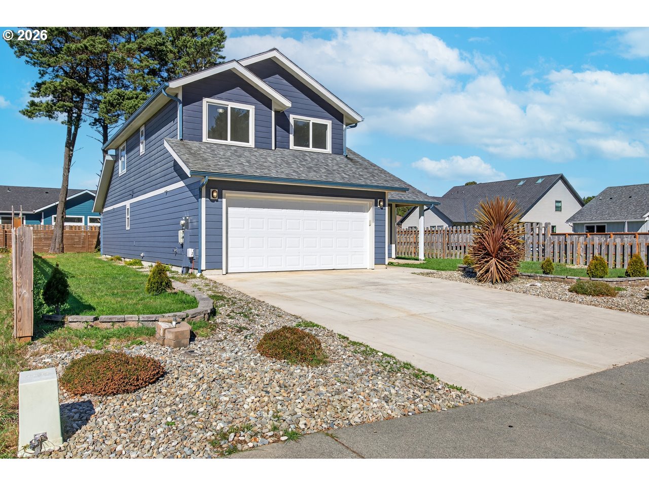 SHIP SHAPE, CUSTOM, OCEAN BLUE 2-story home in beautiful Ocean Trails with a pretty walking trail straight down to the beach! Freshly painted & renovated, home features Hardiplank Lap Siding, Greatroom with a slider to a west facing covered patio, custom Myrtlewood Breakfast Bar & “Live Edge” Windowsills, Schrock Cabinetry, Vinyl Plank floorings, 2051 sq. ft., 3 bedrooms, 2 other bonus rooms/offices, one with a bay window, as well as a flex space on the stair landing, 2.5 baths. Master Bedroom has a slider to patio, wall to wall carpet & its own tiled bathroom with Step In Shower. Also has a large Laundry Room, 2 car finished garage with Built In Cabinets/ Workbench, a front porch, a mostly fenced yard & great view of our local Shore Pines & wildlife such as deer & turkeys. Come join our enviable Bandon lifestyle!