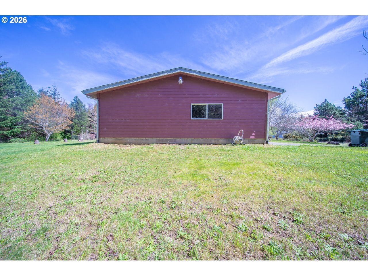 BANDON COUNTRY HOME SWEET HOME! At the end of the lane on the warm side of town yet minutes to everything Bandon has to offer, this Marlette 1782 sq. ft. home on .62 acre with many amenities: 3 bedrooms plus a bonus office or hobby room, an open floor plan with a living room plus a family room, a master suite with a bonus office area, walk-in closet & its own bathroom with a step in shower & skylight, a laundry room with Kenmore frontloading washer & dryer, lots of built-in cabinetry, shelves & storage, a dreamy south facing deck, fiber cement siding, an oversize 2 car garage with a workbench, 2 garage door openers & a handicap ramp, a huge, flat, useable yard with a fenced garden, raised beds, blueberries, fruit trees, apple & plum & drop dead gorgeous flowering perennials!