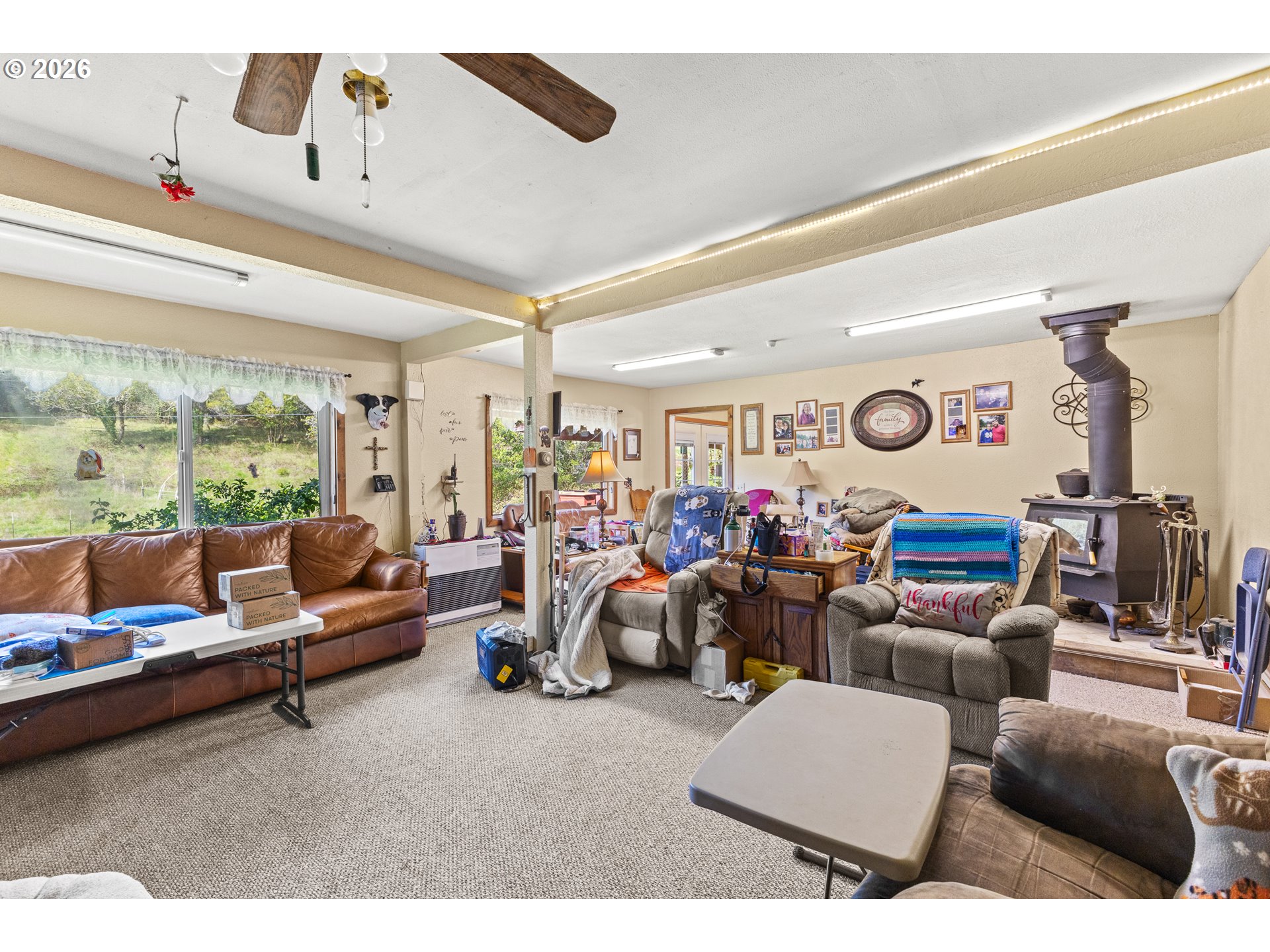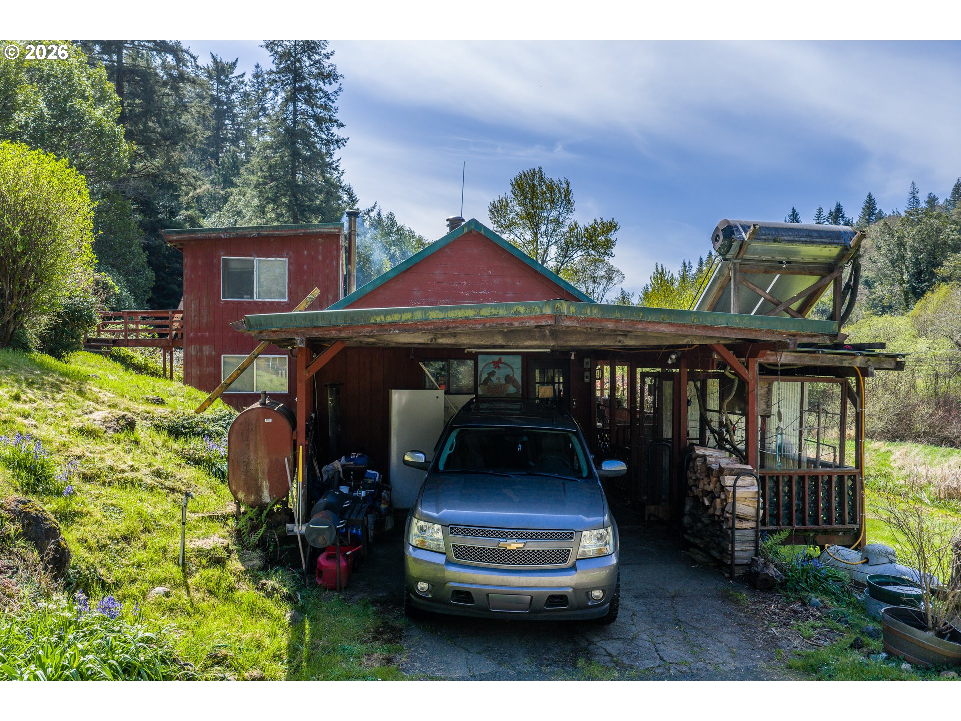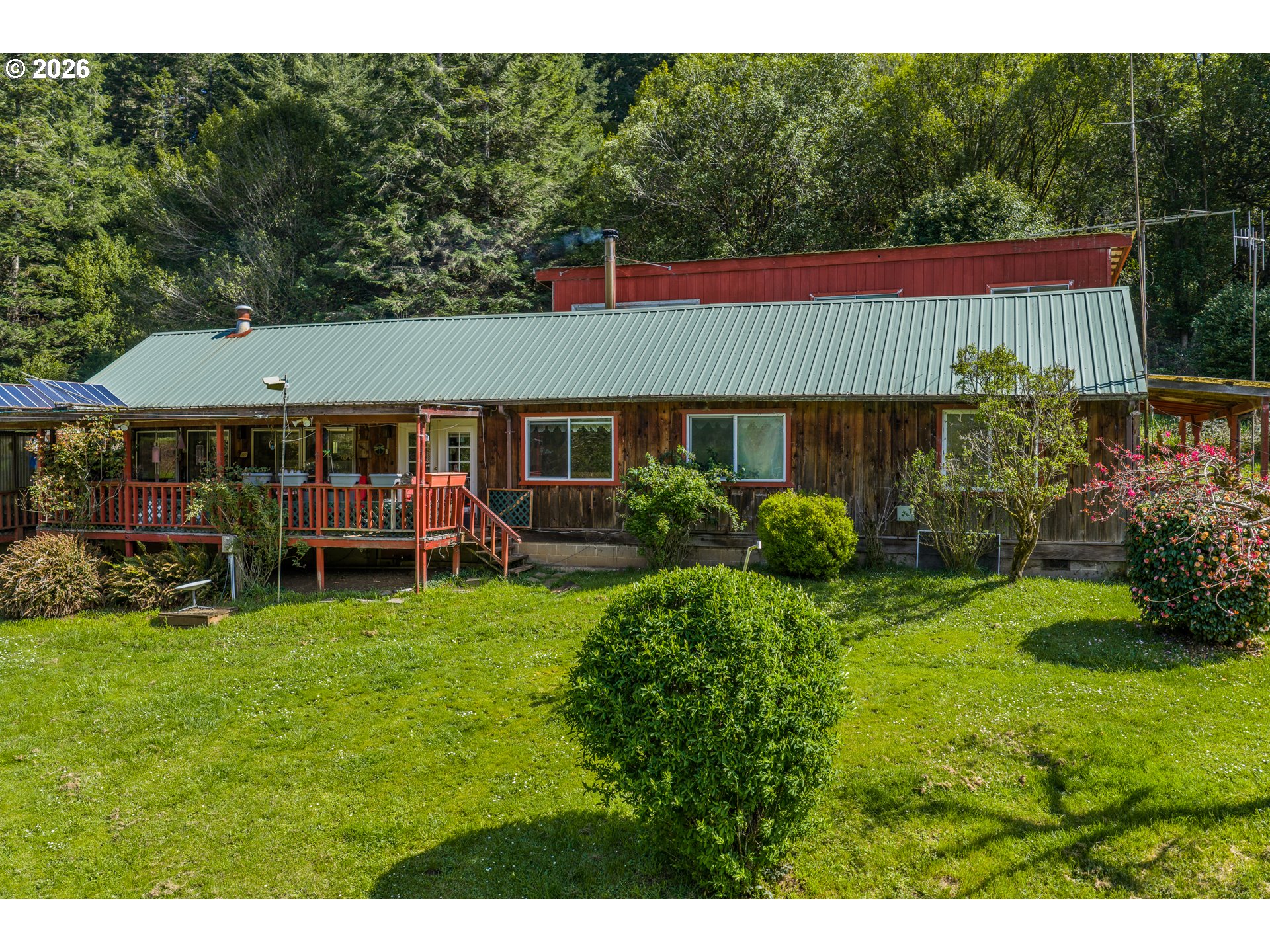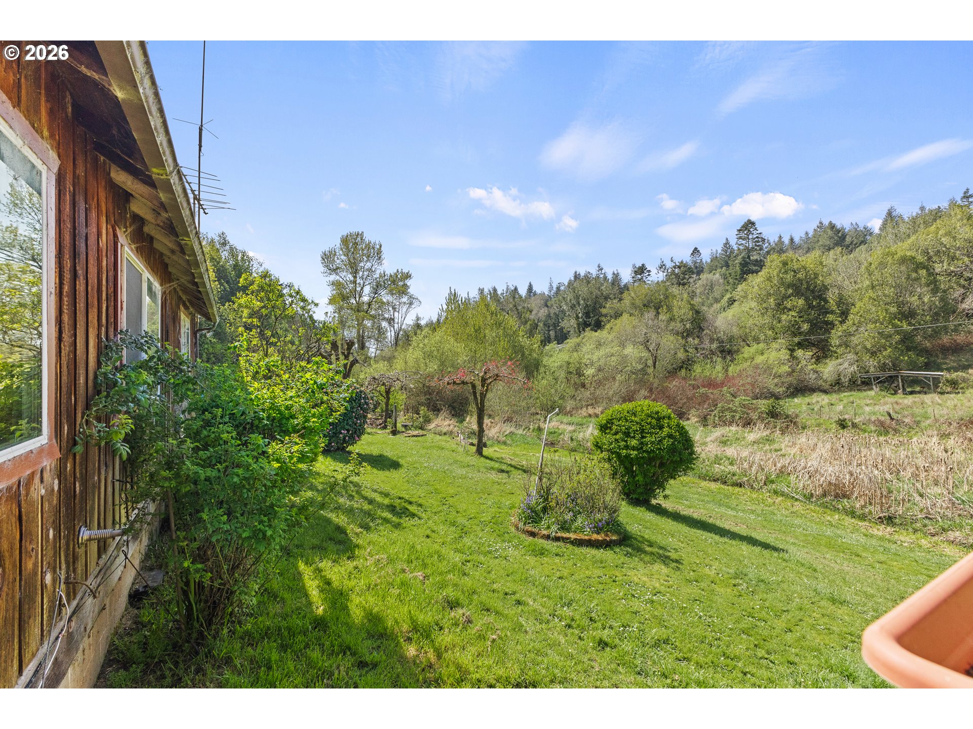 Great Year-Round Creek-Front location with 2 tax lots on 13.78 acres just minutes to Coquille! Glen Aiken Creek flows in front of this 1920s home with 3 bed/1 bath and extra bonus rooms with a friendly eat-in country kitchen. Water rights for 0.8 acre irrigation and domestic use for one family. 10-year-old large woodstove and oil monitor heat. Back porch/laundry area with canning storage. Beautiful timbered hillside behind the home. Storage building and large carport. Zoned RR-5, check with appropriate county planning for details about possible uses for the extra tax lot.