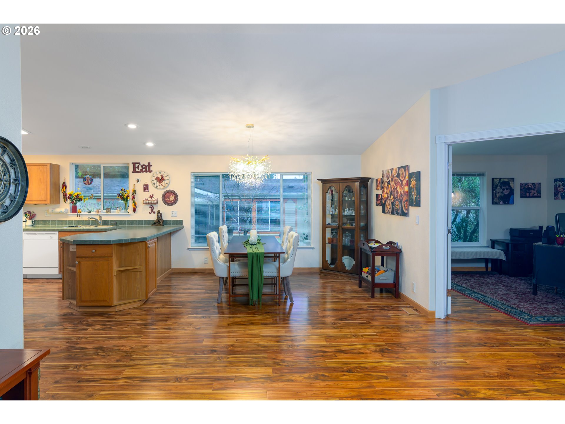 Immaculate home on a corner lot in a desirable 55+ park that is move in ready! The front porch with ramp leads you into the open floor plan of this 1620SF 3bedroom, 2bath home full of natural light with large windows. High quality laminate flooring throughout, primary bathroom with a soaking tub and walk in shower, bonus office space with French doors, a large kitchen and dining area with lots of storage. Outside offers a large covered patio for get-togethers, a shop and a shed, private fenced backyard, as well as space for you four-legged friends! There is a carport as well as ample parking. Fresh interior paint in 2025 and new roof in 2022. Current space rent is $532.00; utilities are separate through the park. Schedule a showing today!