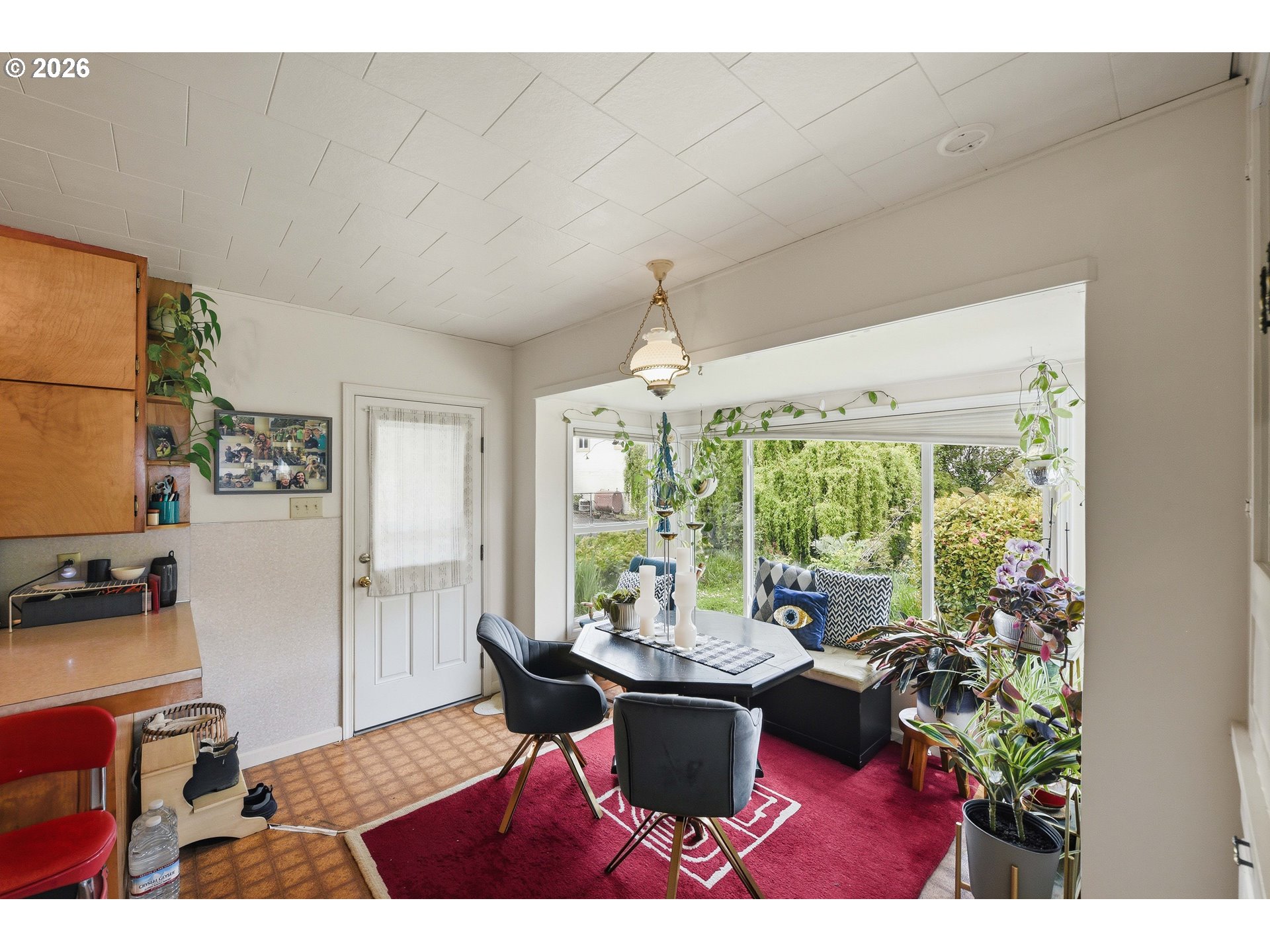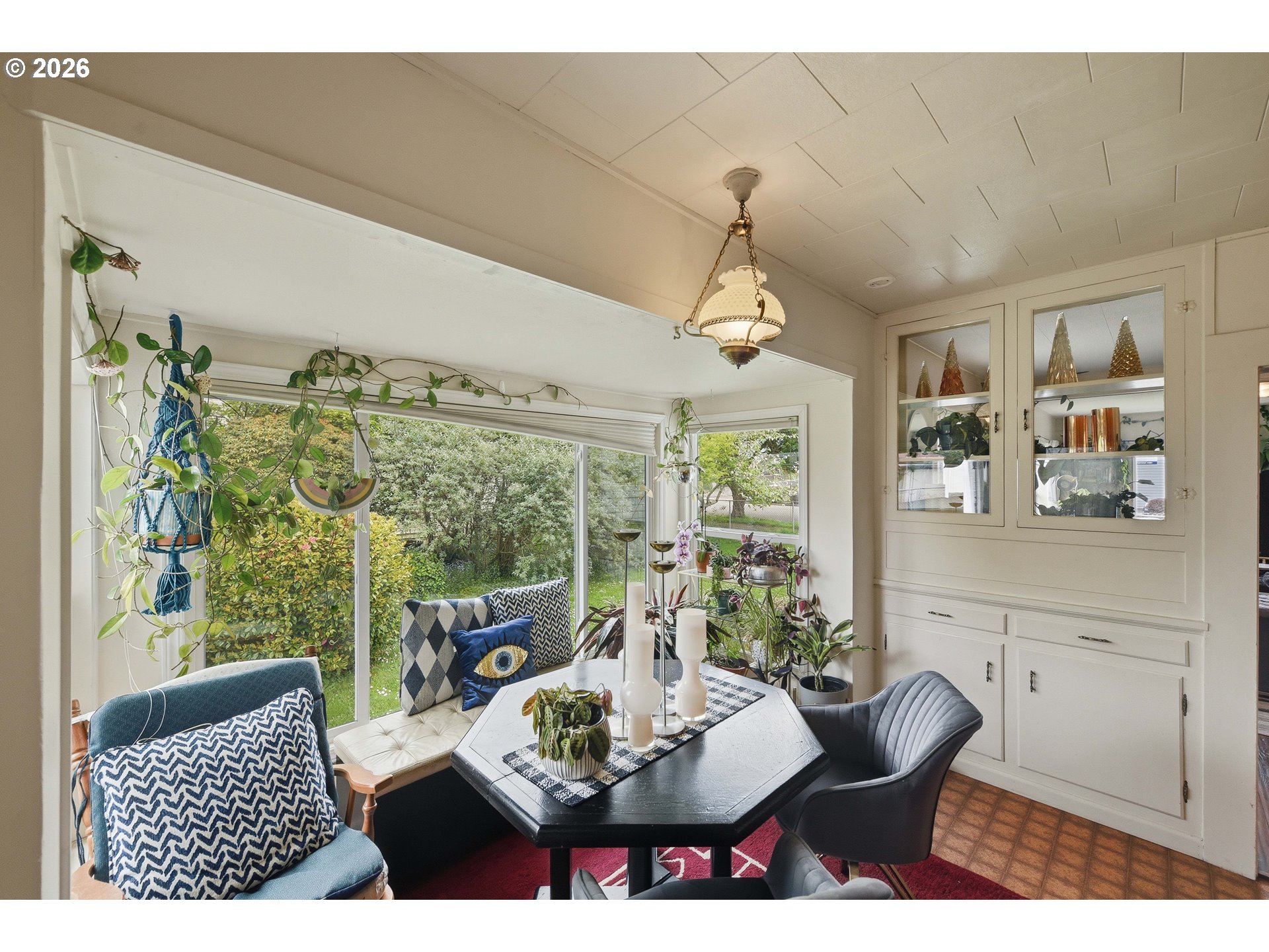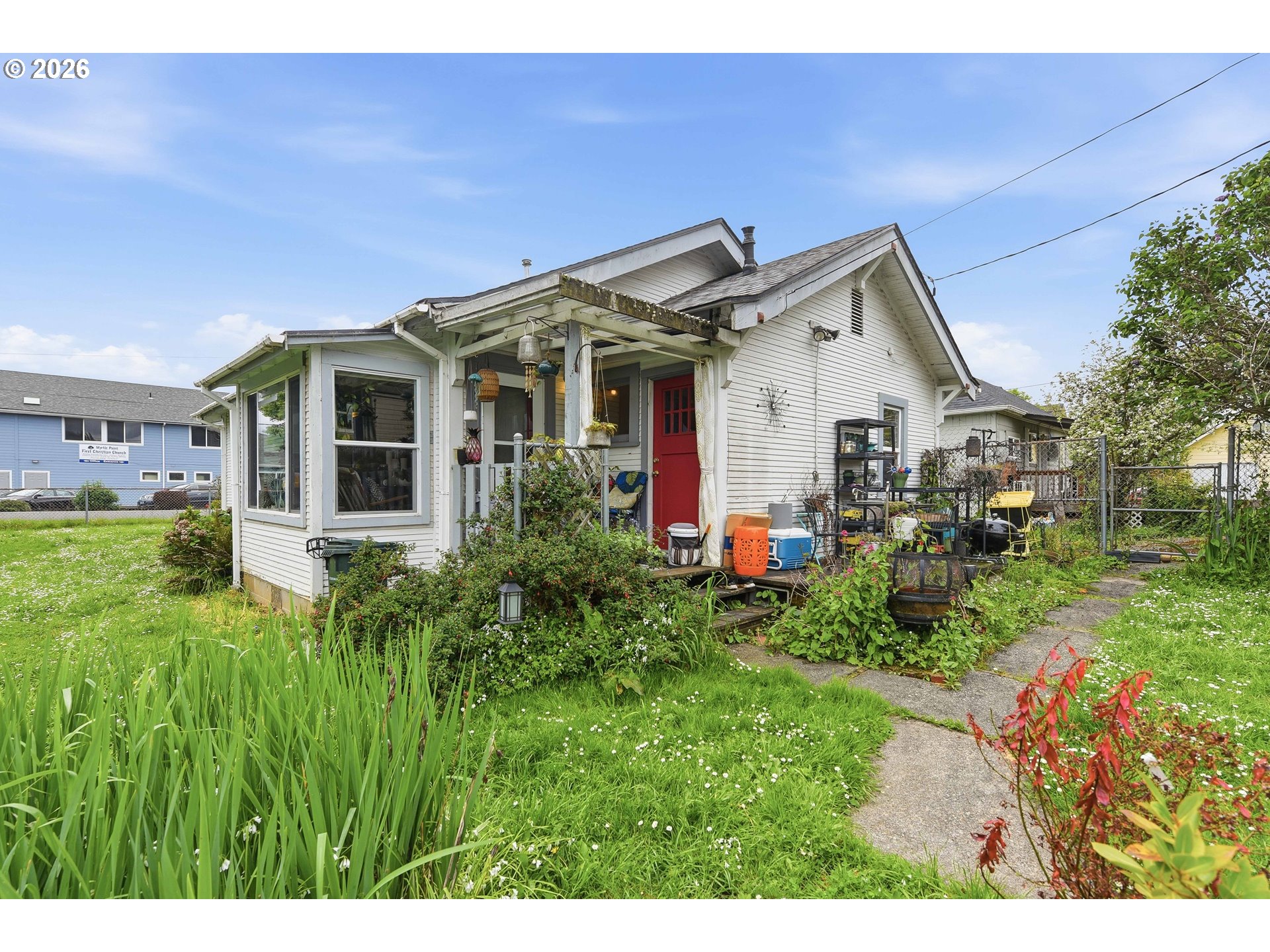 Charming and affordable, this adorable 2-bedroom, 1.5-bath cottage offers 1,116 square feet of comfortable single-level living. Inside, you’ll find thoughtful updates including a natural gas stove, built-ins for added character and storage, and an on-demand gas water heater for efficiency and convenience. The kitchen offers abundant cabinet space, perfect for storage and functionality, while the sun-filled dining room creates a warm and inviting place to gather.Nestled on a spacious fenced lot, the property features a beautifully landscaped yard filled with dozens of varieties of flowers and ornamental trees, creating a peaceful and inviting outdoor setting. This delightful gem is perfectly sized for easy living and is conveniently located within a short distance to the city park, grocery store, and library.