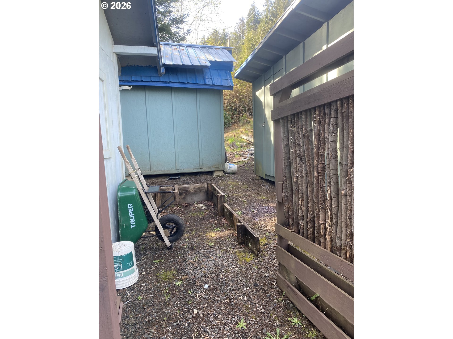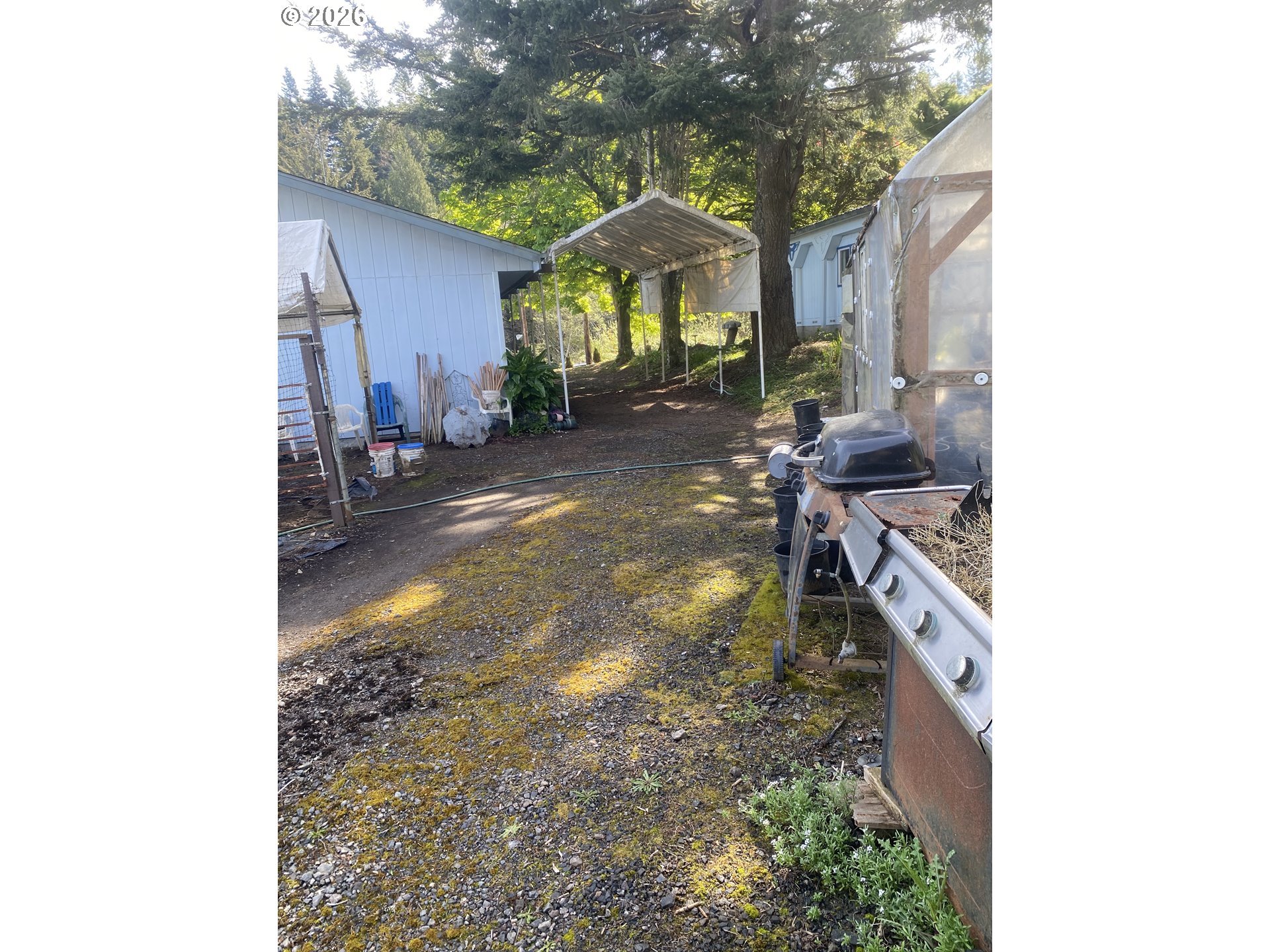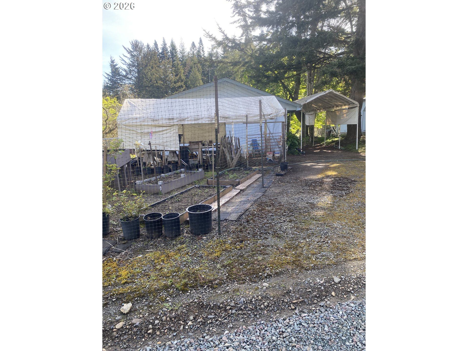 This has lots to go with the 1164sq'. 2 bedroom 1966 MH with detached 840sq' Shop with it's own drive that goes through to the 15' alley behind the property. Multiple sheds for all those hobby needs and Green House and raised beds for the gardner.