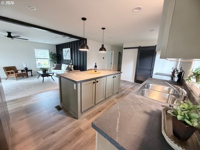 Discover peaceful coastal living in this new 3-bd 2-bath Golden West home, perfectly situated on a spacious 50x100 ft lot. tucked away in a quiet, established neighborhood, on a dead end road. The home is nestled between mature Fir and Spruce trees that give it a serene rustic setting. This property offers the ideal balance of privacy and convenience. The Home is on a 6 inch solid concrete slab reinforced with rebar and will have a structual Ledge Stone style foundation installed on April 6th. This new home includes a cozy front porch, built in blinds, Samsung stainless steel appliance package (refrigerator w/ water & ice dispenser, cook stove and dishwasher). Ceiling fans, garbage disposal, recessed lighting. Kitchen island w/ pendant lights and master suite. It also has a perfect combination of Modern and Rustic accents involving an accent wall with a wood faux beam in the living room and a rustic barn door to the utility room. The living room and bedrooms have wall to wall carpet for comfort and quality wood grained continuous vinyl flooring from the dinning room through the kitchen and hallway along with both bathrooms. This beautiful Golden West home was built for comfort, functionality and style! Enjoy being approximately 10 minutes from beautiful beaches, scenic parks, local dining, shopping, and essential healthcare services. Whether you're looking for a full-time residence or a relaxing retreat, this home delivers!