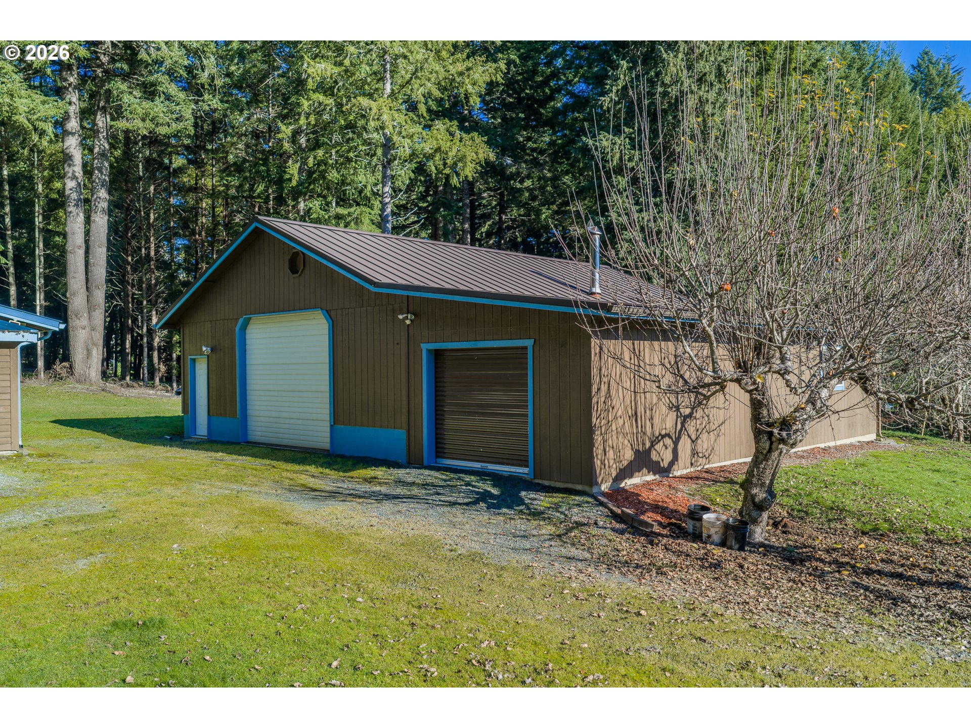 Truly one-of-a-kind estate set on 4.07 acres. This property blends craftsmanship, functionality, and natural beauty, offering a rare opportunity for a peaceful rural lifestyle. The 3 bedroom/1 bathroom home offers approximately 1,200 sq.ft. of comfortable living space. The property features an impressive collection of thoughtfully designed outbuildings and amenities. At the heart of the estate is a 50 x 100 custom shop with multiple dedicated workspaces, custom wood detailing, abundant natural light from skylights, and a large roll-up door. The shop includes two bathrooms, a kitchen area, private office, and a trophy display room. Upstairs offers 840 square feet of finished, carpeted storage, and a secure two-story vault room. An air compressor shed supplies integrated air lines throughout the shop. A 30 x 40 woodshop building complements the main shop and includes a guest bedroom, bathroom, loft space, and private exercise room—ideal for guests, creative pursuits, or expanded work-from-home options. Additional improvements include a large tractor shed, bike storage shed, garden shed, and propane tank shed. The grounds unfold into a park-like retreat with tranquil woodlands, a custom firepit area, and space to relax while enjoying sunsets and nature. Established fruit orchards include apples, pears, cherries, and plums. Four fully serviced RV sites with water and power add versatility for guests. This property offers an ideal setup for a home-based business, hobby operation, or multi-use estate, while also providing room to grow, explore, and enjoy a quieter lifestyle away from urban congestion. Located in the charming community of Powers, known for its forests, rivers, and outdoor recreation, this is a rare opportunity to enjoy privacy, space, and flexibility in a truly special setting.