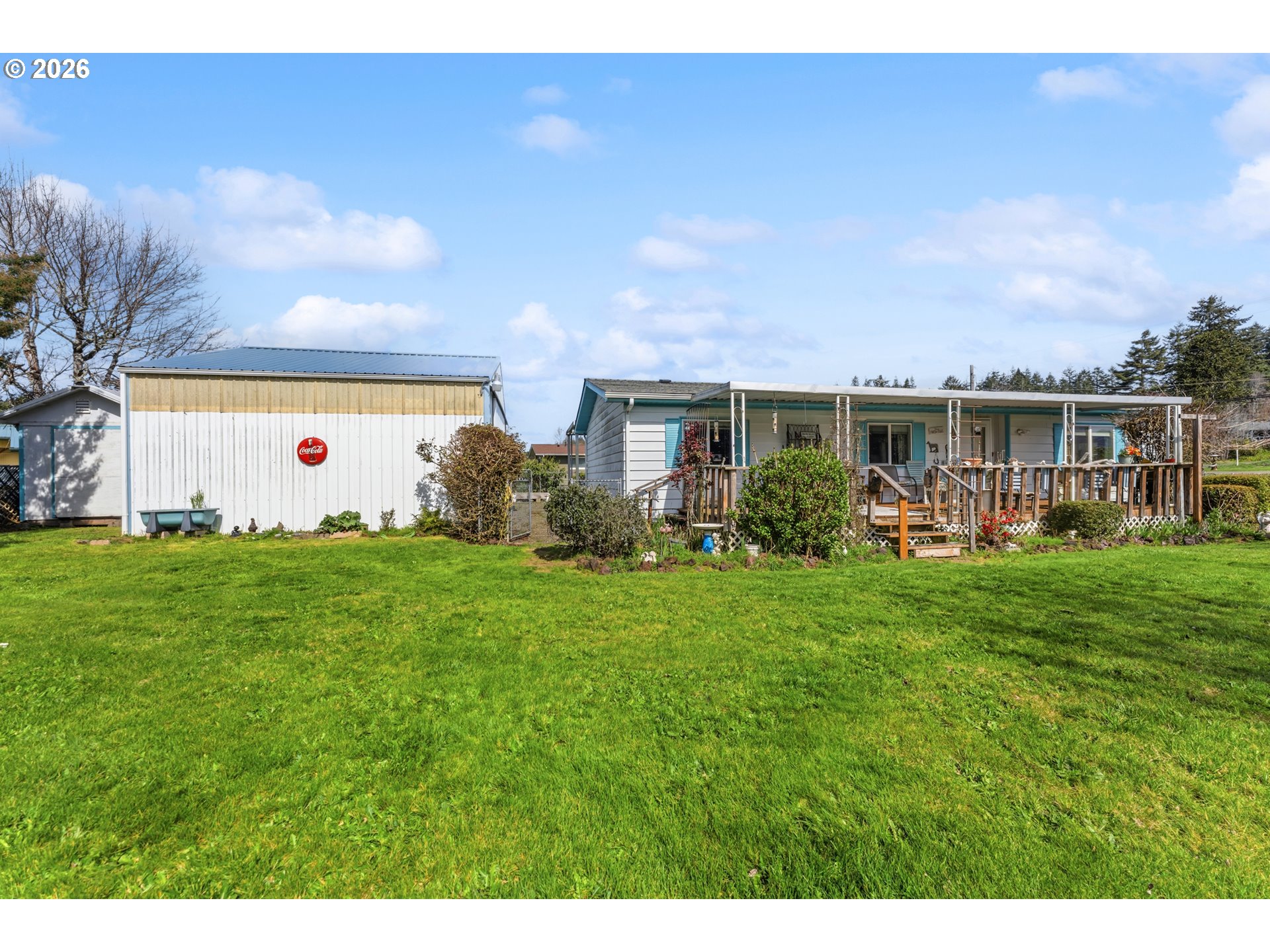 Check out this well-maintained manufactured home with a spacious shop, situated on its own lot in the coastal community of Lakeside. This 3-bedroom, 2-bath home features a large oversized shop with a loft—perfect for storing RVs, boats, or ATVs, with easy access to the dunes right from your doorstep. Both the home and shop have newer roofs for added peace of mind.Located toward the end of 8th Street, the property offers convenient access to nearby lakes, dunes, and endless coastal recreation. Enjoy comfortable living with a yard that provides plenty of space for outdoor activities.