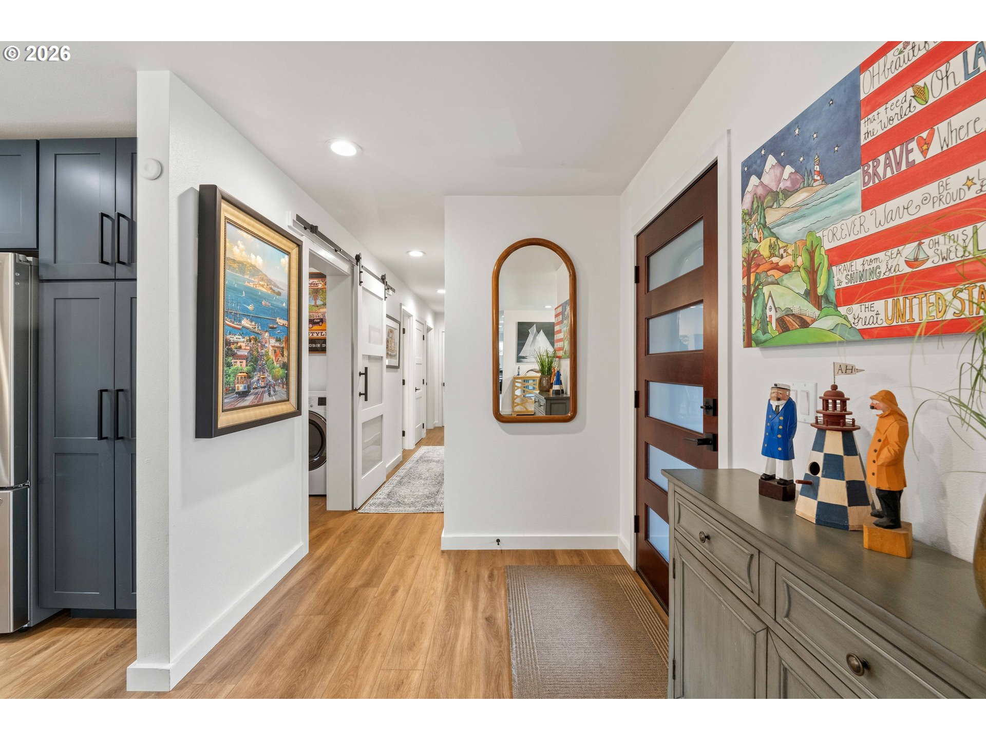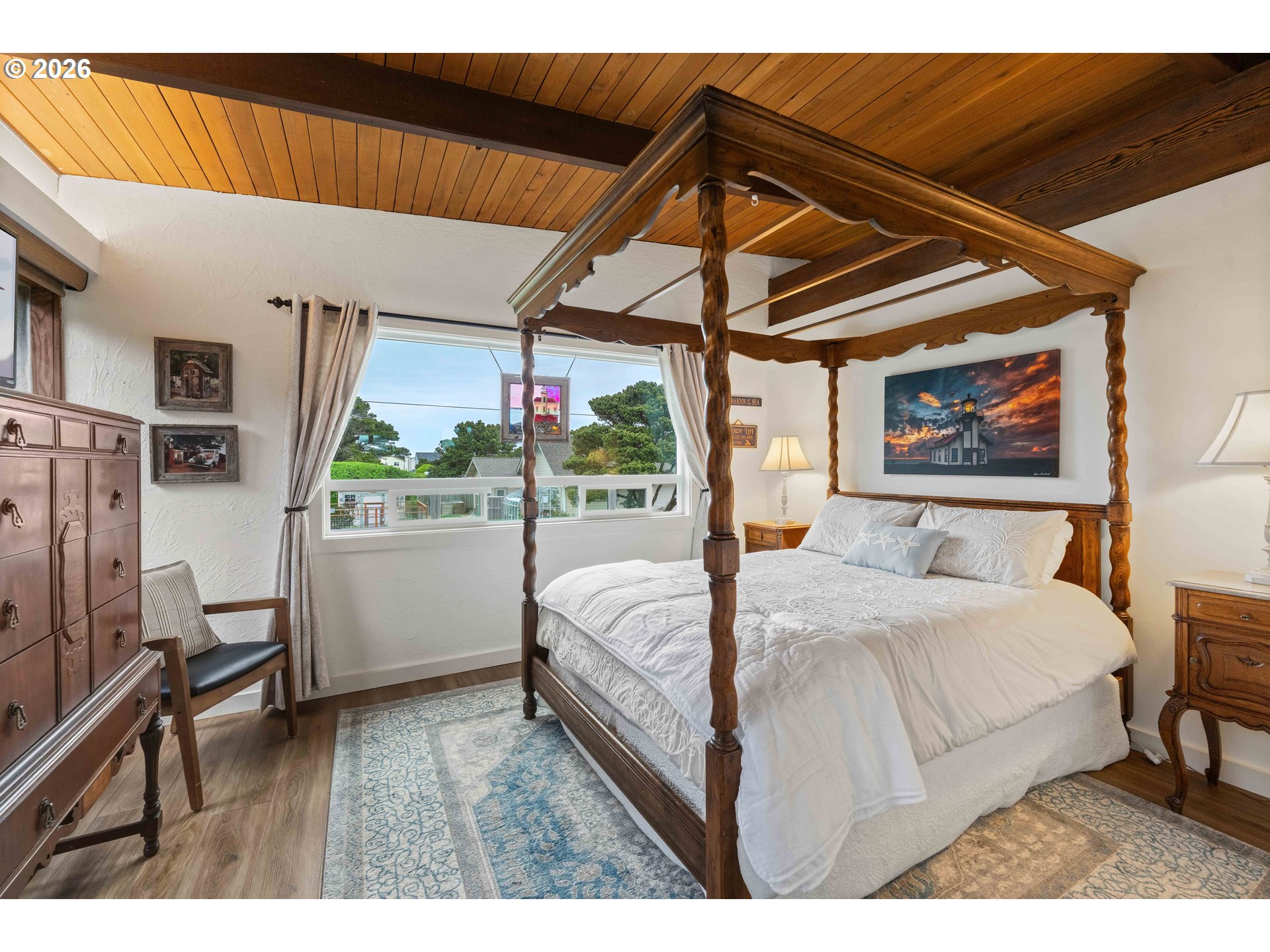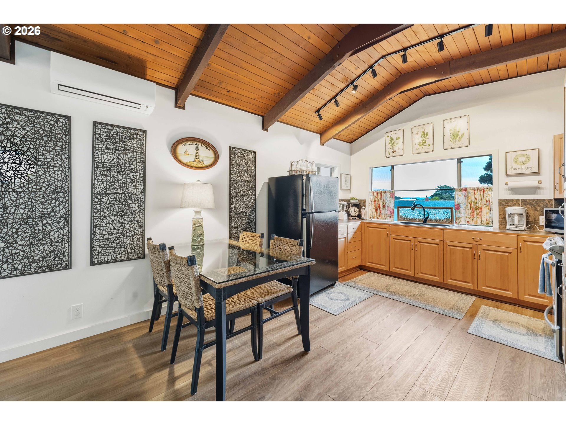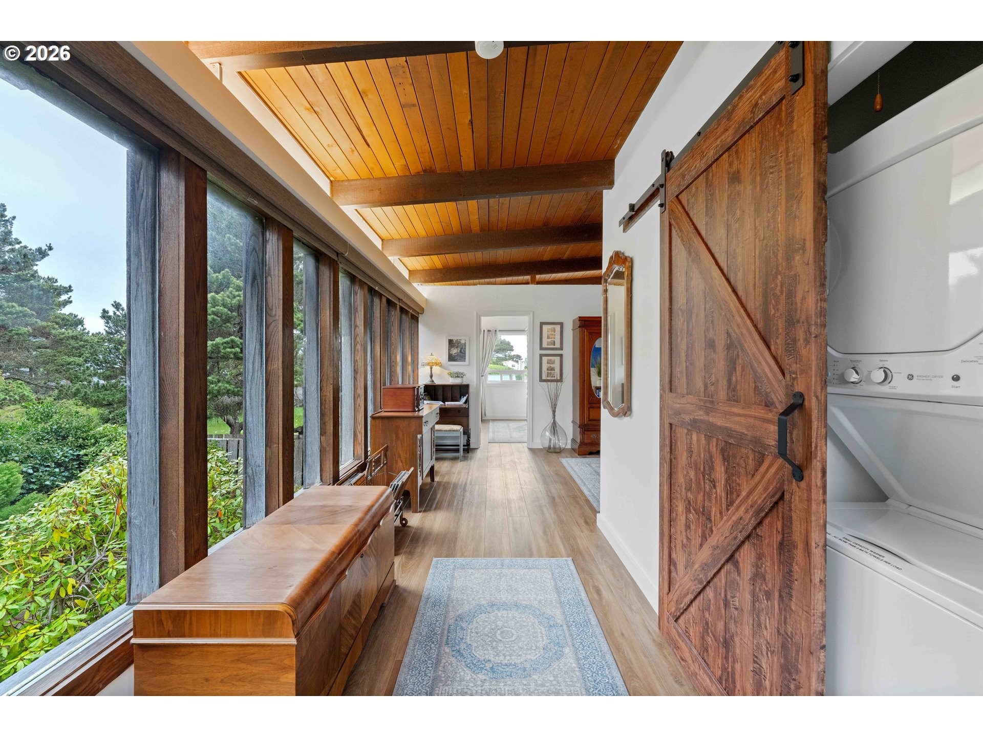 Located at 820 Jackson Ave SW in West Bandon, this exceptional property offers far more than a single residence, featuring a fully remodeled main home along with a beautifully updated guest apartment above a detached three-car garage, all just a few blocks from the beach. Set on a spacious 0.29-acre corner lot, the main home was taken down to the studs, expanded with additional living area and a new primary suite, and rebuilt with impressive attention to detail, resulting in over 2,700 square feet with four bedrooms and two bathrooms designed for both comfort and functionality. The interior showcases a generous living and dining area, a well-appointed kitchen with a large island, quartz countertops, quality cabinetry, and a full stainless appliance package, all complemented by durable luxury vinyl plank flooring throughout the home. Expansive windows provide abundant natural light, while a stately stone fireplace anchors the main living space. The roomy primary suite offers a spacious, well-appointed bath with marble counter, large soaking tub with a tiled walk-in shower exude this fine interior. The large laundry room with washer and dryer adds to everyday convenience. A new membrane roof enhances long-term value, and a sliding glass door opens to a composite deck overlooking a private backyard complete with a functional greenhouse and mature rhododendrons The detached guest quarters are a standout feature, offering impeccable living space complete with a full kitchen, one bedroom, stack washer/dryer unit and a bathroom with a beautifully tiled walk-in shower, along with a large balcony that makes it ideal for guests, extended living, or rental potential. Additional amenities include a paved circular driveway, RV hookup, pre-wiring for a hot tub, all in a highly regarded West Bandon location that offers excellent proximity to the coast and the many amenities of Bandon. Be sure to watch the video tour and call for your appointment to view this incredible residence.