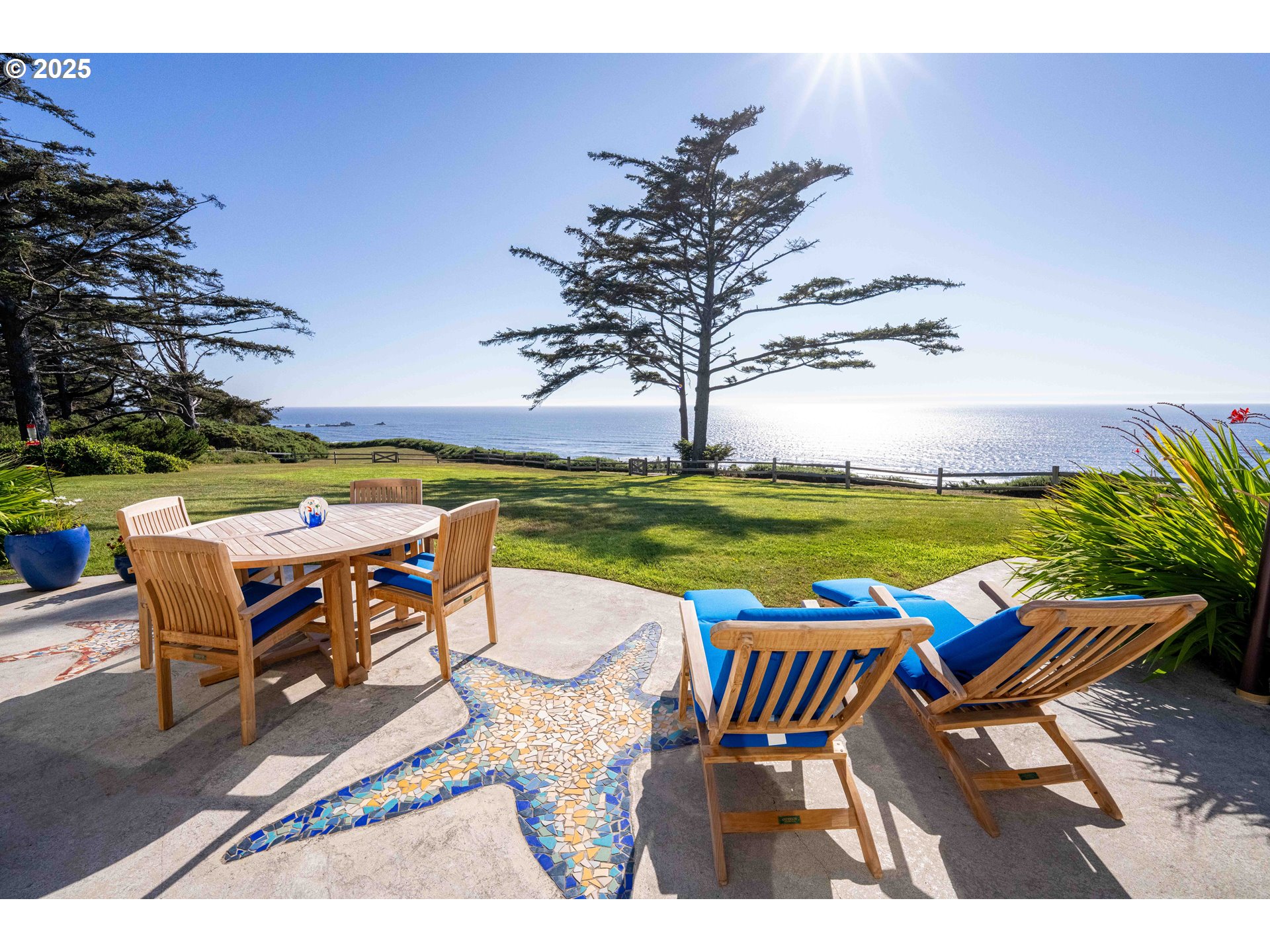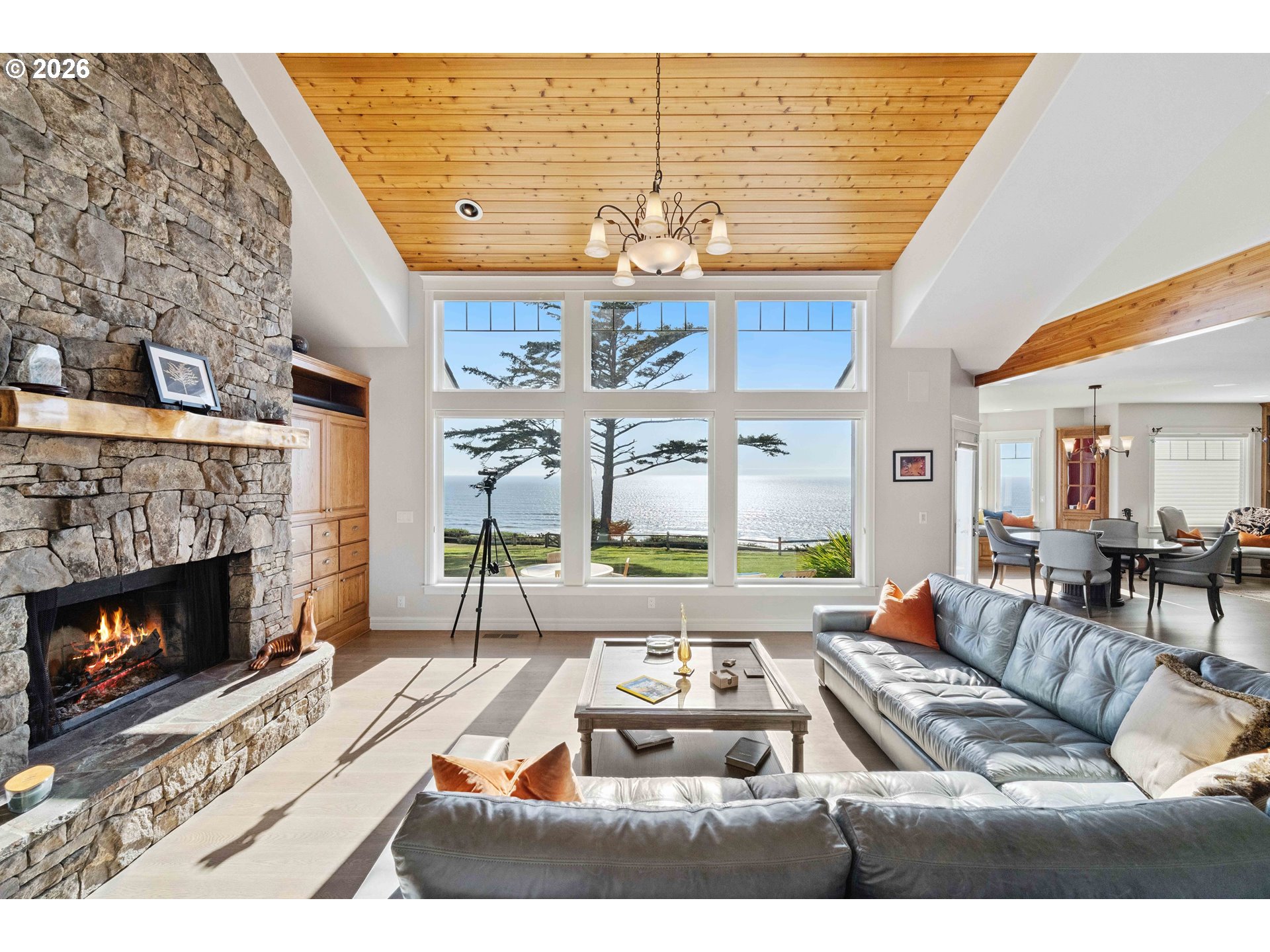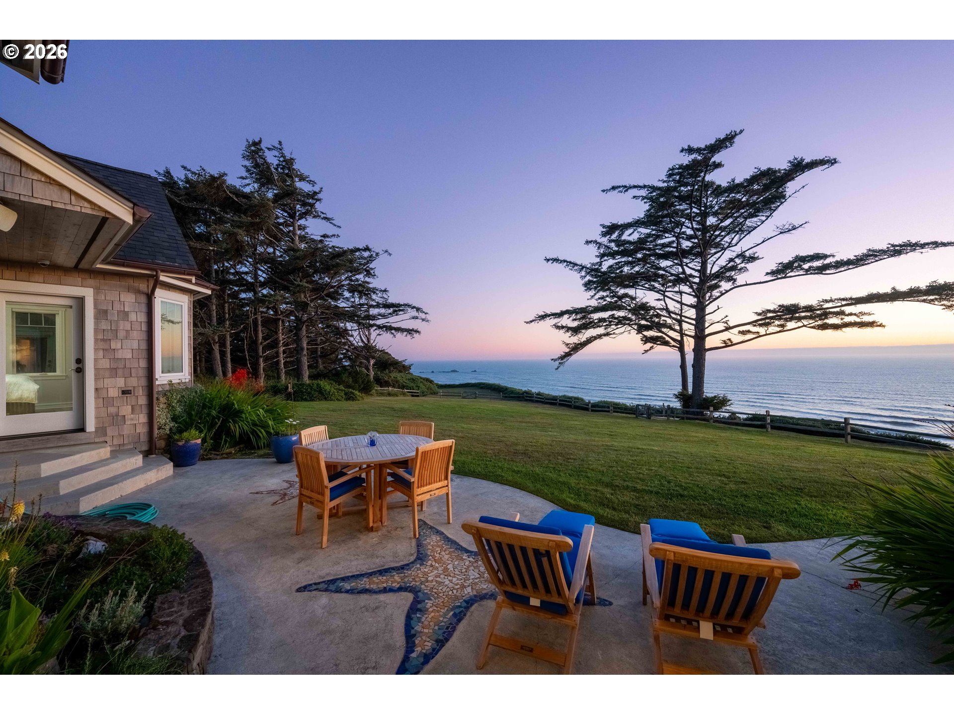 The iconic “Sea Cliff Estate” is now on the market. A rare OPPORTUNITY to own a private 9.6 Acre Oceanfront Bluff Home with your own gated Trail to the secluded Beach below. Enjoy PANORAMIC Ocean Views from nearly every Room, paired with TIMELESS Design, SUPERB Craftsmanship, and UNMATCHED Attention to Detail throughout. Ideally located just minutes from the world-renowned Bandon Dunes Golf Resort, this Property defines the ULTIMATE Coastal Retreat. Approx. 3,085 SF | 4 Bedrooms | 3.5 Baths | Office/Flex Room. Recent UPGRADES include newer Composition Roof, Copper Gutters, Stainless Chimney Caps, Heat Pump, 200 Amp Electrical Panel, Hot Water Recirculating Pump, White Oak Hardwood Flooring, Interior Paint & Exterior Treatment, Automatic Window Coverings, and Professional Landscaping. The detached Art Studio with Outdoor Shower sits just steps from a SPA-LIKE New Hot Tub and Deck, creating a serene coastal escape. Additional features include a 200 SF Outbuilding for Storage, New Well Pump, 2,500 Gallon Water Holding Tank, and 250 Gallon Buried Propane Tank. Three Stone Fireplaces (2 Indoors and 1 Outdoor on the Patio) enhance the COASTAL Ambiance. Fall asleep to the SOUND of Crashing Waves and wake to JAW-DROPPING Views in every Direction. A true ONE-OF-A-KIND Pacific Northwest Legacy Property with Recent Zone Change. MUST-SEE Video/Virtual Tour Link!!