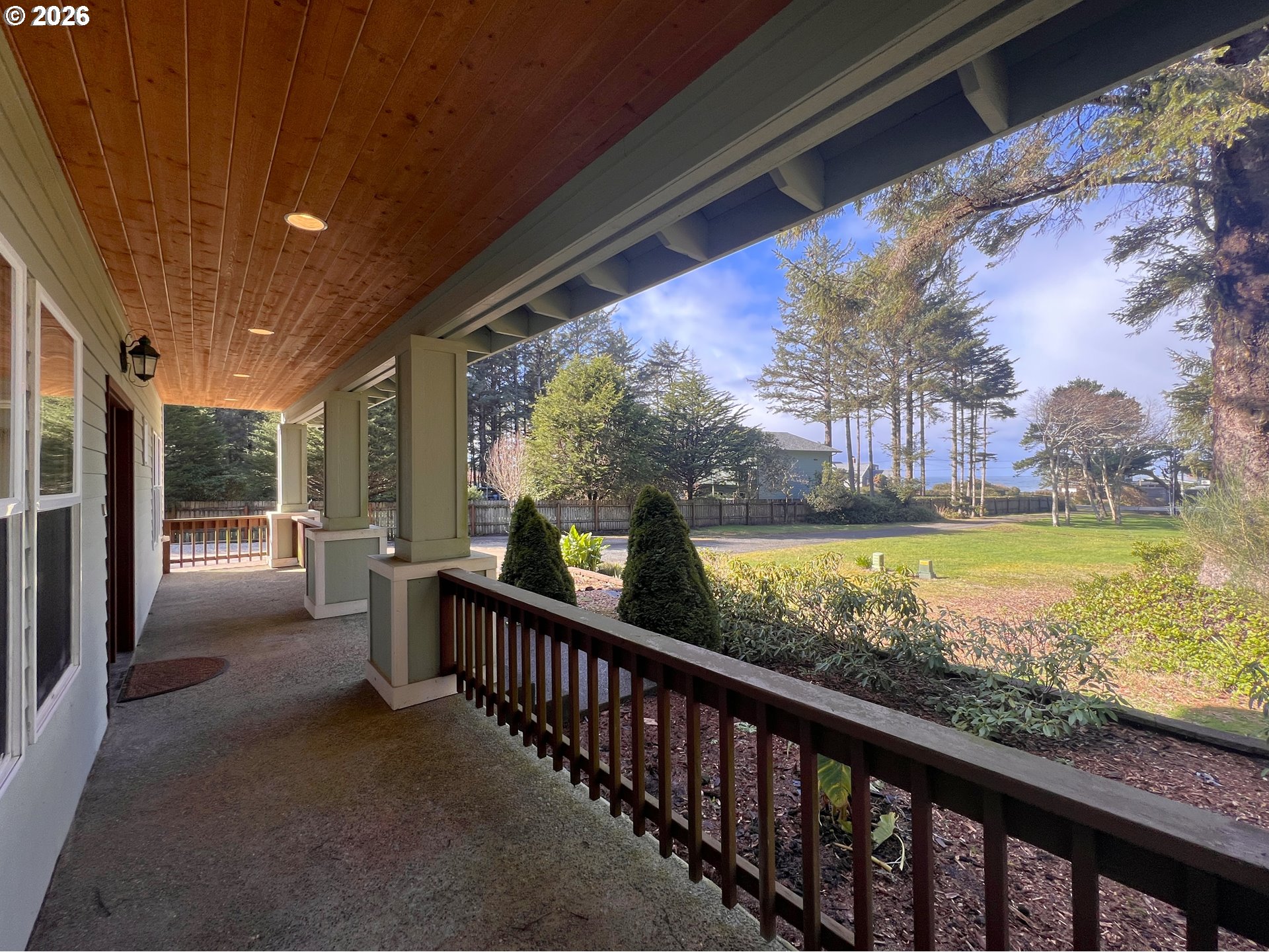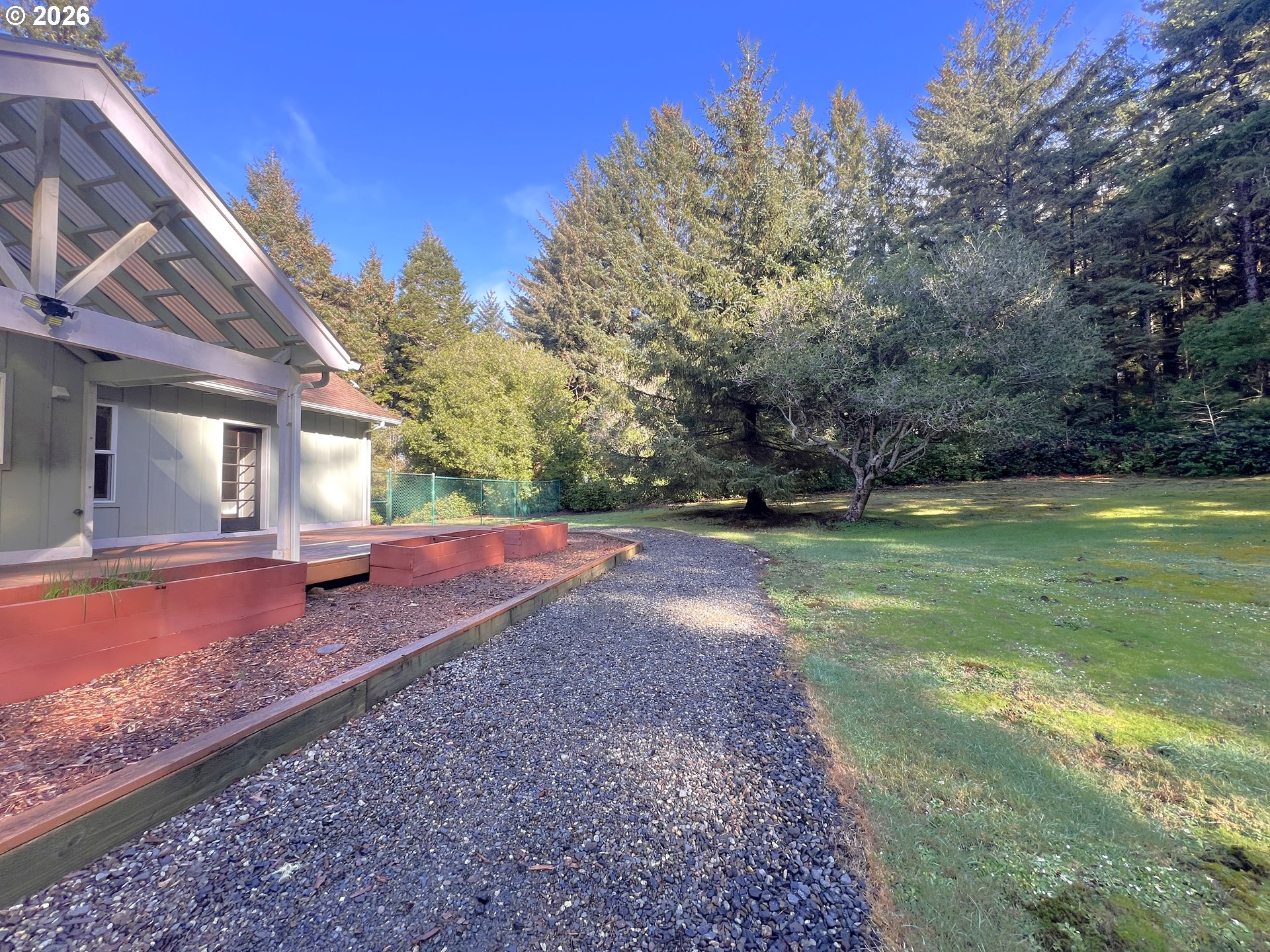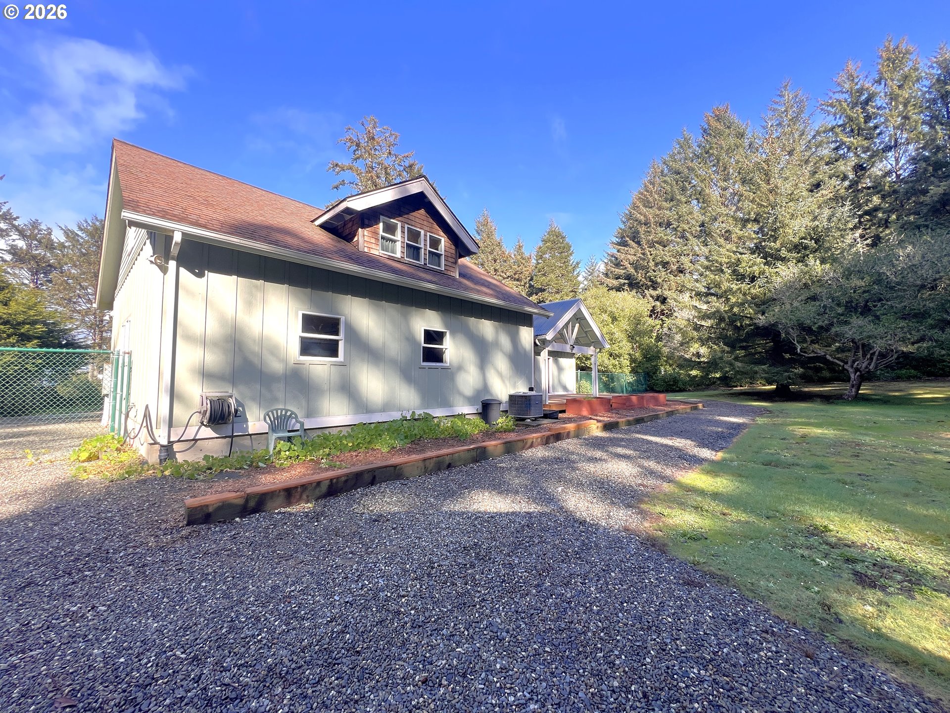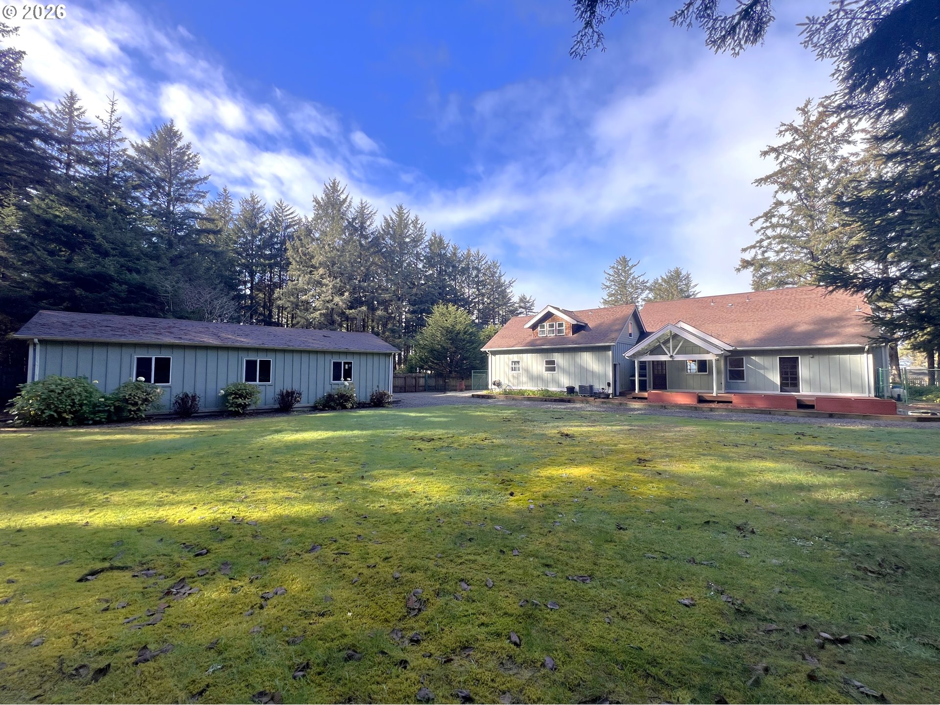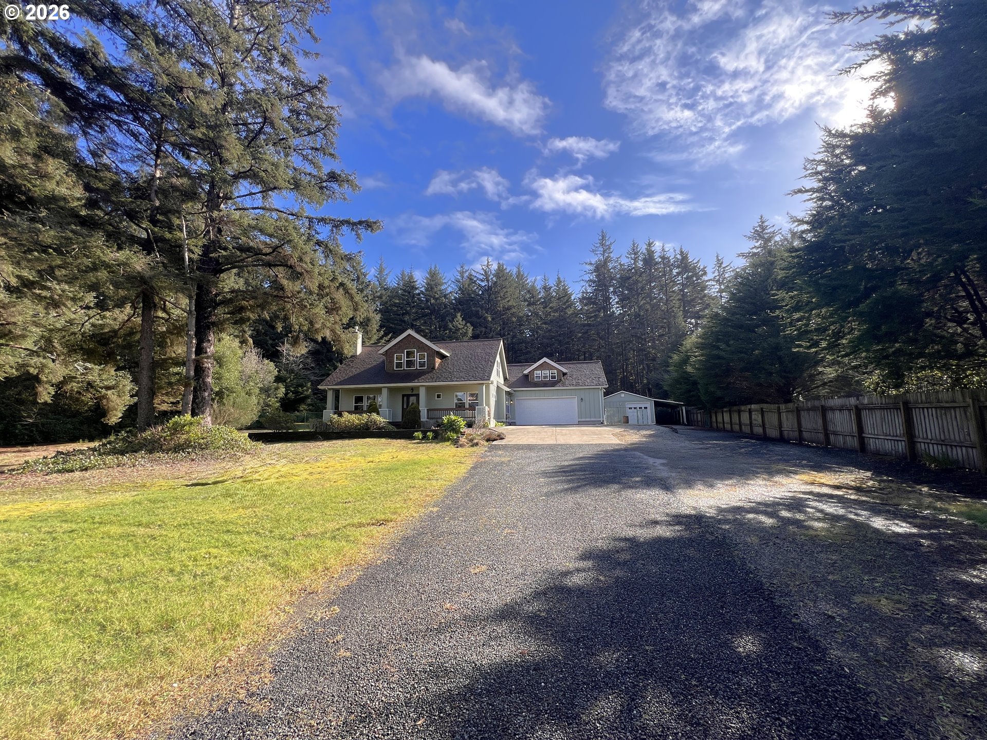 Experience the serenity of Oregon’s coastline from this private OCEAN-VIEW retreat, uniquely bordered by 300 acres of protected Oregon State Park land — ensuring enduring PRIVACY and an unspoiled natural backdrop // Set on 1.51 acres, this exceptional coastal residence offers refined living just minutes from beaches, fishing and world class golf // Built in 2007, this 3-bedroom, 2.5-bath home blends timeless COASTAL architecture with warm, inviting interiors // The living room is anchored by a gas fireplace, creating an elegant yet comfortable gathering space filled with natural light // The spacious kitchen showcases GRANITE countertops, a large island open to the dining area, and a generous pantry — ideal for entertaining or everyday coastal living // The primary suite offers a private retreat featuring a soaking tub, walk-in shower, double vanity sinks, and direct access to the rear covered deck // Upstairs, a SITTING AREA positioned between the guest bedrooms captures beautiful views and provides flexible space for reading, relaxing, or a home office // Adding exceptional versatility, a private GUEST SUITE (419 sf) above the attached garage provides ideal accommodations for guests, multigenerational living, creative space, or potential income opportunity // The (1,152 sf) detached garage/SHOP is equipped with forced-air heating, built-in workbenches, and abundant storage // Step outside to enjoy expansive DECKING, mature trees for privacy, and glimpses of the Pacific // The long driveway provides ample parking for guests, boats, or recreational vehicle // Located just minutes from Sunset Bay, Shore Acres, and Bastendorff Beach, and a short drive to renowned golf courses, this property offers exceptional access to some of the coast’s most treasured destinations.