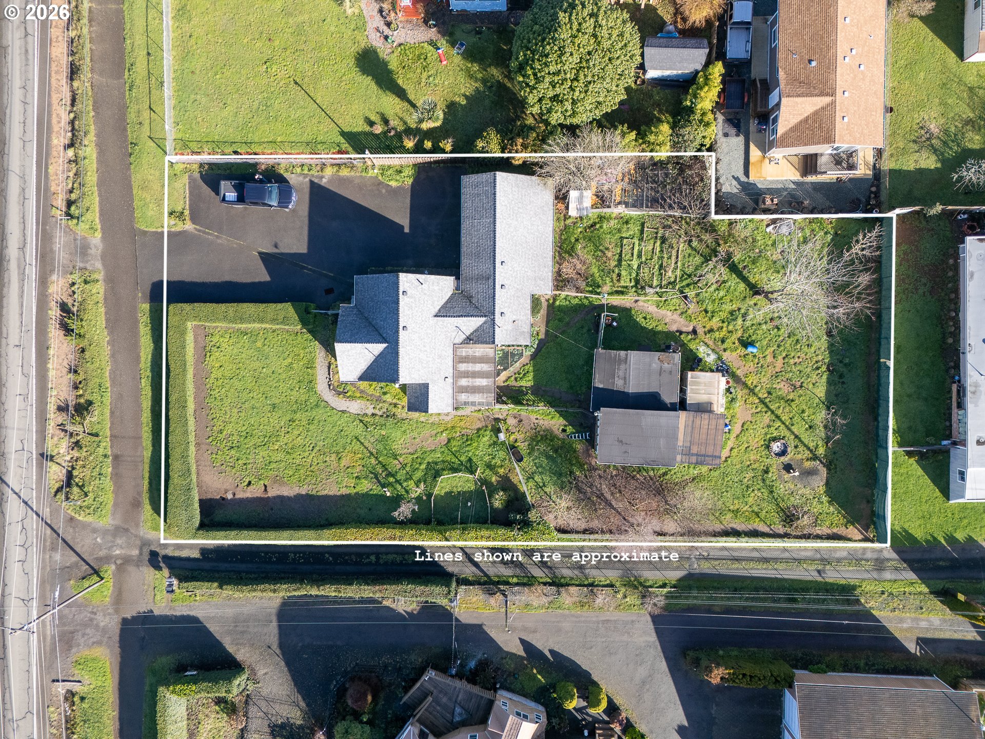 A true Cape Arago classic with captivating bay views, 9222 Cape Arago Hwy offers a rare opportunity to own a distinctive coastal property on a generous .43-acre lot graced by stately hedging along two sides, providing both privacy and curb appeal. This circa-1940 home is rich in character and ready for new vision, featuring a light-filled living room with bay-view windows, two larger bedrooms on the main level, and an upstairs attic area with two small bonus rooms or potential bedrooms. The primary bedroom includes its own bathroom with a walk-in shower, while additional interior highlights include vinyl dual-pane windows throughout, a dedicated laundry room with sink, and a charming dining nook with a glass slider opening to the covered backyard patio—perfect for enjoying the coastal setting and morning sun. The property also offers ample paved parking, a two-car garage, an older barn-style shop with critter stalls, irrigation well, greenhouse, chicken coop, fruit trees, and raised garden beds, ideal for those seeking a mini-homestead lifestyle. With flexible CD-5 zoning that may allow for additional uses (buyer to verify) and an exceptional location near Charleston’s renowned fishing and crabbing, nearby Sunset Beach, and less than 30 minutes to world-class golf at Bandon Dunes, this property delivers location, versatility, and outstanding potential in one remarkable coastal setting.