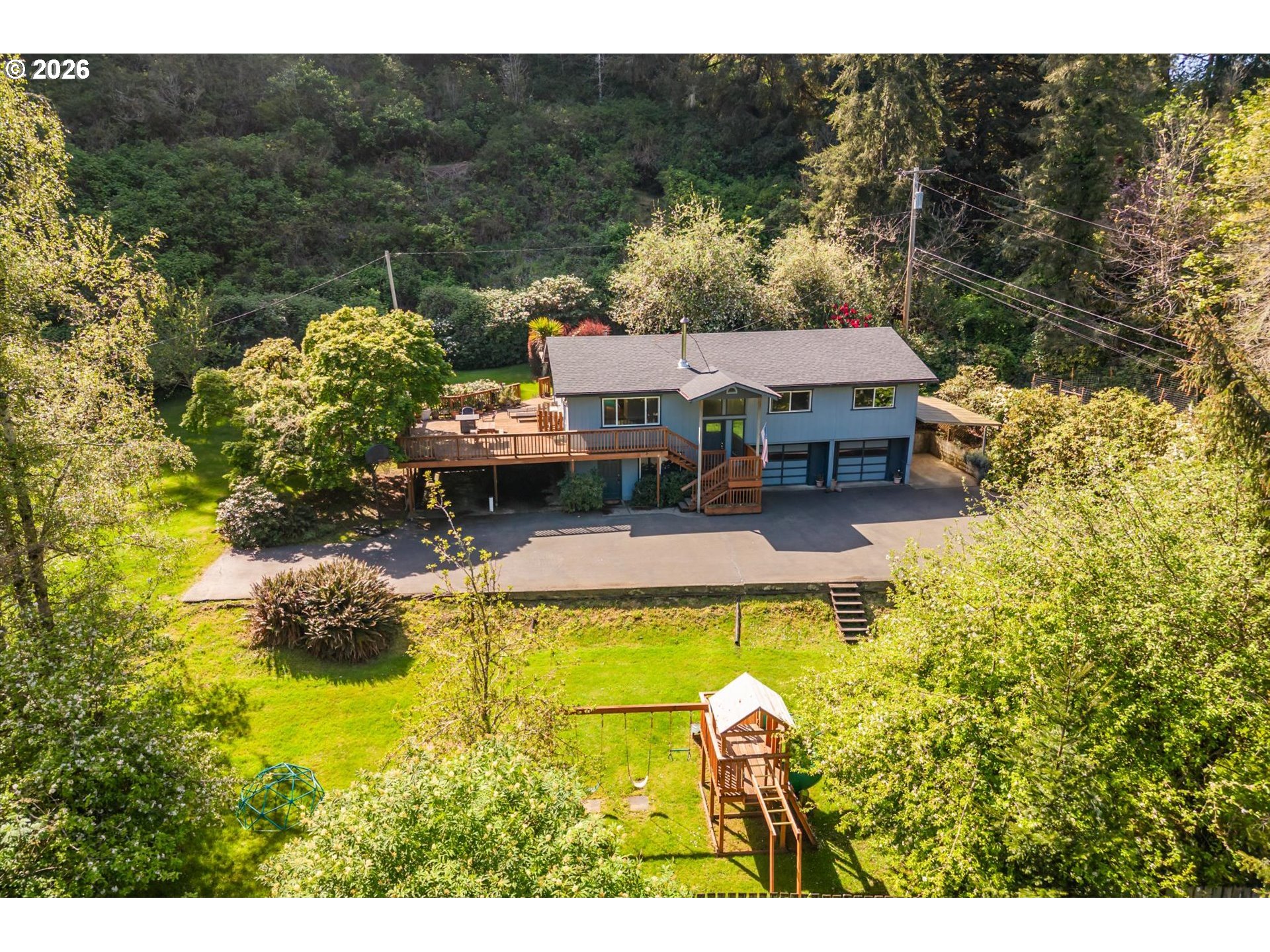 Spacious country living just minutes from town! Set on 2+ semi-private acres only three miles out, this 4-bedroom, 3-bath home offers flexibility, comfort, and room to breathe. Fresh updates include a brand new roof in 2026 and new carpet throughout, making it ready for its next chapter.The layout provides great separation of space, with the lower level offering potential for extended living—ideal for guests, hobbies, or multi-generational needs. The main level opens to a covered back patio off the kitchen, perfect for year-round BBQs, while a large deck invites you to relax or entertain.You’ll appreciate the efficient ductless heat pump, cozy wood stove, and the practicality of well and septic. The oversized garage provides ample room for vehicles, projects, or storage, and the additional outbuilding offers even more possibilities for a shop, studio, or home office.Welcome Home.