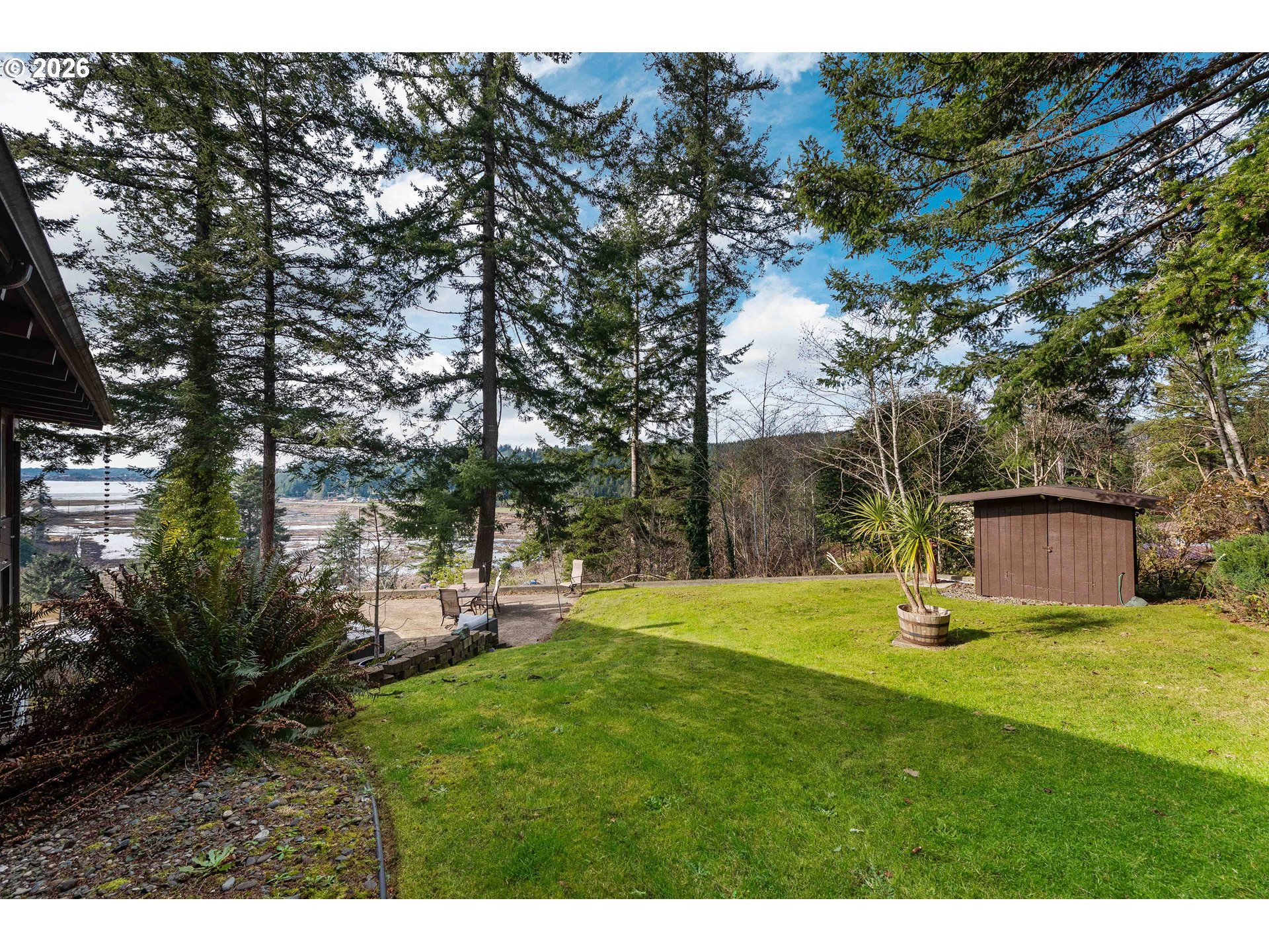 Ever dreamed of owning a home with incredible Bay views? This gorgeous custom home with over 3800 sq. feet of living space is located off of East Bay Rd. This property offers 5+ bedrooms with the possibility of two primary suites, three bathrooms on .97 of an acre. Enjoy your outdoor entertaining with hot tub, BBQ area and fire pit all with bay views on a beautifully landscaped yard with underground sprinkler system. Oversized 1408 Sq ft shop for RV / boat with extra bay / upper-level storage, an out building for additional storage, a single car garage, a home generator, a two-car attached garage and lots of area for parking. Inside, you'll find yourself walking into your DREAM home with high end finishes/upgrades. Beautiful eat-in kitchen with bay views and access to an expansive deck, stainless steel appliances, open concept living room with deck access also. Three bedrooms and two baths all on the main level. Downstairs, you'll find a family room with great views and outdoor access, a large bonus room, two additional bedrooms, storage room, office, bath / laundry room and a possible second primary suite. Just a 13 minutes drive from the home to the Oregon Dune National Recreational area! Call your Realtor and schedule a showing TODAY!