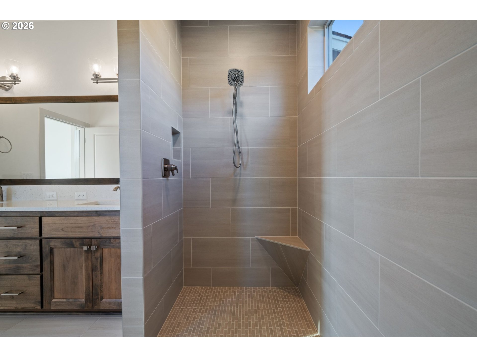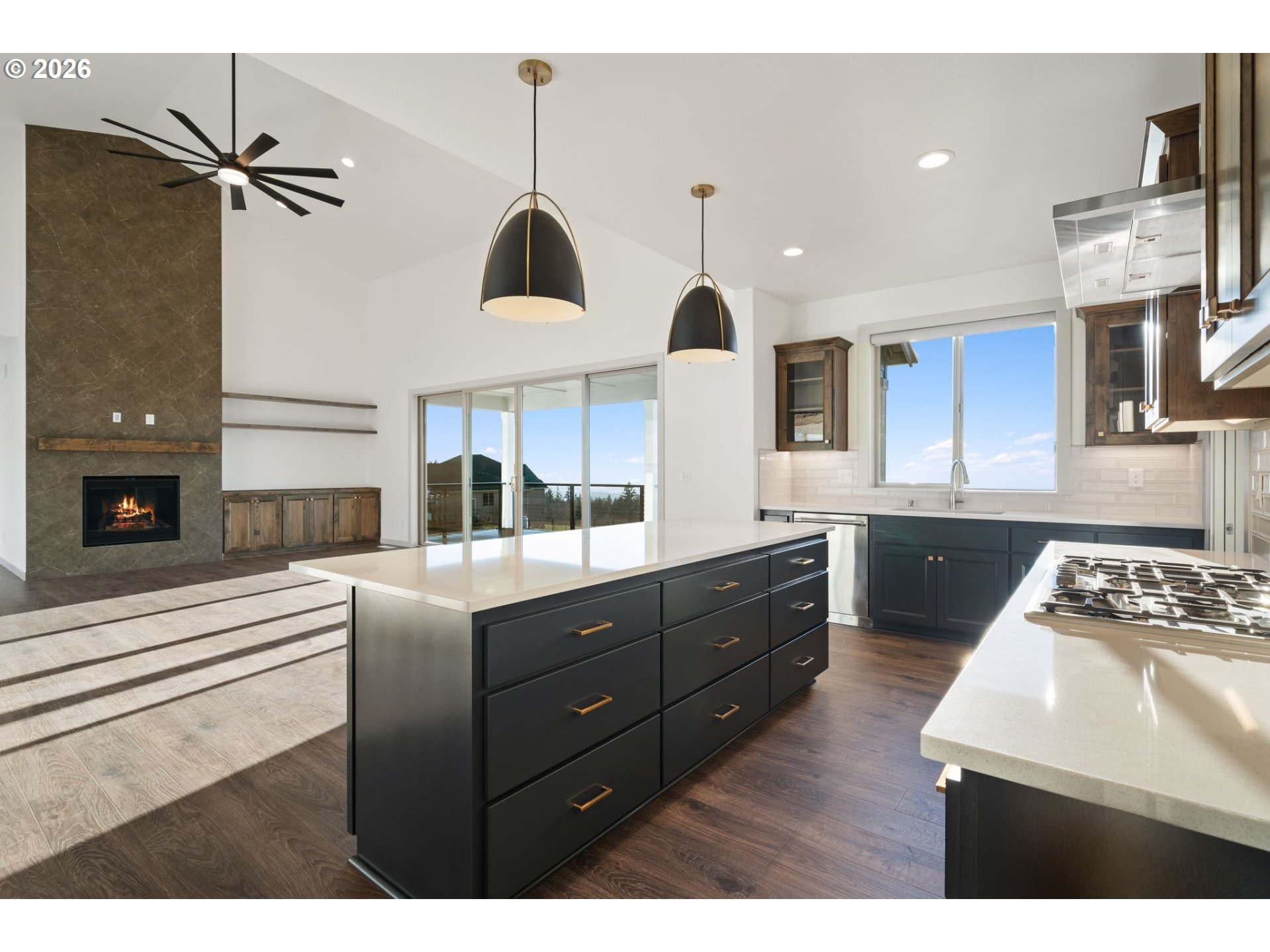 This custom-designed two-story home draws inspiration from Pacific Northwest architecture, blending modern finishes with warm, natural materials to create a welcoming and timeless aesthetic. Thoughtfully planned with in-place principles, the home offers lasting comfort, accessibility, and functional living for years to come. Expansive windows fill the interior with natural light while showcasing the surrounding landscape. An oversized outdoor deck extends the living space outdoors, providing an ideal setting to relax and take in the panoramic views. Above the garage, a spacious bonus room offers flexible potential, perfect for a home theater, guest suite, or creative studio. *Photos of a model of the same floor plan.