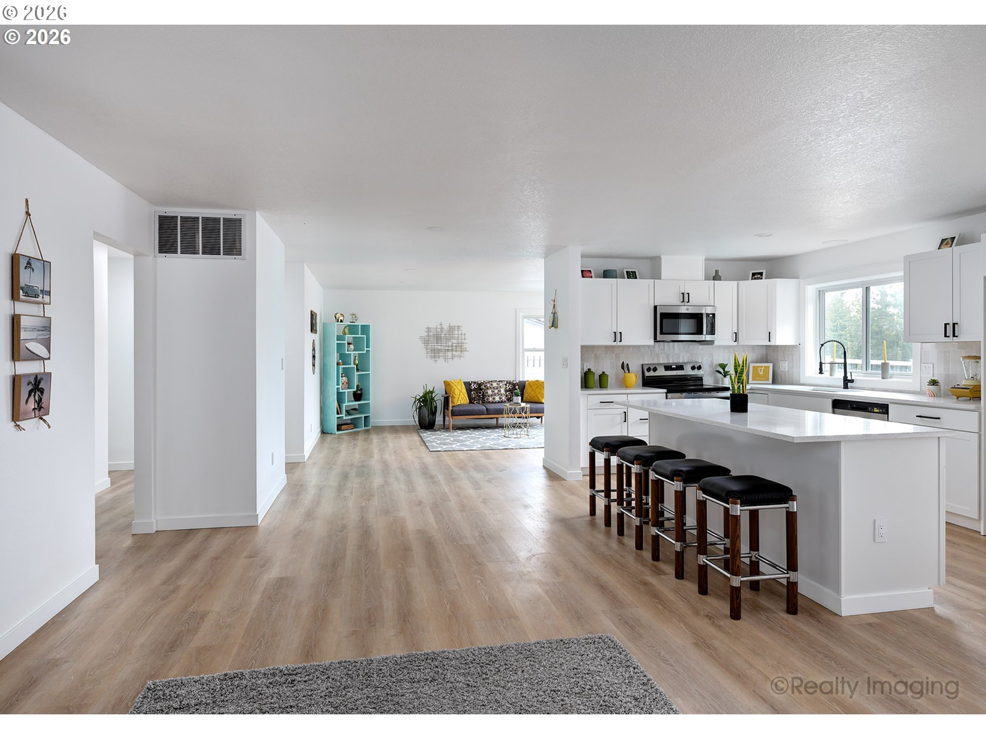 Perched to capture sweeping views and abundant natural light, this incredible home offers the perfect blend of style, space, and comfort. An open-concept floor plan creates a seamless flow between the living, dining, and kitchen areas, ideal for both everyday living and entertaining.The designer kitchen is a true standout, featuring sleek quartz countertops, stainless steel appliances, and ample cabinetry for storage and functionality. Tastefully updated bathrooms showcase modern finishes and thoughtful design, adding a touch of luxury throughout the home.Inside, you’ll find fresh paint, new flooring, updated doors, and crisp trim that give the entire interior a clean, polished feel. Step outside to an oversized backyard with plenty of room to relax, entertain, garden, or create your own outdoor retreat while enjoying the scenic views.This move-in-ready home combines beautiful updates, an airy layout, and exceptional indoor-outdoor living in a truly special setting.