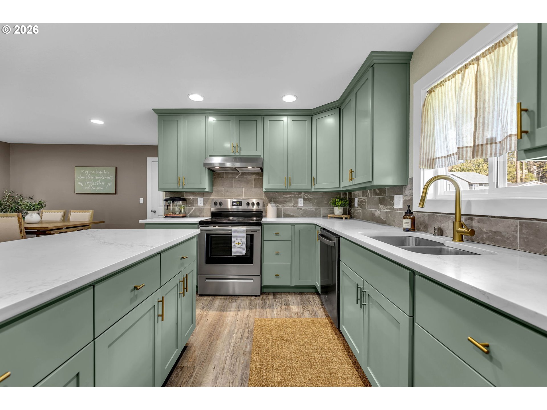 This beautifully updated 4-bedroom, 2-bath home plus flex room sits on a private 1/2 acre lot and blends modern upgrades with functional living spaces throughout. Major improvements include a newer roof, exterior paint, electrical panel, and vinyl windows offering peace of mind. The home is also equipped with a built-in sound system throughout. The kitchen is a standout, featuring quartz countertops, updated shaker cabinets, stainless steel appliances, an electric range and oven, dishwasher, and refrigerator all centered around a spacious eating island. A separate dining area and inviting family room create ideal spaces for gathering and everyday living. The main and lower levels showcase durable LVP flooring, with carpet only on the lower-level stairs. The lower level includes a laundry area with a utility sink, a bedroom, and a versatile flex room—perfect for a home office, gym, or bonus space. Upstairs, you’ll find three bedrooms, including the primary suite with an updated bathroom featuring a quartz vanity and shower/tub insert. Additional highlights include raised flower garden beds and ample outdoor space to enjoy the peaceful setting. Conveniently located near I-5, dining, schools, and local amenities, this move-in-ready home offers both privacy and accessibility.