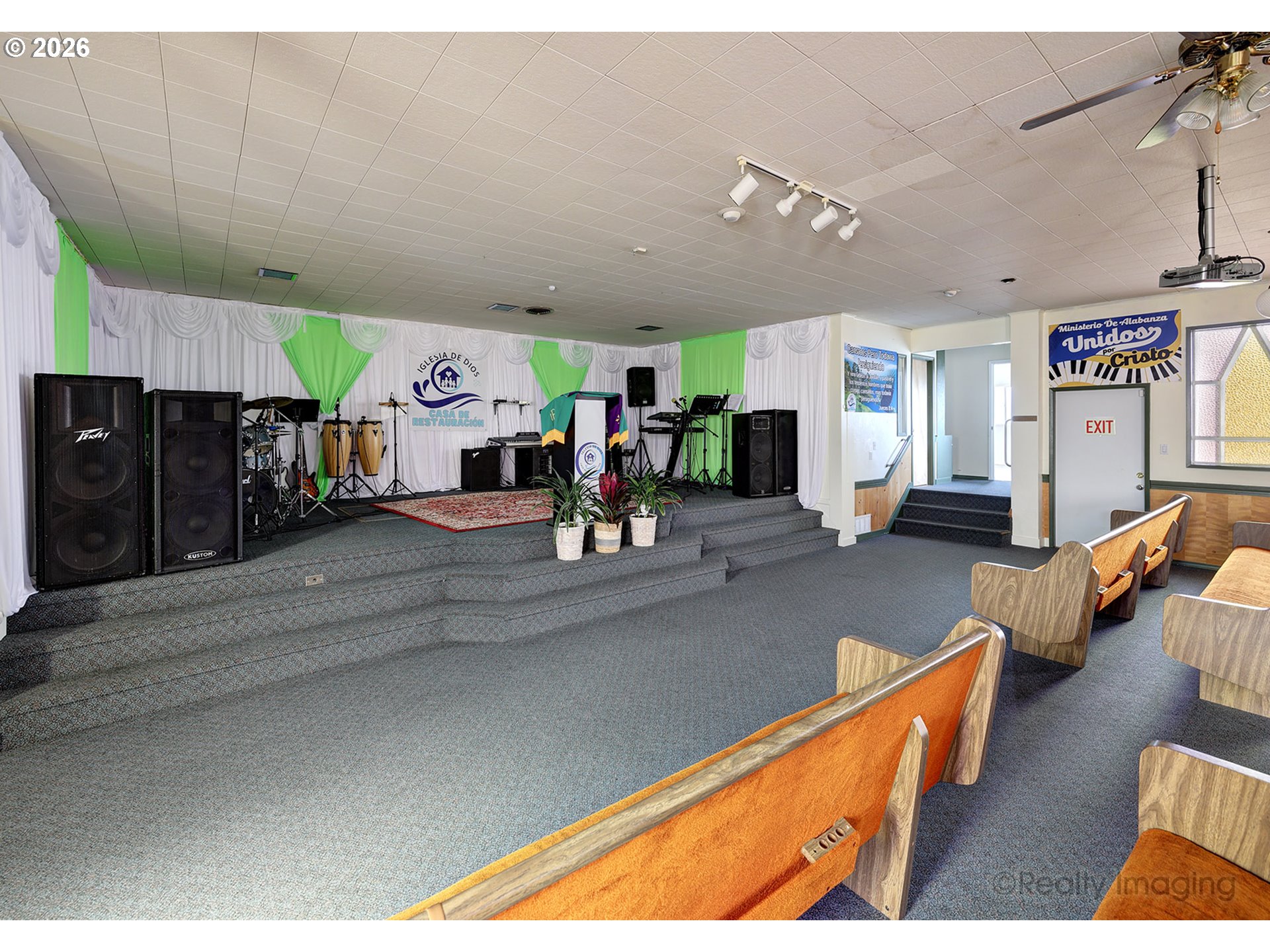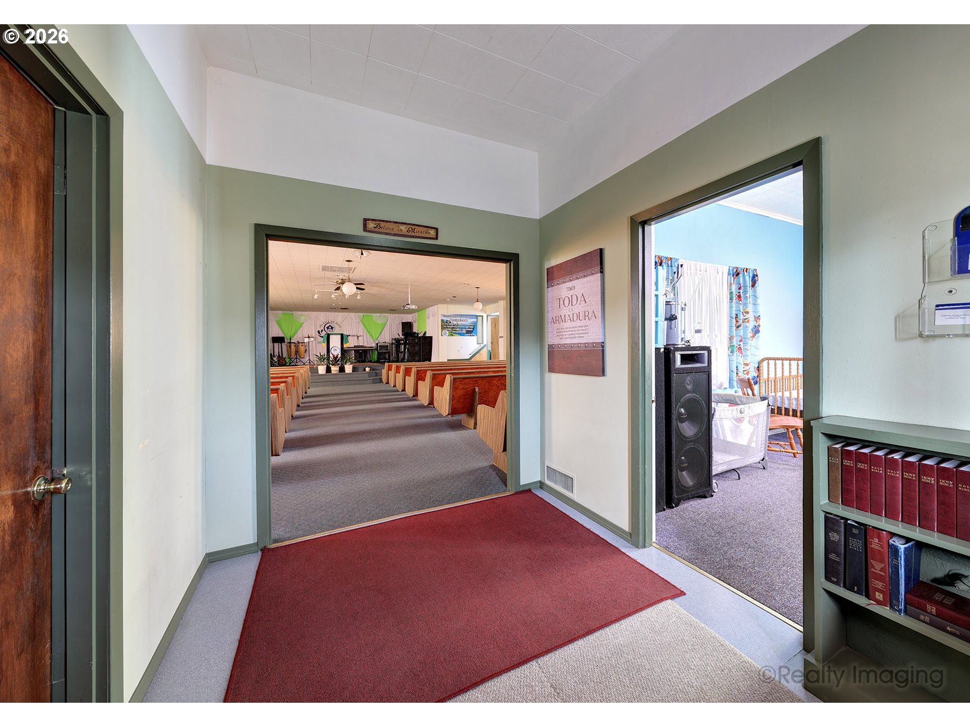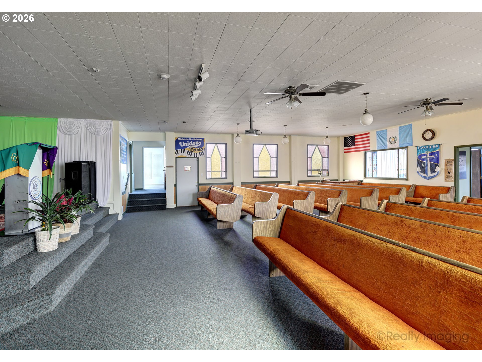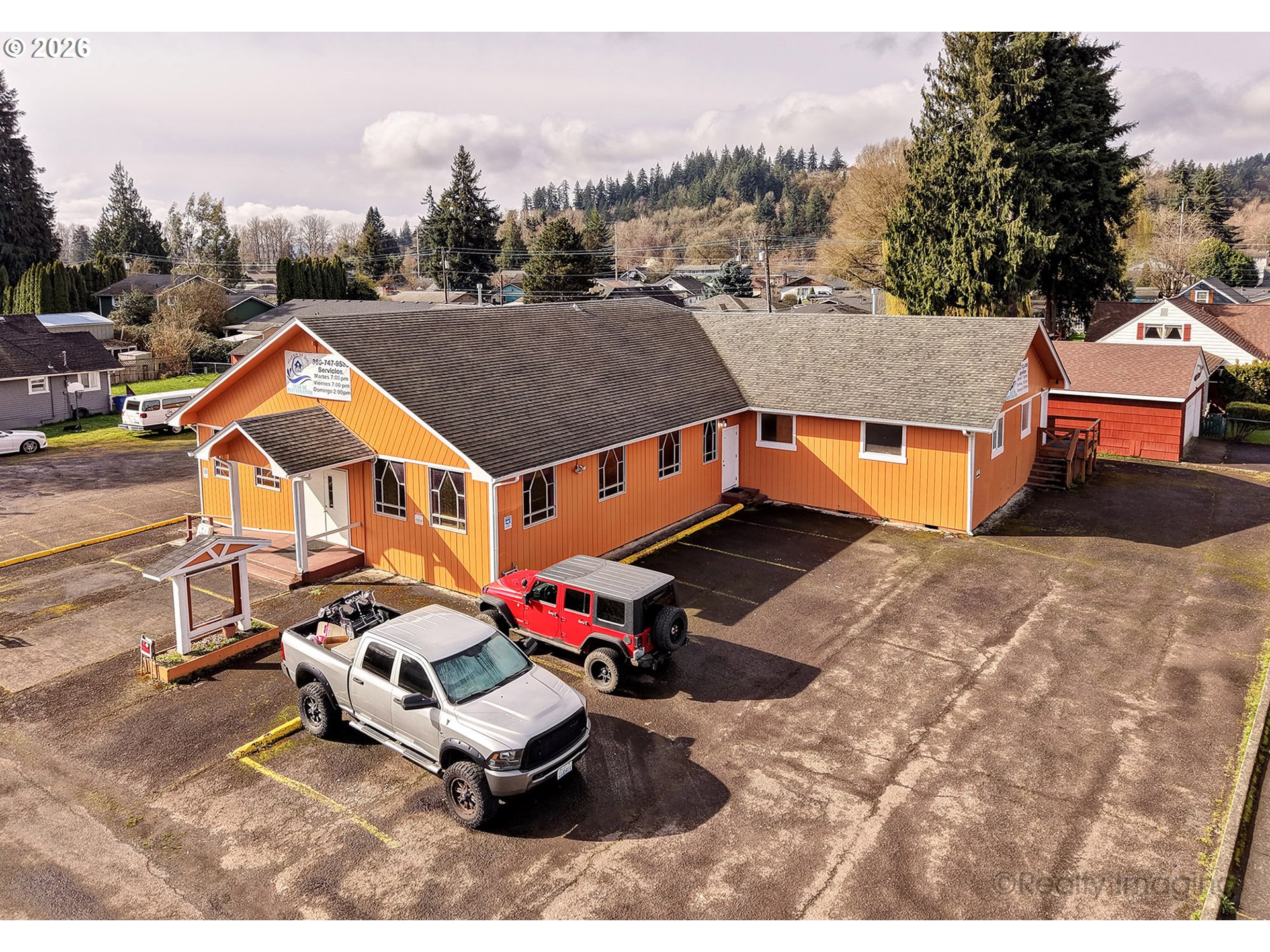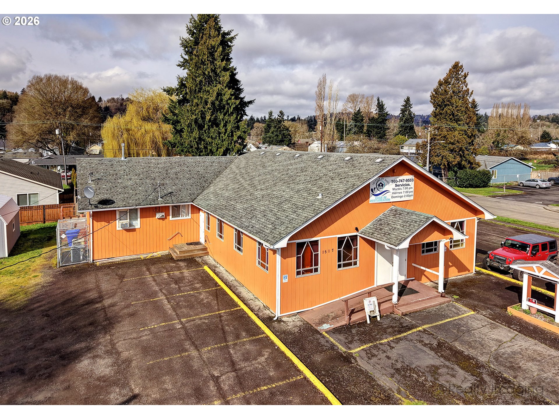 Terrific church with exceptional layout. Seating for 115+, 4 classrooms, office, kitchen, and social hall. Approximately 20 spaces in a well maintained andupdated building with heat pump for lower costs and air conditioning.