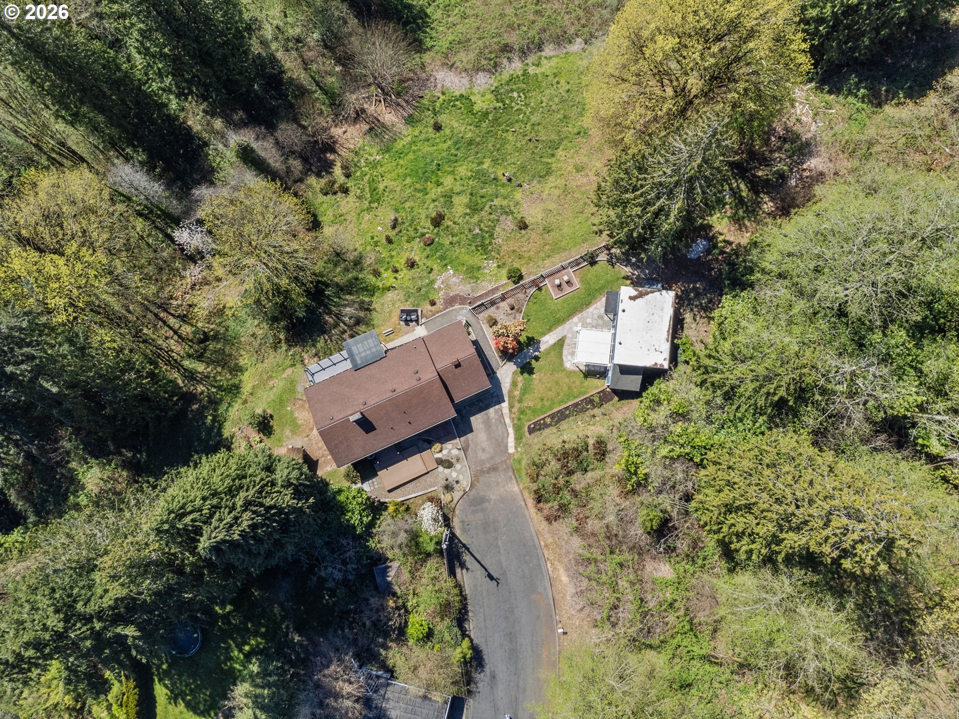 Perched on 2.8 acres with sweeping views of the Columbia River, Mt. St. Helens, and the iconic Ranier Bridge lit against the night sky, this thoughtfully updated property offers a rare blend of privacy, versatility, and Pacific Northwest beauty. The 2,370 sq ft main home (including a 270 sq ft garage conversion) has been extensively refreshed with LVP flooring throughout, updated trim, and a remodeled kitchen featuring waterfall Corian countertops, new cabinetry, appliances, windows, and French doors (approx. 5 yrs). The dining space is elevated with custom built-ins (approx. 2 yrs) and a redesigned fireplace hearth (approx. 1 yr). Bathrooms have been tastefully updated with travertine and tile (approx. 6 yrs), with additional 2026 upgrades including a new downstairs vanity, sink, faucet, lighting, fresh interior paint, and new window blinds. The flexible garage conversion with mini split (approx. 2 yrs) offers additional living space or easy reversion. Functional features include a laundry room with washer/dryer included, two storage rooms, updated sink and fixtures (2026), heat pump with cooling, and added mini split. Exterior improvements include paint (approx. 5 yrs) and a serviced roof and gutters. The property continues outdoors with a cedar deck featuring stainless cable railing, Trex front deck (approx. 5 yrs), hen house, mature trees, and expansive territorial setting. A 1,000-gallon septic system with drainfield was pumped and inspected in 2026. The detached 864 sq ft ADU has been freshly painted throughout, offering a kitchen with sink and refrigerator, electrical for stove, full bath, loft-style sleeping area, in-wall cadet heating, and washer/dryer hookups—ideal for guests, multi-generational living, or income potential. Additional features include owned Blink security cameras that can stay. A truly unique opportunity to own usable acreage with flexible living and unforgettable views just minutes to town.