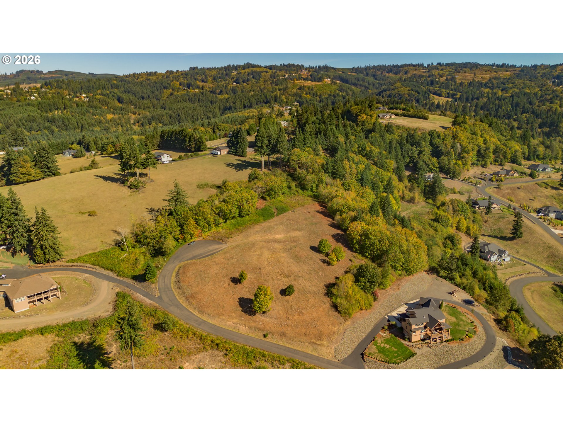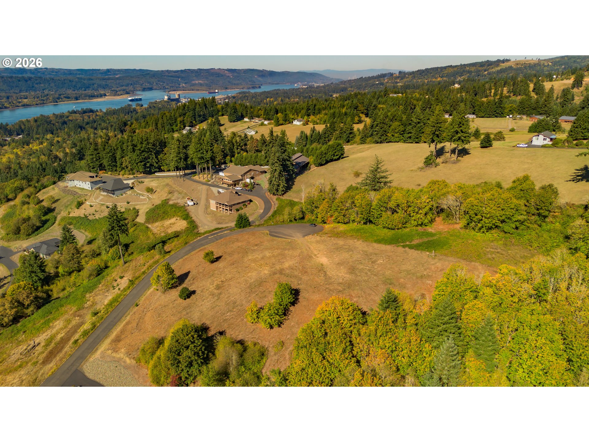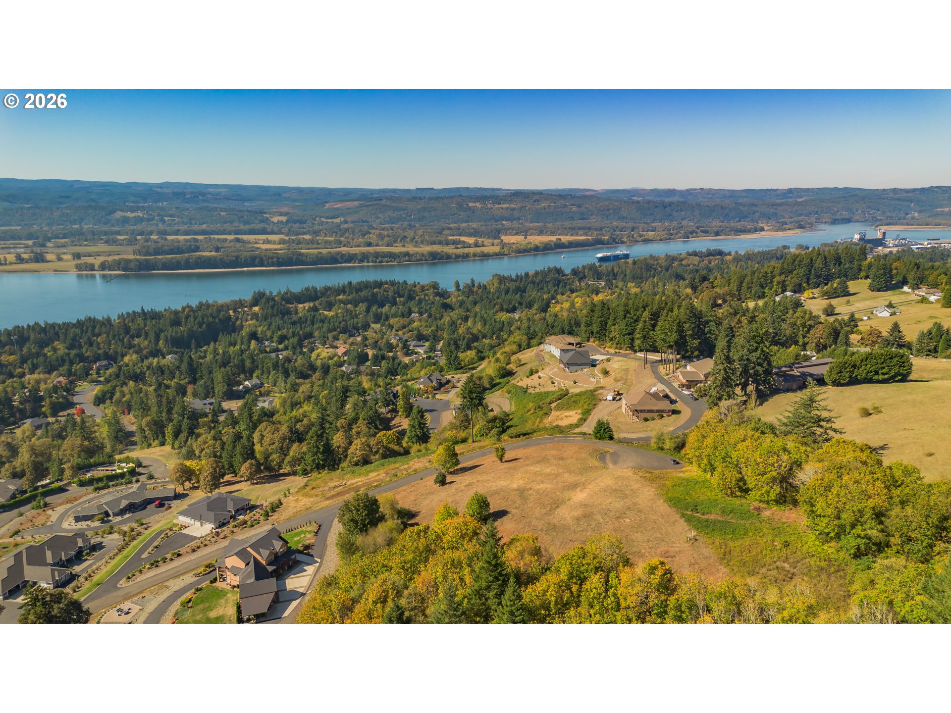 Breathtaking Full Columbia River Views with Portland City Skyline! Discover an extraordinary 3.69 acre residential estate lot in Kalama's premier gated neighborhood where luxury and nature converge. Perfectly positioned at the top of a private cul-de-sac on a paved road, this parcel offers unobstructed panoramic views of the Columbia River, Portland City Skyline and surrounding valleys that takes your breath away. The build area is flat and ready, ideal for a daylight basement custom luxury home. The remaining acreage slopes for privacy and a natural backdrop. This property is fully prepared for your dream build with public water and utilities available, county approved perc holes and septic design area, geotech report with no red flags and county planning clearance already complete. Engineer stamped custom home design plans tailored for this lot are included with purchase upon request--a huge value for the discerning buyer. This lot is surrounded by upscale custom homes with a setting promising tranquility and long term value. Located just 2.5 miles from the freeway entrance, it's a perfect balance of exclusivity and convenience. This is more than land--it's a legacy homesite with commanding views rarely available in SW Washington. Come tour today!