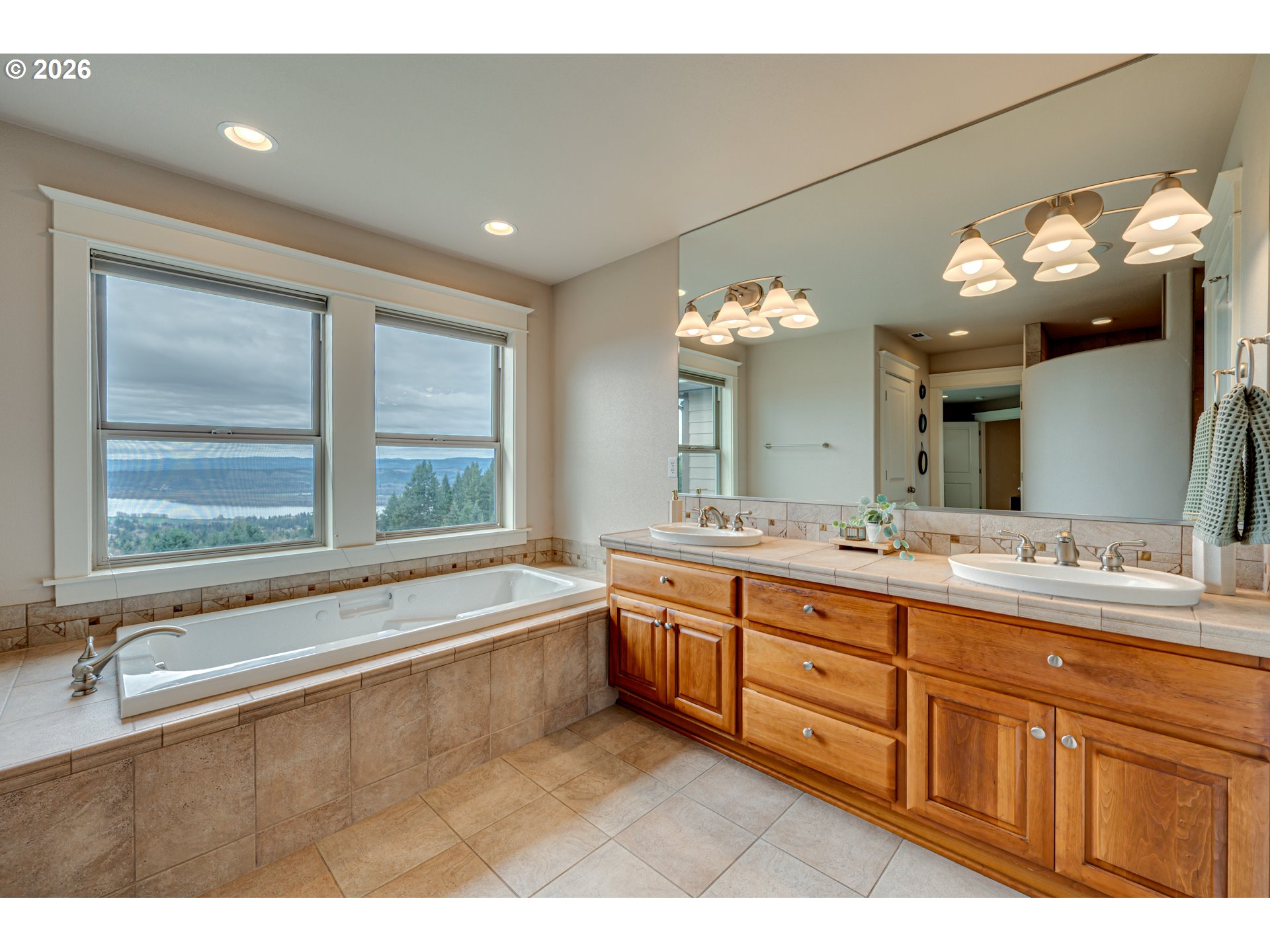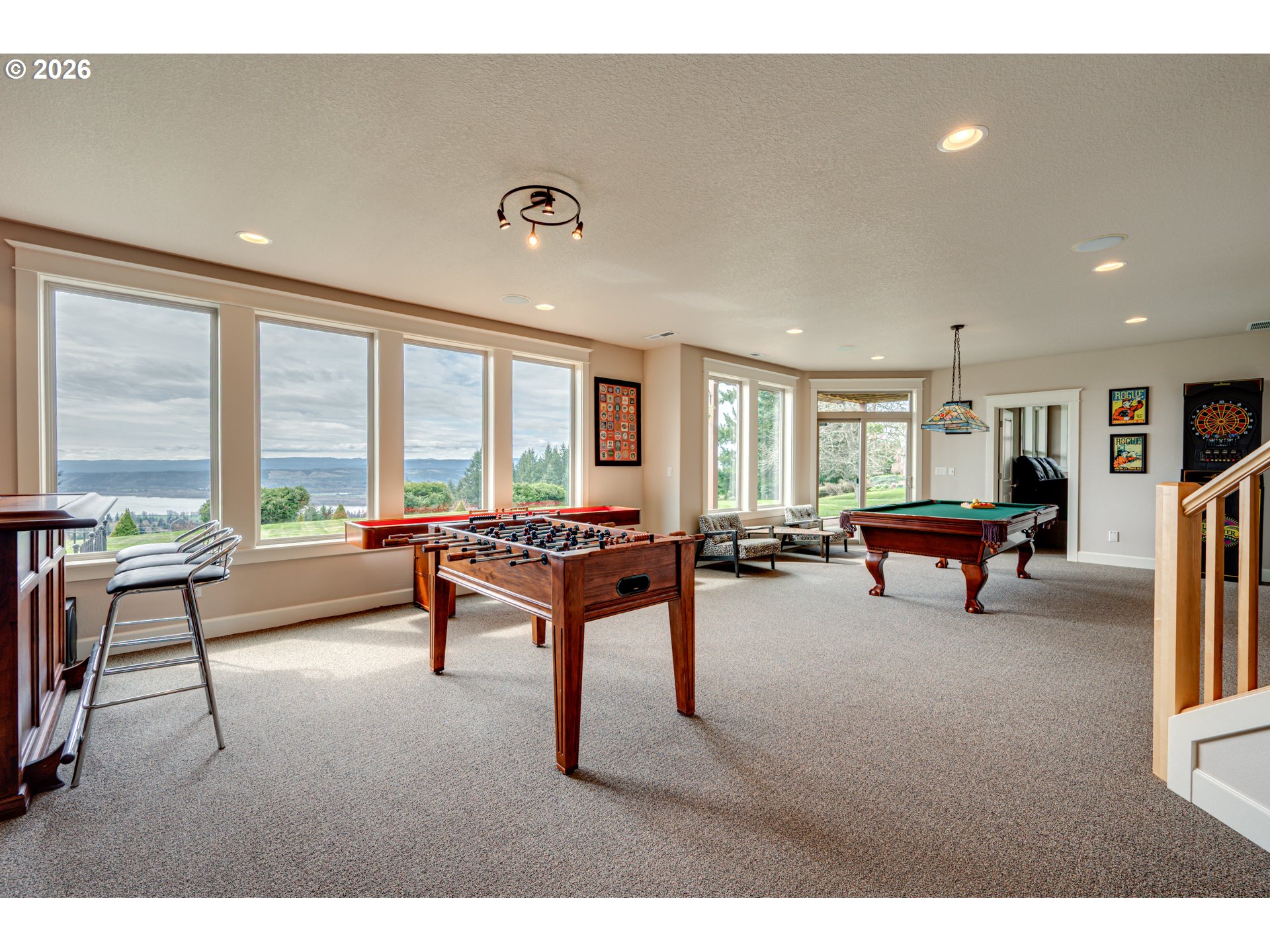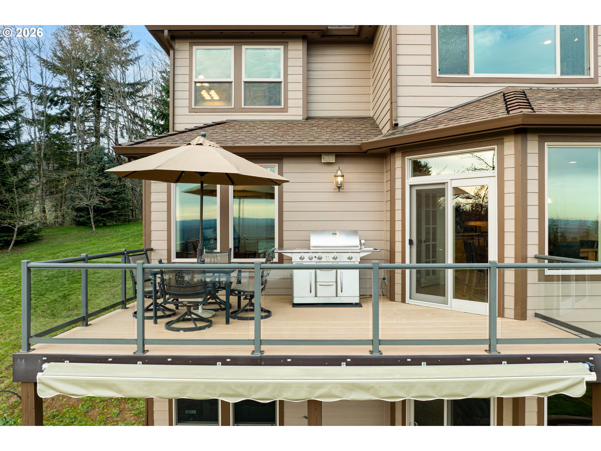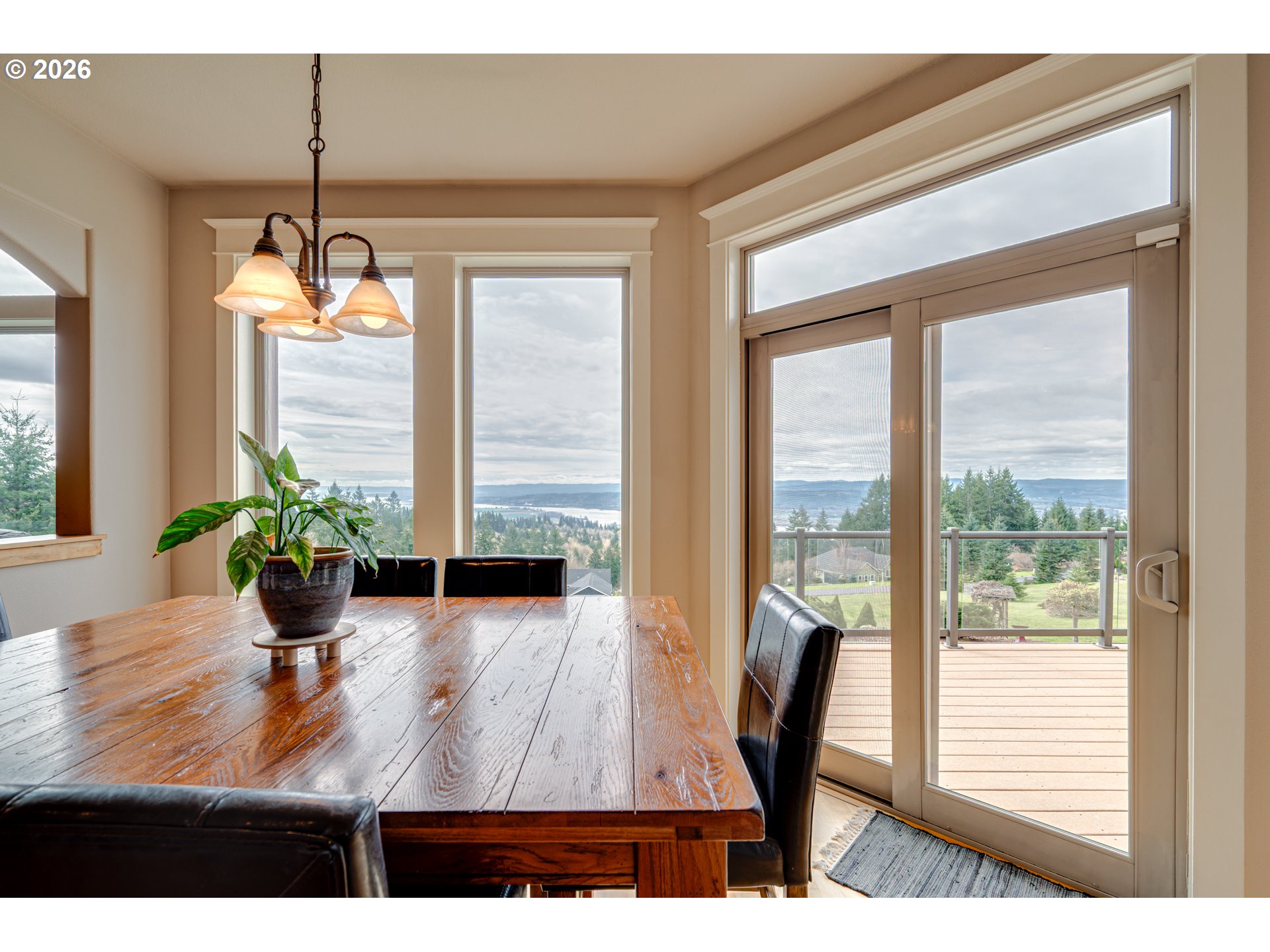 Custom home with sweeping Columbia River, city, and valley views. Nearly every window is positioned to capture natural light and the views. One owner home that has been meticulously maintained. Expansive floor plan offering over 4,580 square feet with 5 bedrooms, an office, flex space, bonus room, and theater room. Gourmet kitchen features granite countertops, cherry cabinetry, gas appliances, walk-in pantry, and it is open to the main living areas. Walkout basement extends to a concrete patio and is plumbed for a future hot tub. Tri level HVAC zoning provides efficient and comfortable climate control throughout. Thoughtfully designed property with paved driveway, 3 car attached garage, RV parking, and generous additional parking. Electrical panel in place for future shop. Serene setting enhanced by a handcrafted koi pond. Located just 40 minutes to PDX and under 10 minutes to I-5.