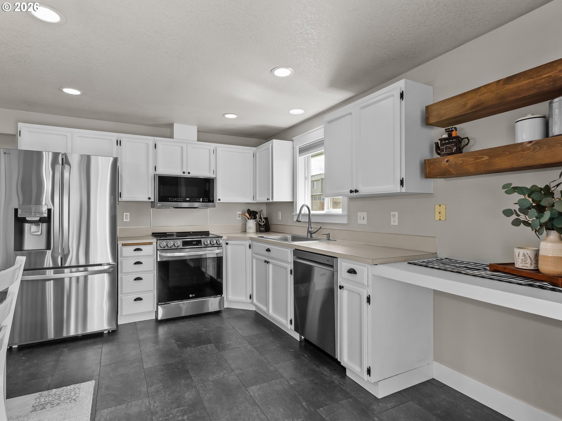 Dishwasher, FreeStandingRange, Microwave, Pantry, StainlessSteelAppliance