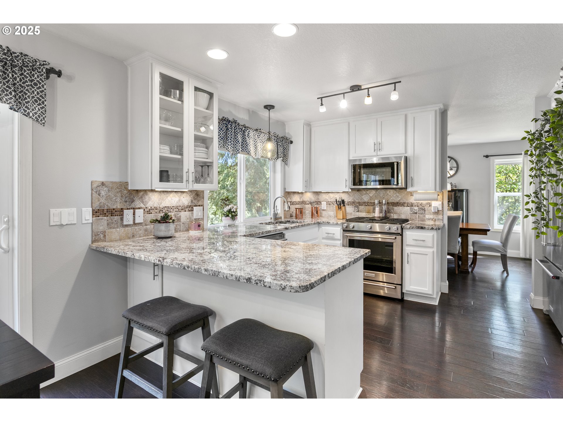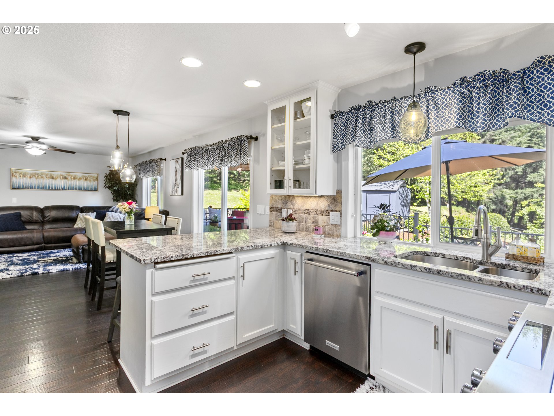 Welcome to your picture-perfect Kalama retreat! Nestled on a private, tree-lined 2 acres, this beautifully landscaped home offers the ultimate in peace and seclusion. Tons of parking, including RV space, welcomes you alongside a charming covered front porch. Inside, pride of ownership shines with modern finishes like laminate flooring, granite counters, barn doors, and woodsy views from every window. Upstairs features three spacious bedrooms with walk-in closets, plus an oversized primary suite with a spacious en suite bath. Step outside to an expansive, top-of-the-line deck where you can take in stunning territorial views, mature fruit trees, and soaring evergreens, a perfect spot to host summer gatherings! Plus, there’s room to add a shop, cleared and ready to go!
